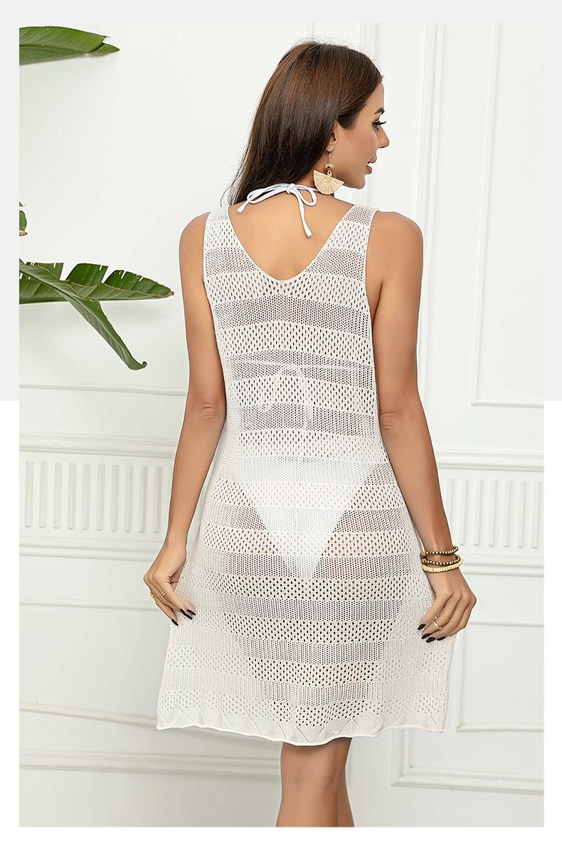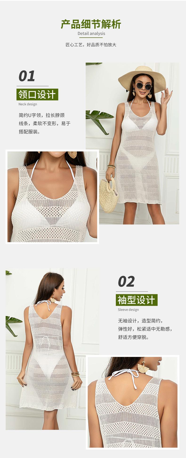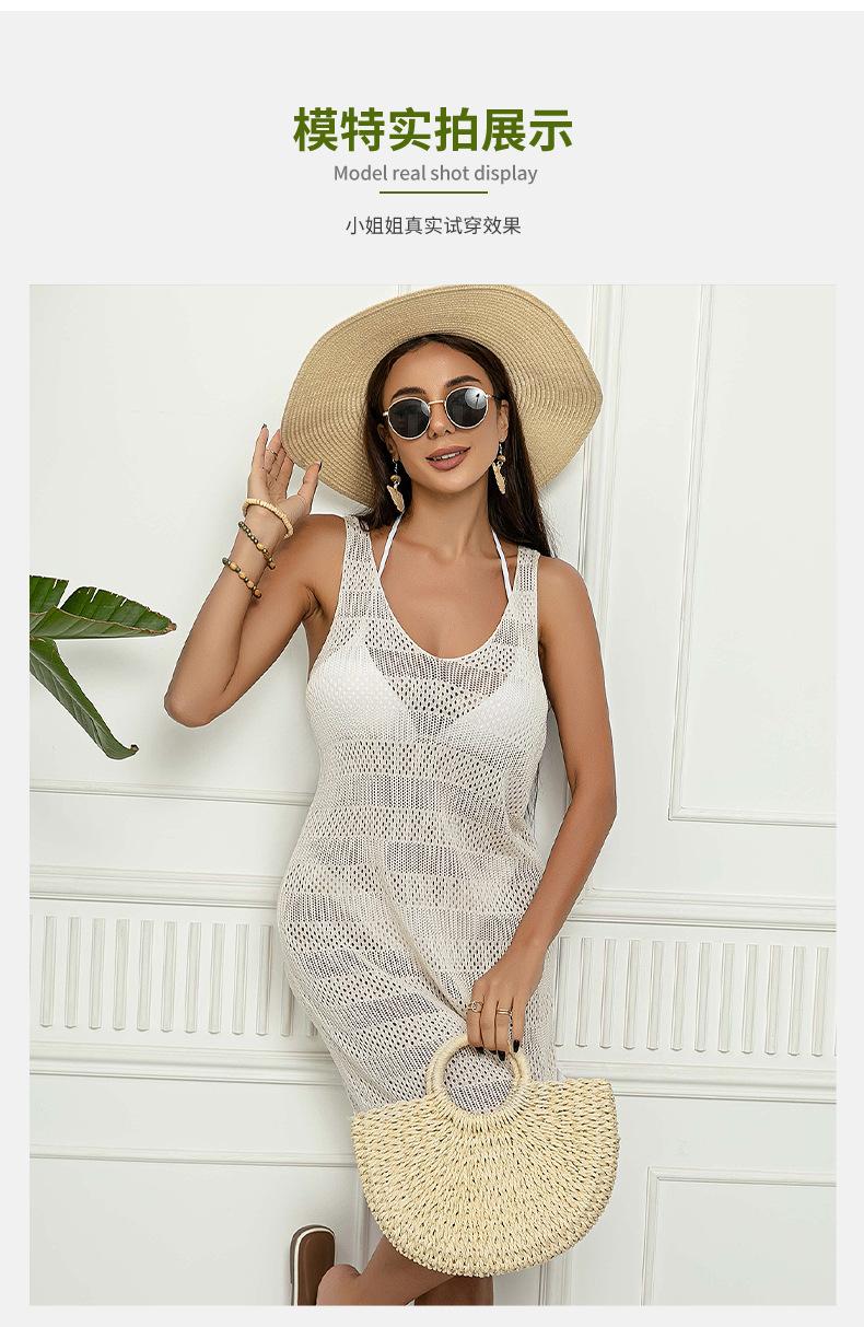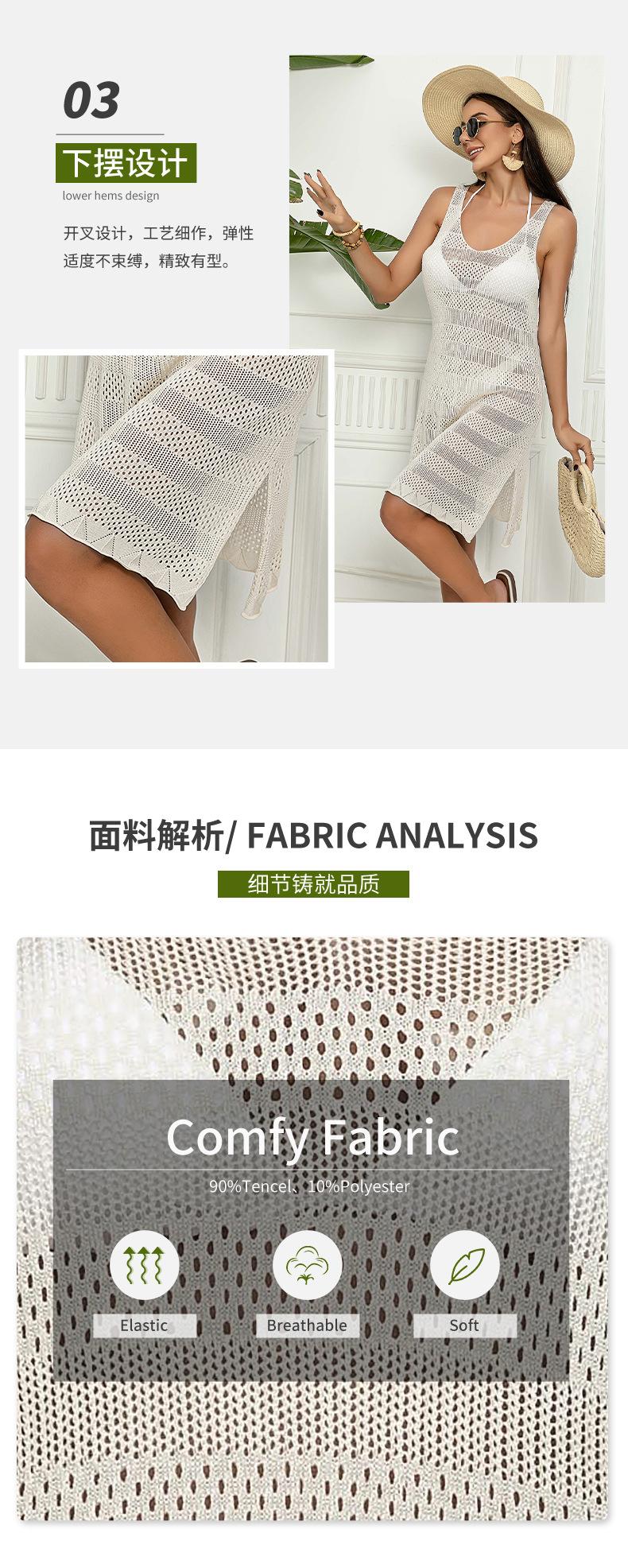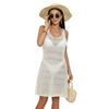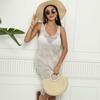 Tencel transfronterizo Europeo y Americano Calado Sexy Tejido Sin Mangas Vestido iptile para Mujer Verano Largo Playa Bikini Sobrecamisa
