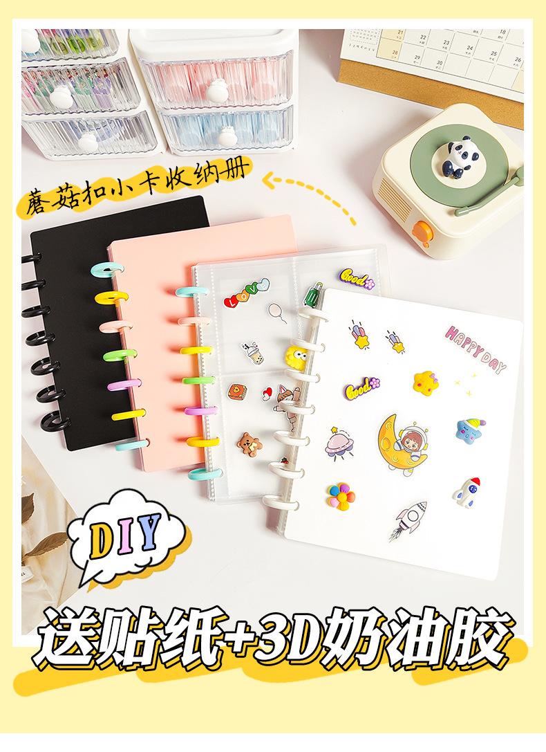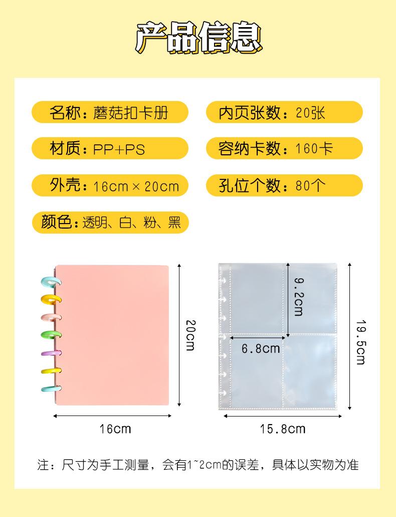 Álbum de tarjetas con hebilla de hongo, pequeño libro de almacenamiento de tarjetas, álbum de tarjetas de estrellas de hojas sueltas transparente Four-Palace, álbum Paradiol de 3 pulgadas