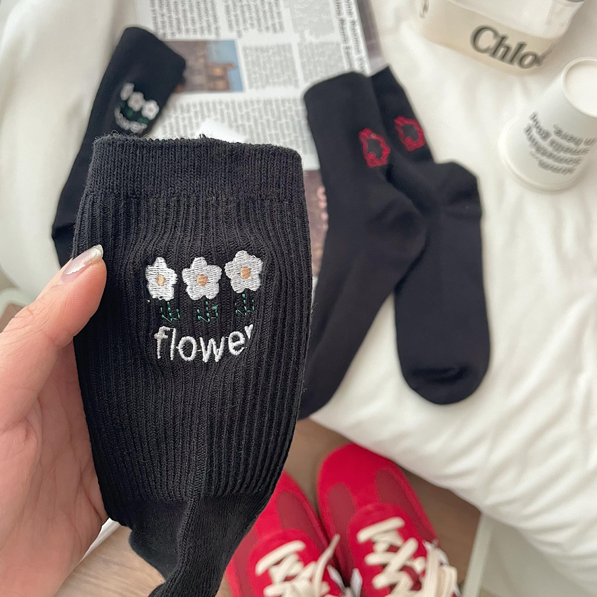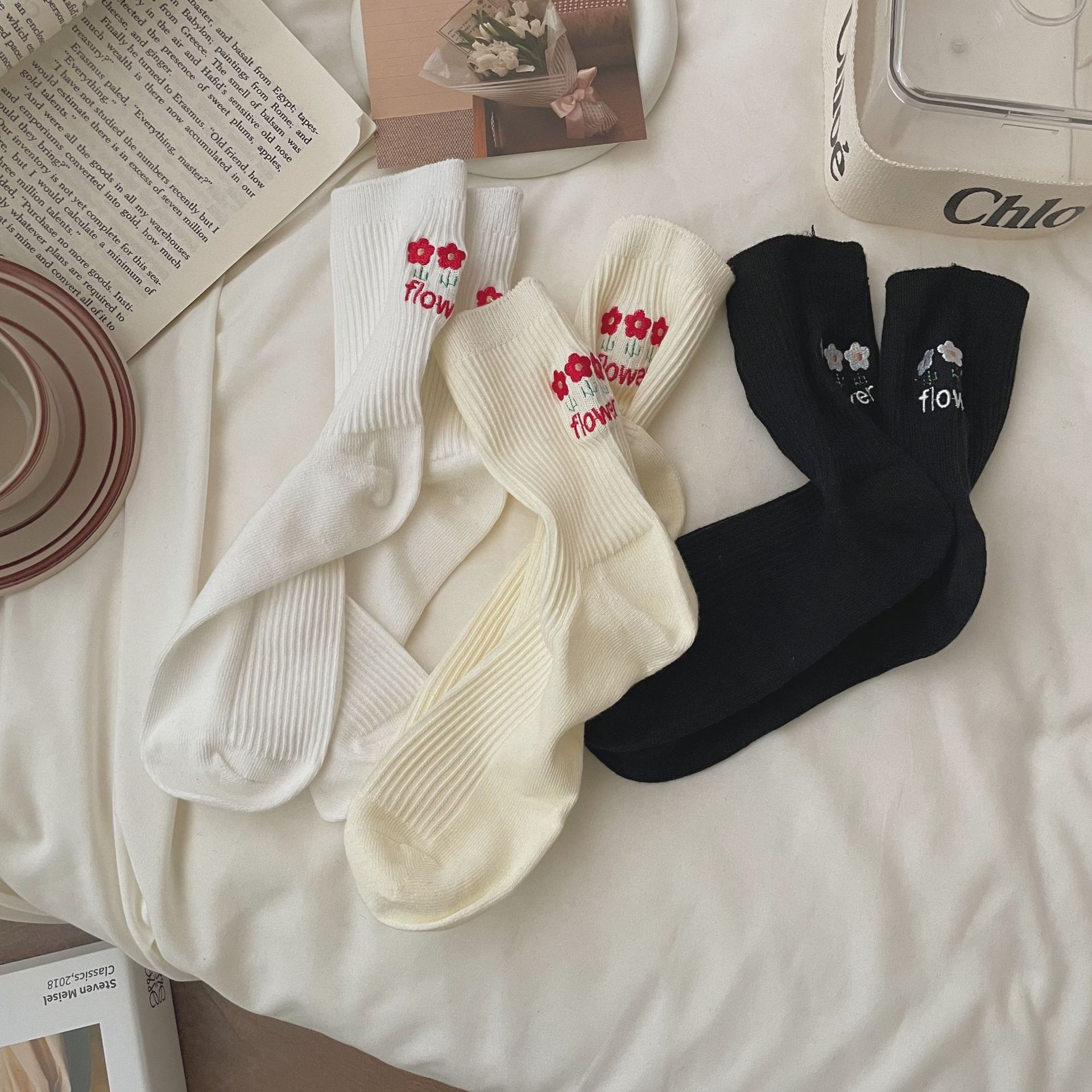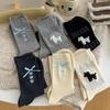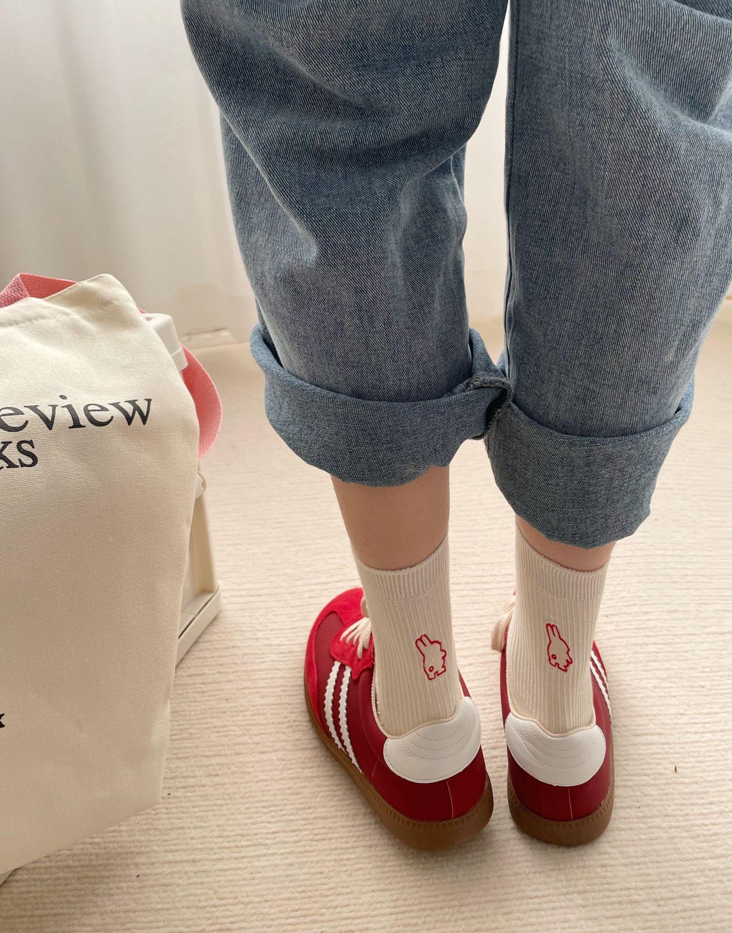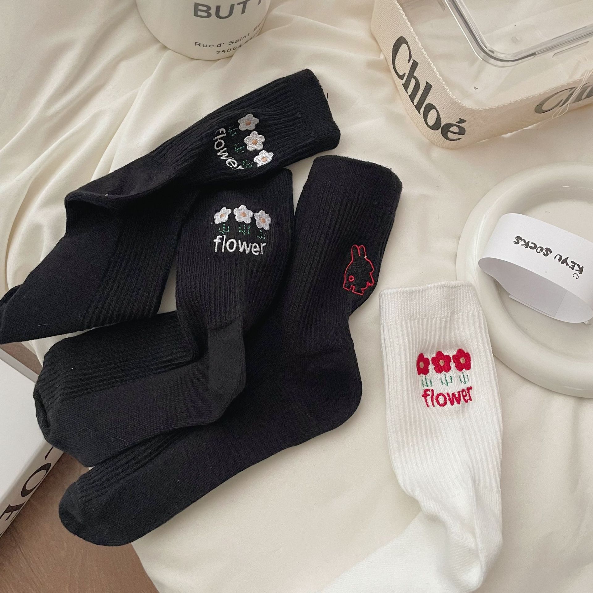 Calcetines con bordado de conejo en el talón para mujer, calcetines de algodón de moda para primavera y otoño, calcetines deportivos japoneses de verano para exteriores, calcetines de tubo medio.
