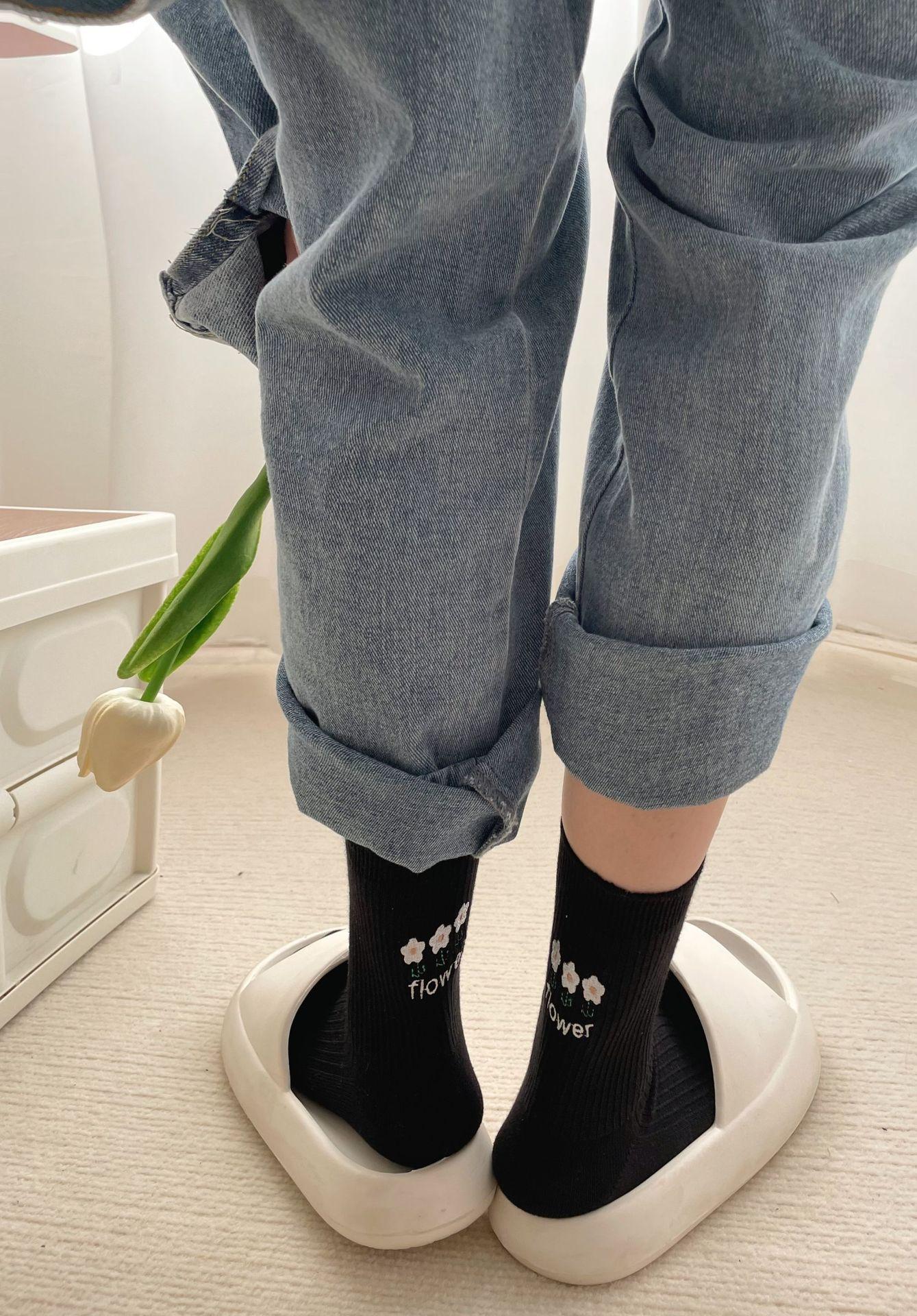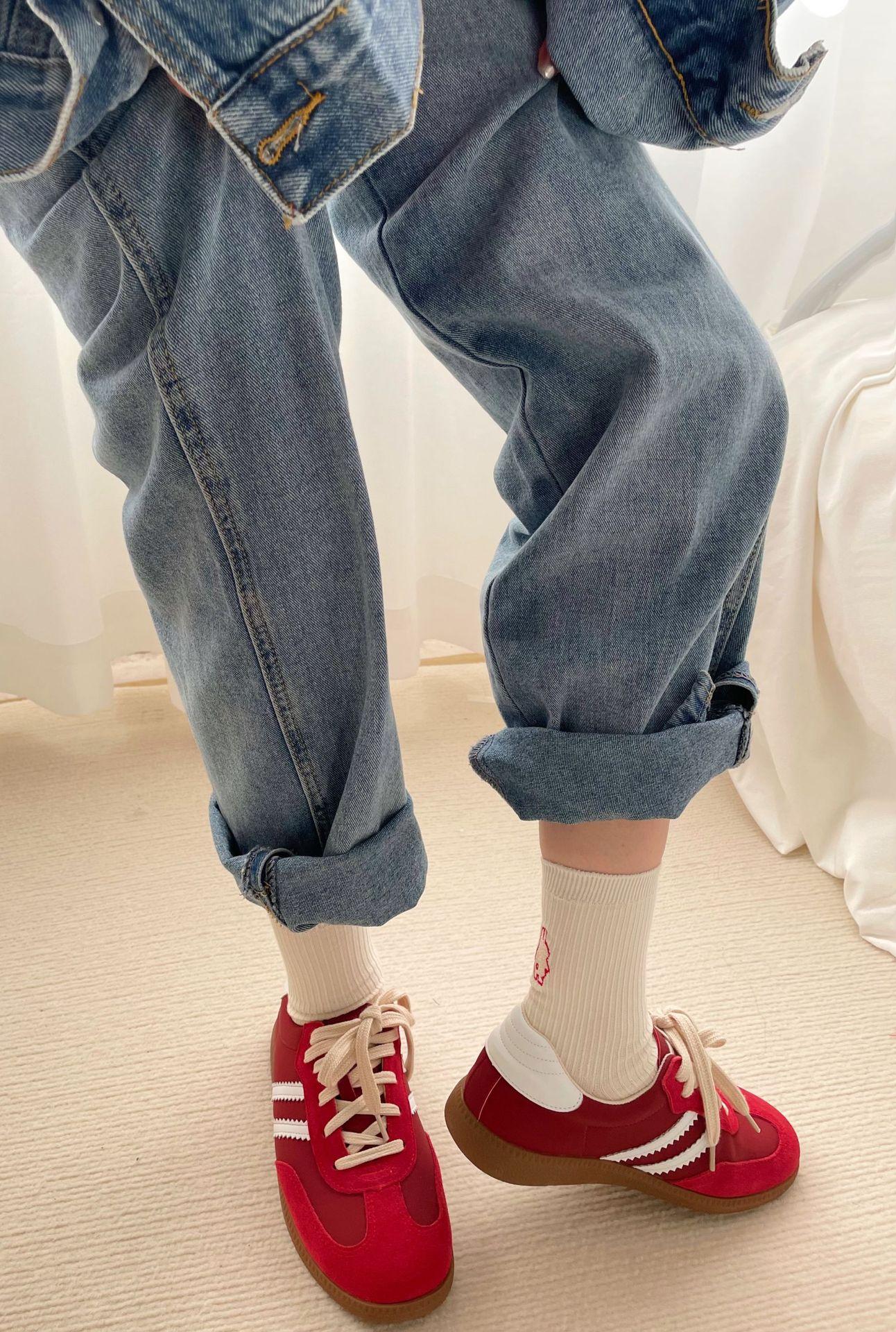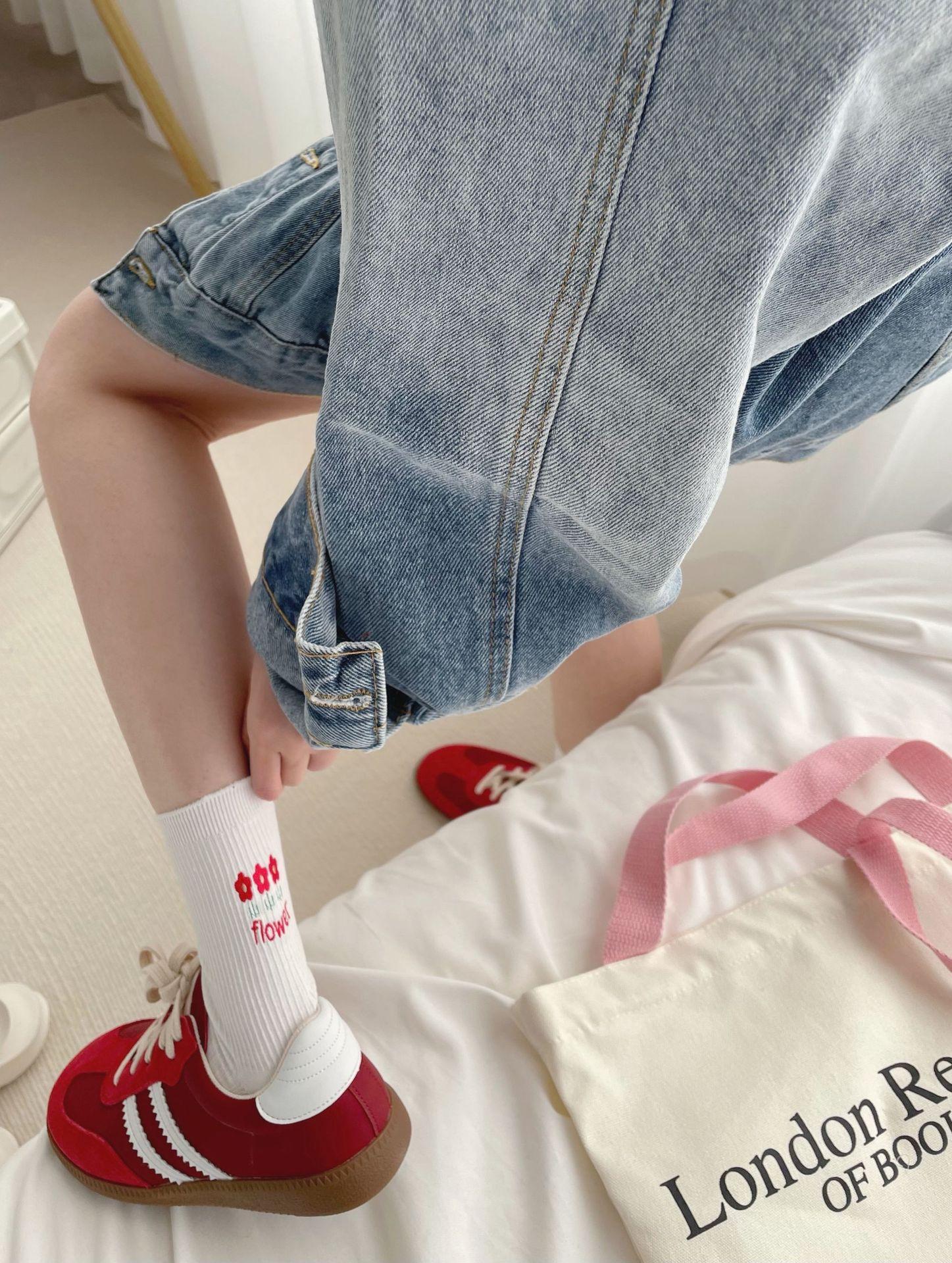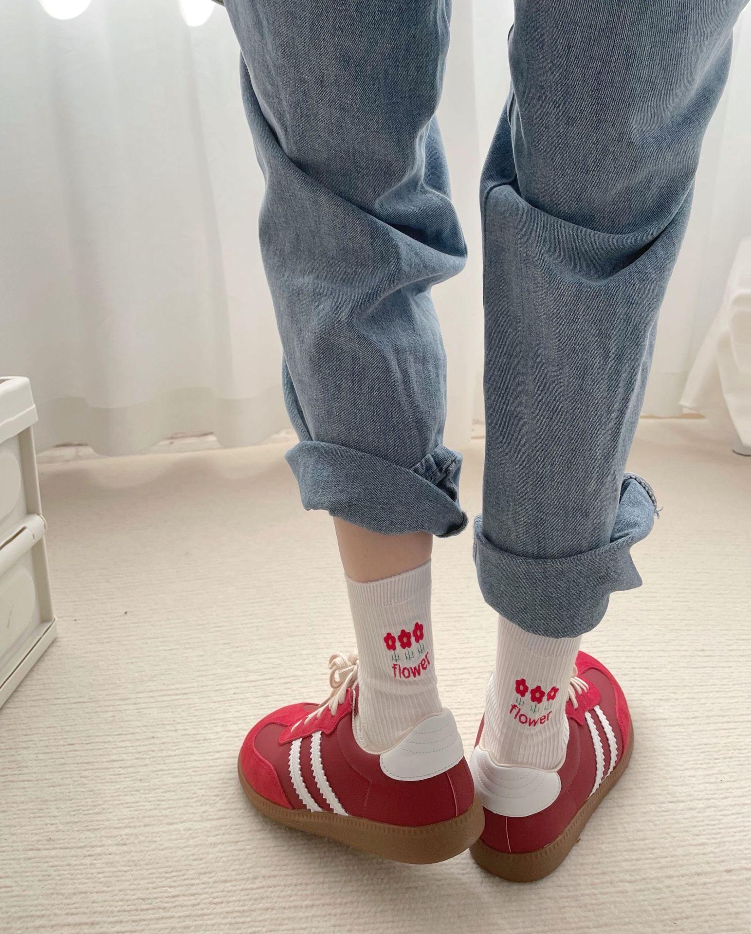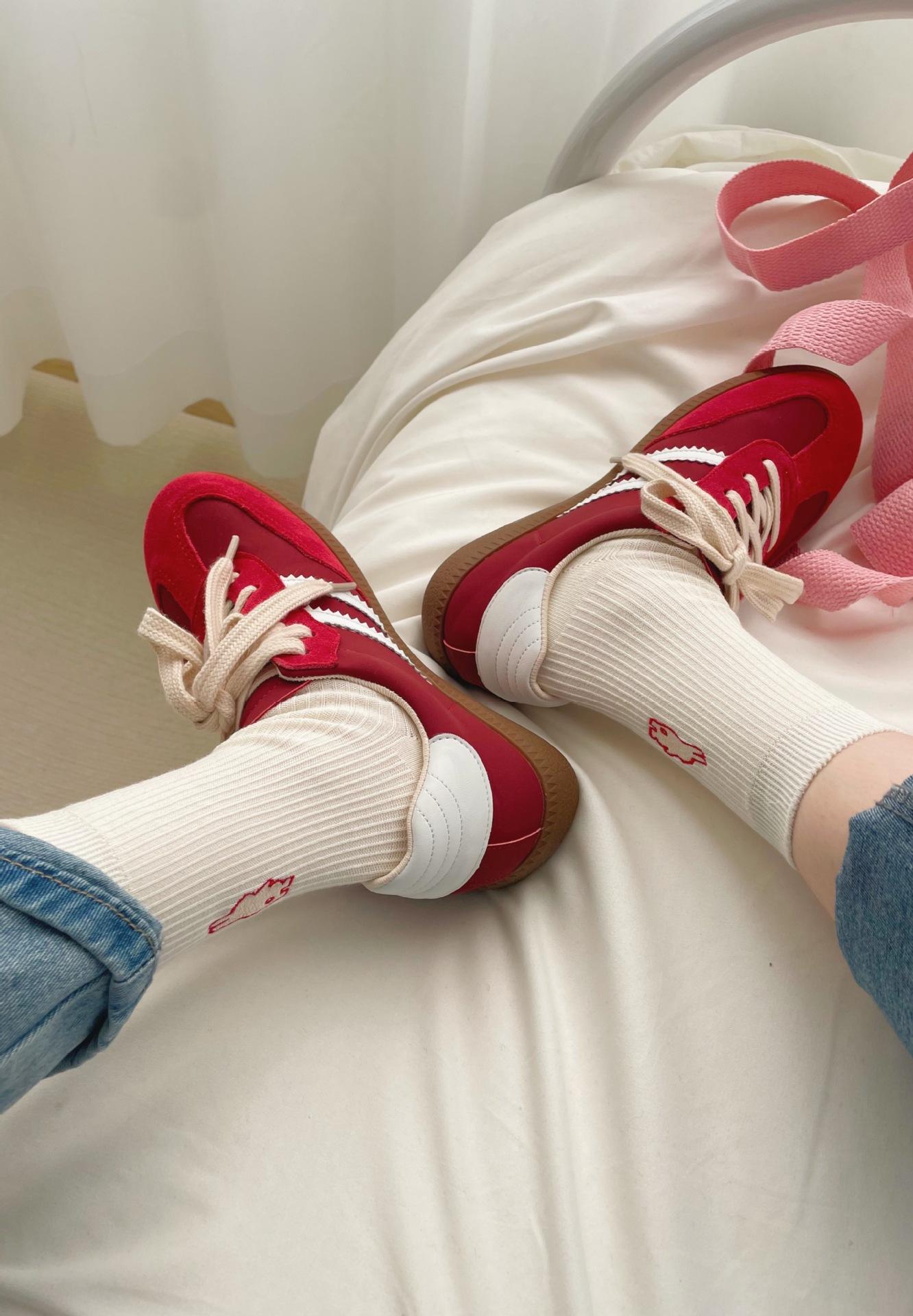 Calcetines con bordado de conejo en el talón para mujer, calcetines de algodón de moda para primavera y otoño, calcetines deportivos japoneses de verano para exteriores, calcetines de tubo medio.