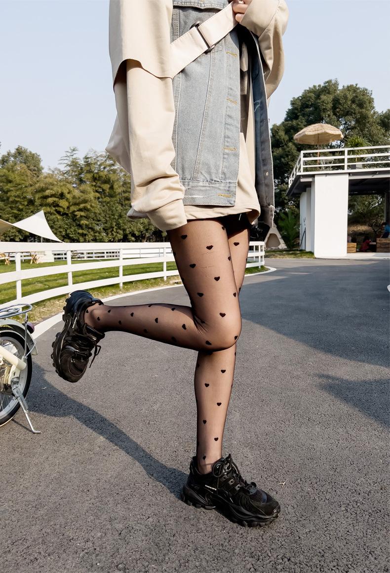 Medias Jacquard de Corazón Estilo Japonés para Mujer Jk Medias Negras Medias Transparentes Finas de Verano Leggings Adelgazantes de Moda