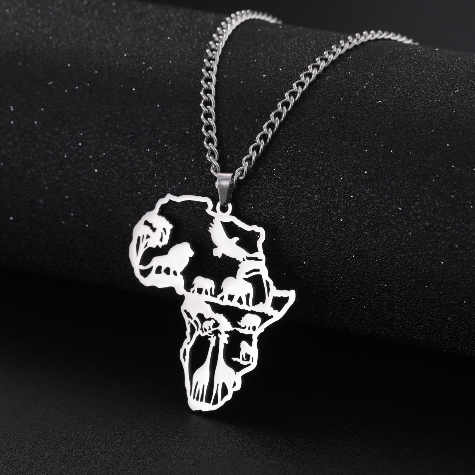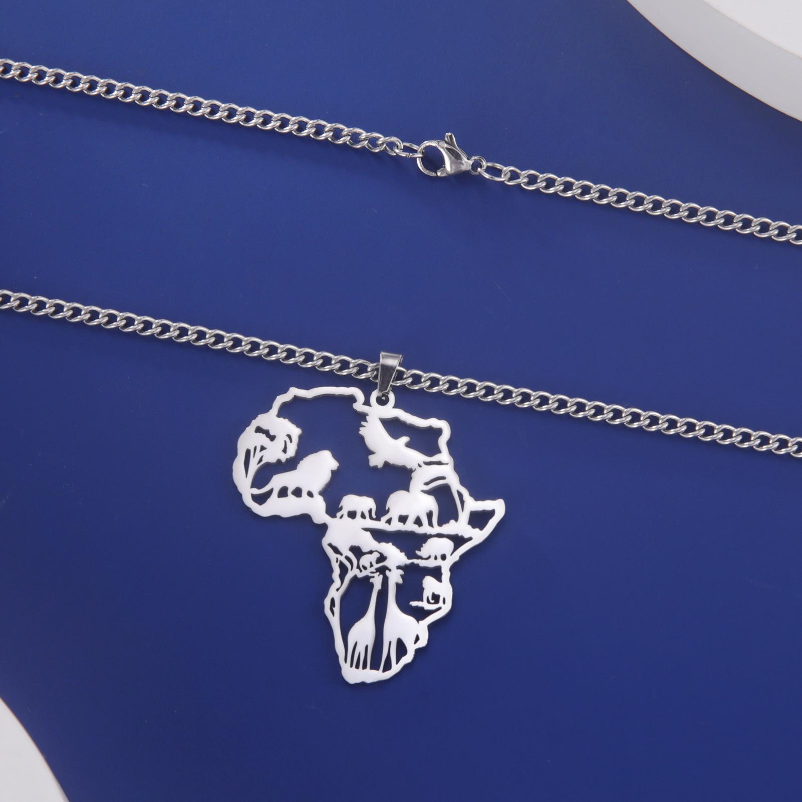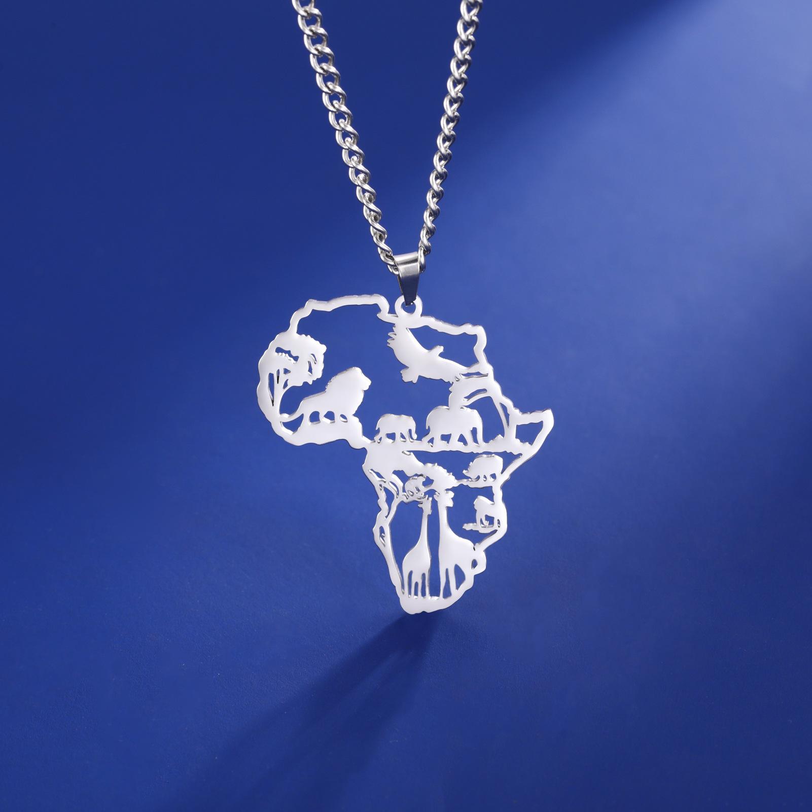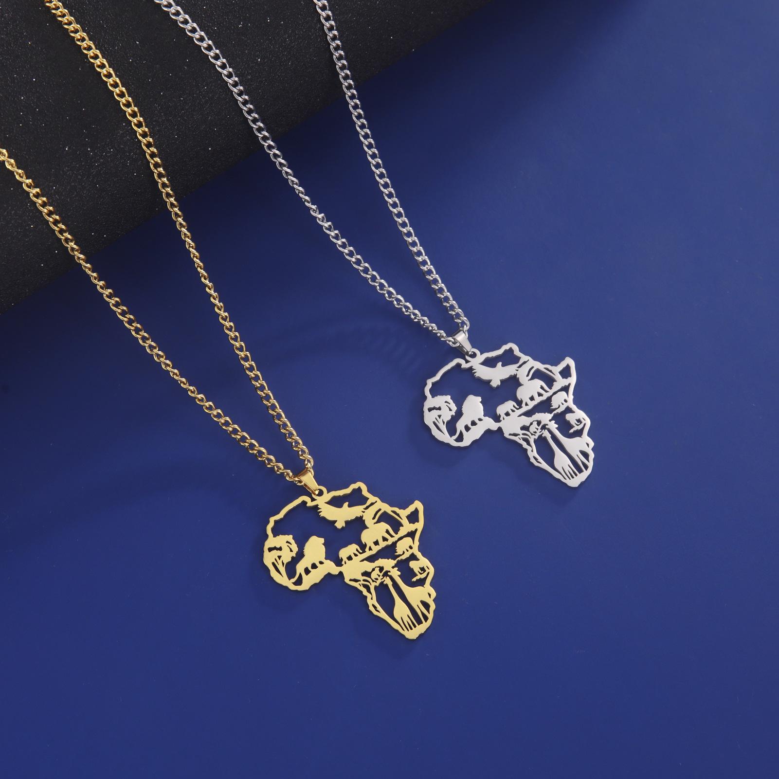 Venta caliente collar mapa de África joyería vintage hip hop animal jirafa león elefante colgante mapa cadena suéter