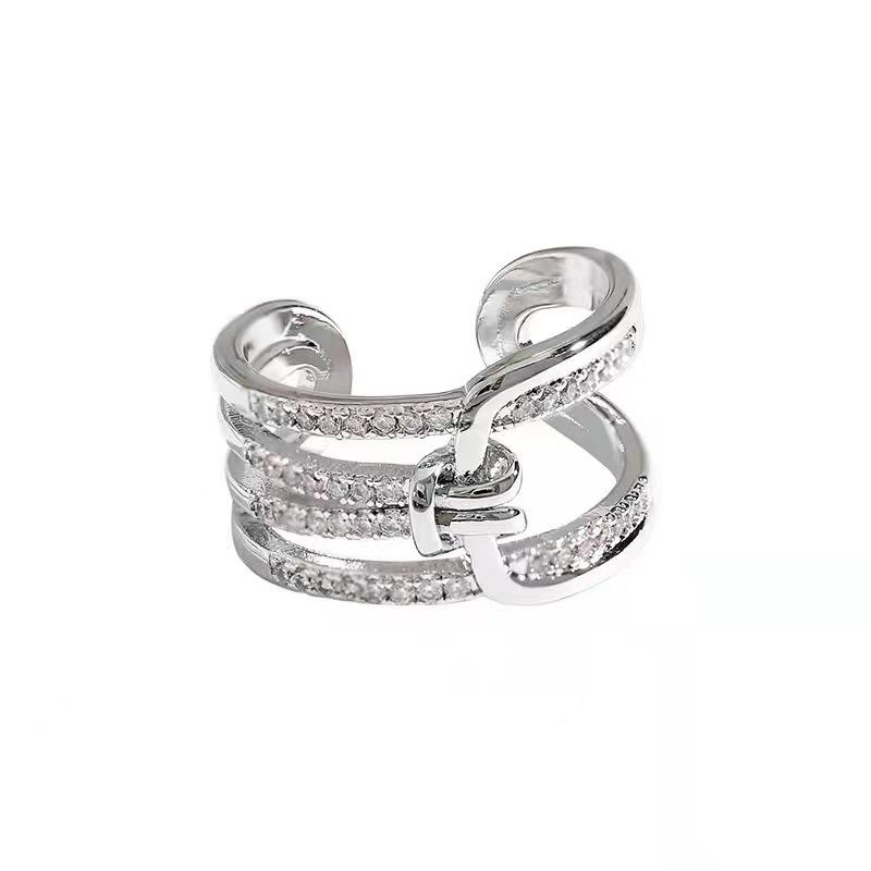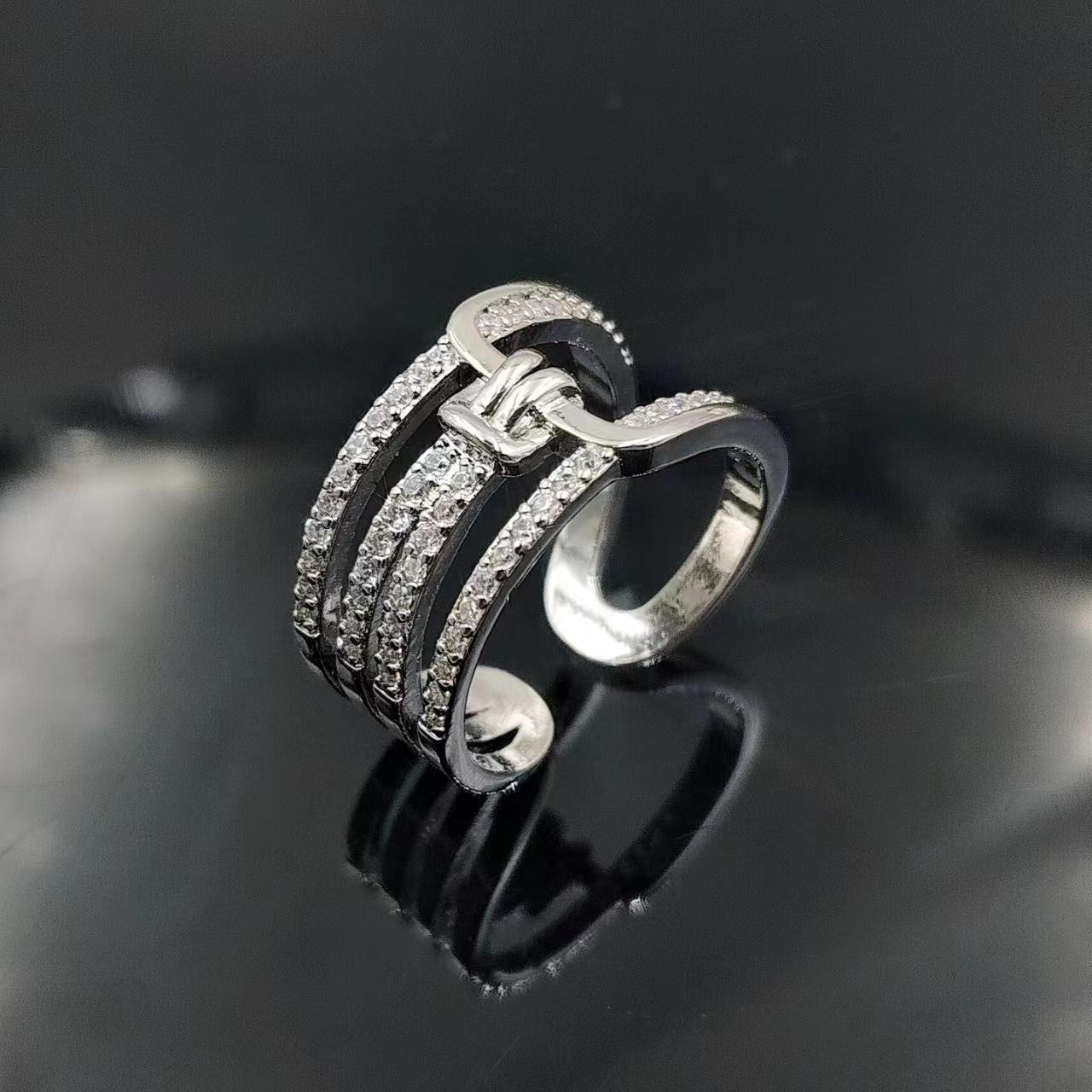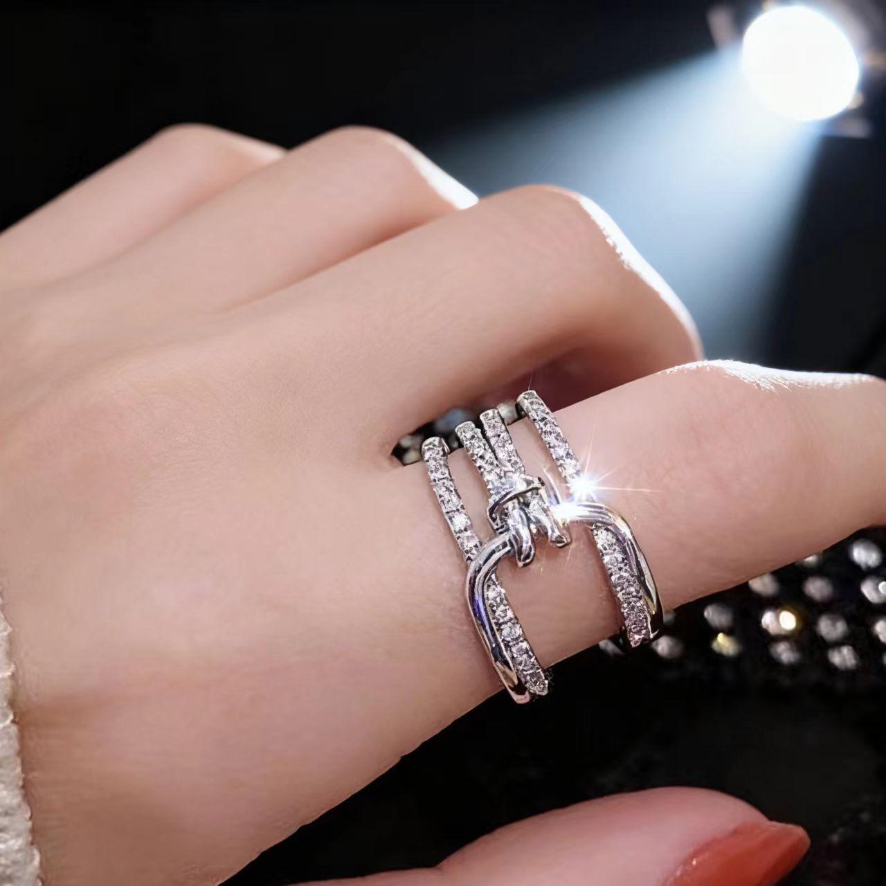 Anillo de circonita con incrustaciones de diamantes de moda y tendencia para mujer, anillo de índice abierto versátil de alta calidad, joyería retro de lujo ligera