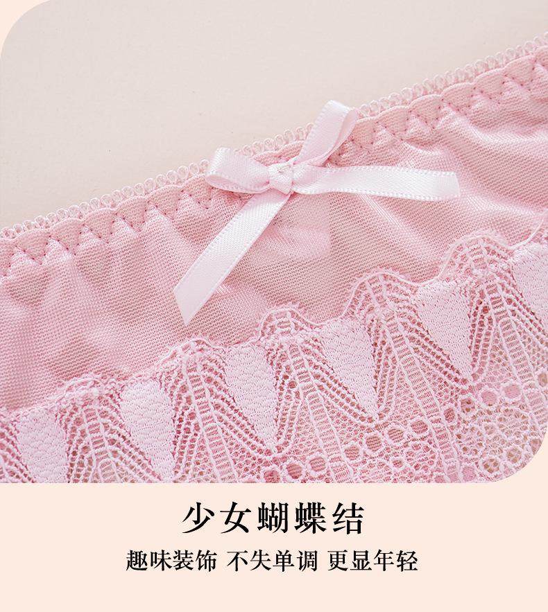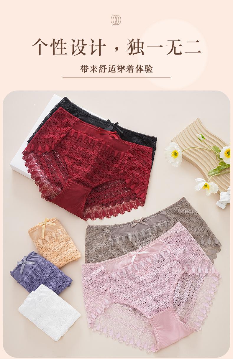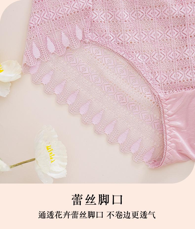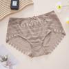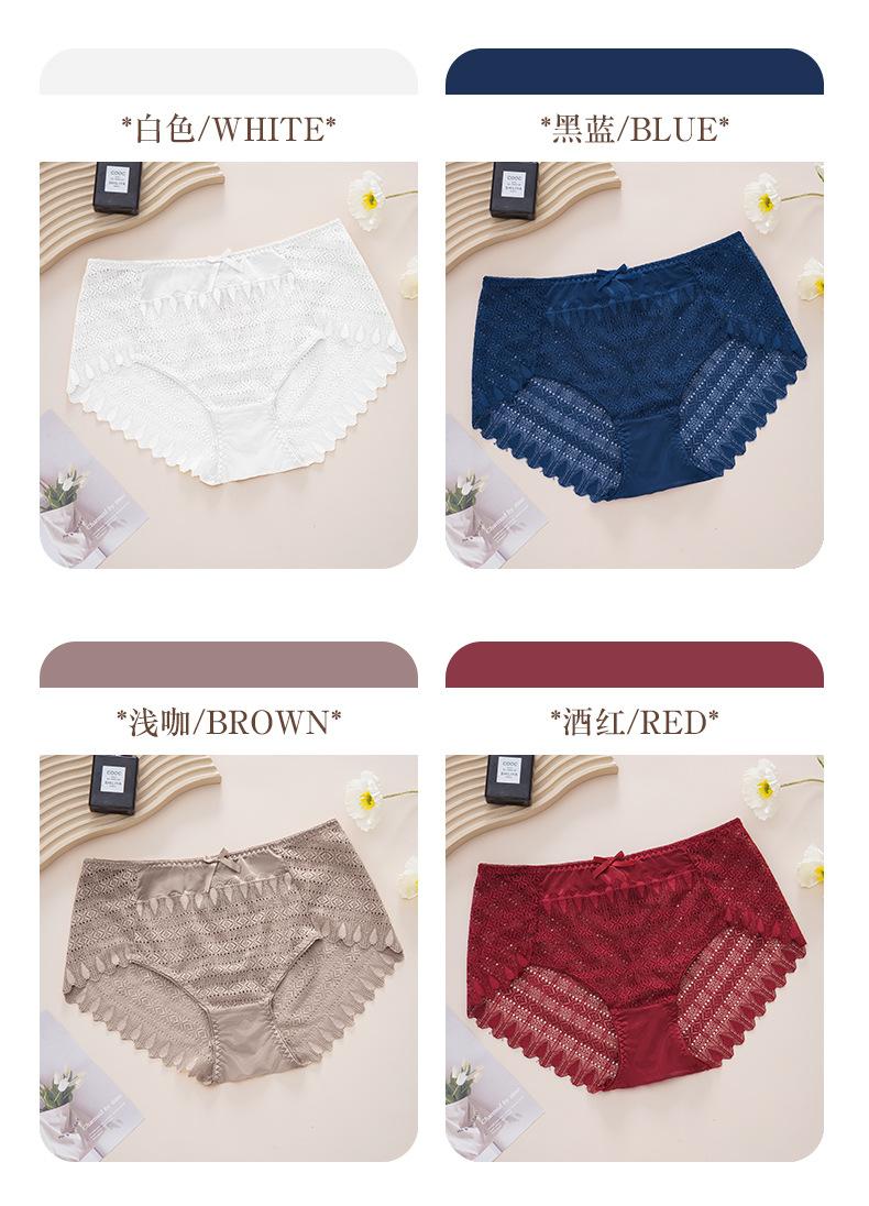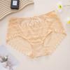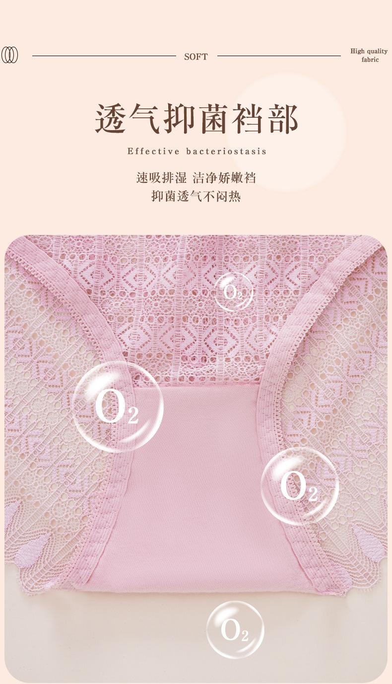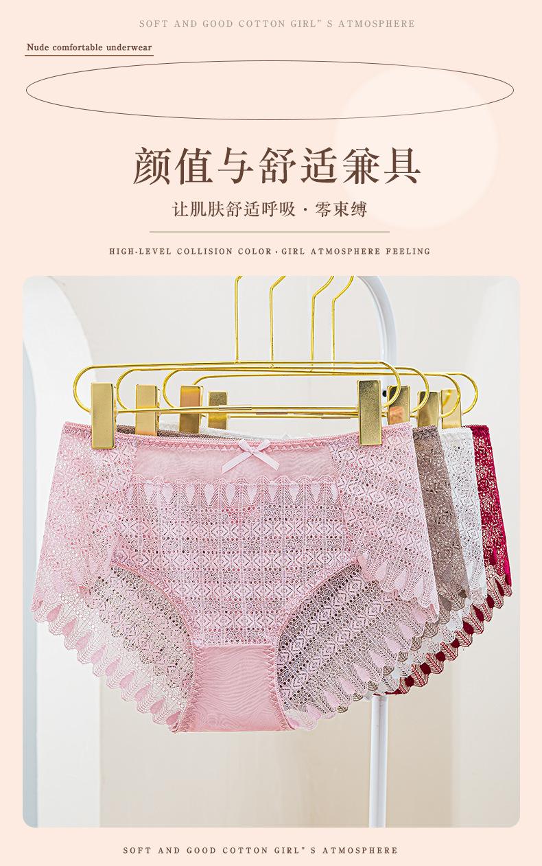 Braguitas de encaje sexys de cintura media para mujer, color liso, ahuecadas, color nude claro, transpirables, sin costuras, de algodón puro, con entrepierna antibacteriana.