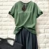 Conjunto de dos piezas de estilo japonés de lunares de dos colores para verano 2024, de color puro, simple, holgado, talla grande, con empalme plisado y bajo amplio de manga corta