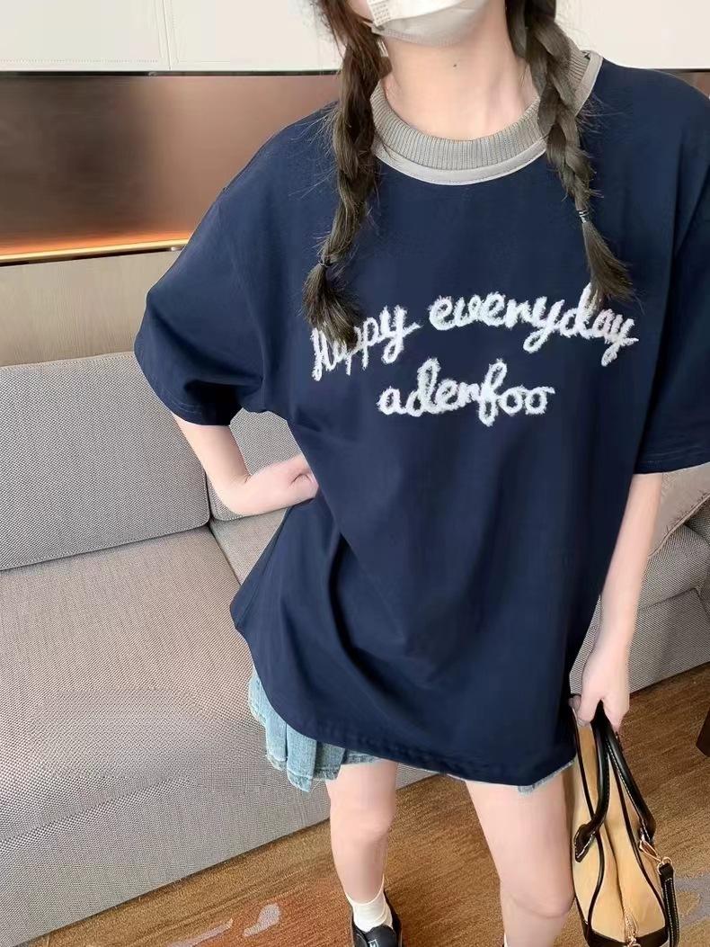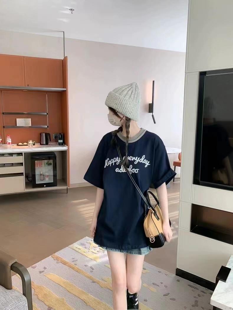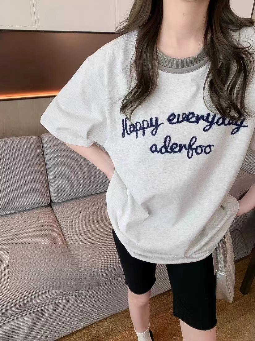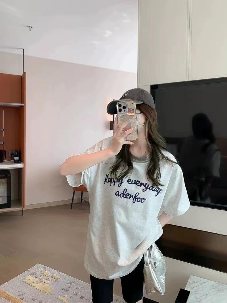 Jimo Spot Ader - Camiseta bordada estéreo con letras nuevas de primavera y verano, marca de moda, holgada e informal, para hombre y mujer.