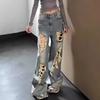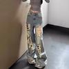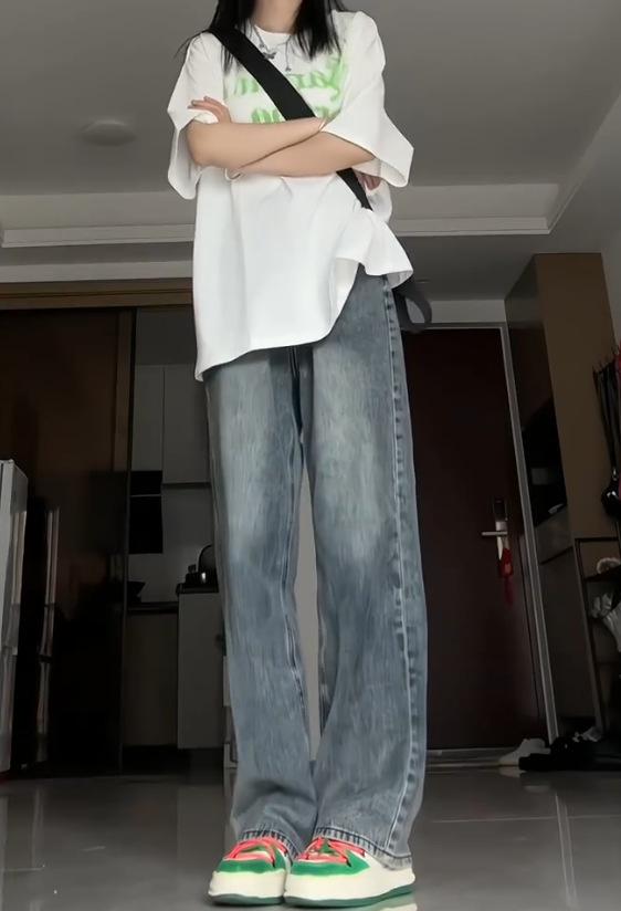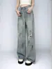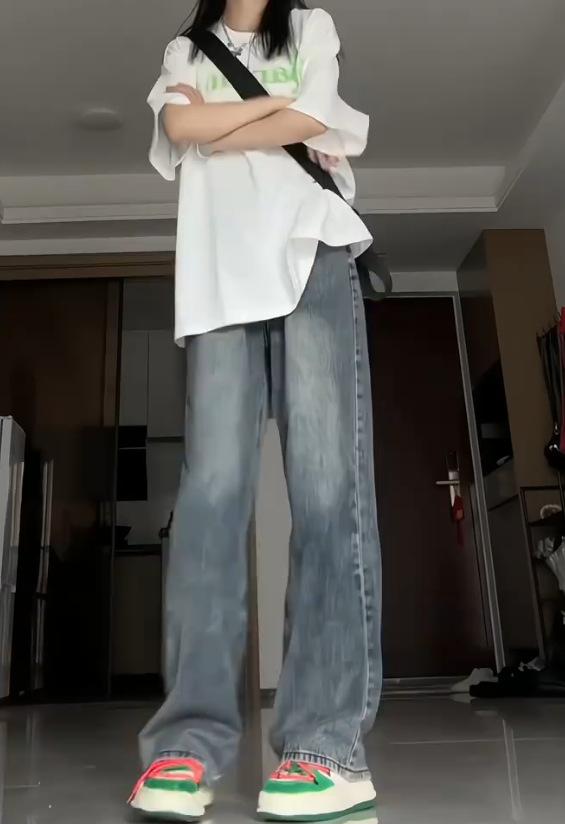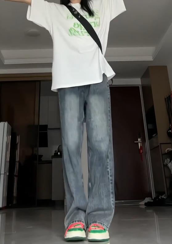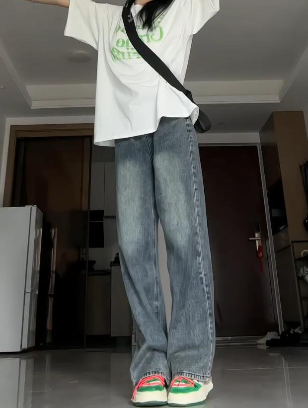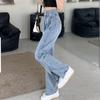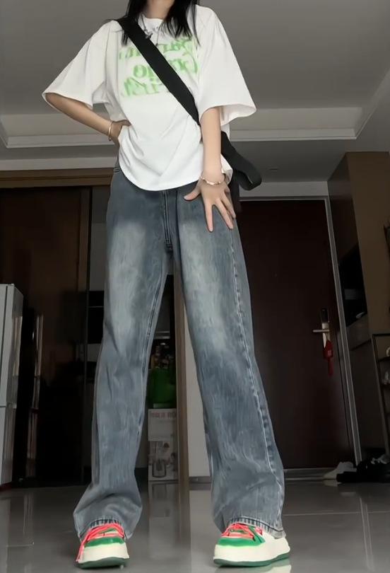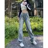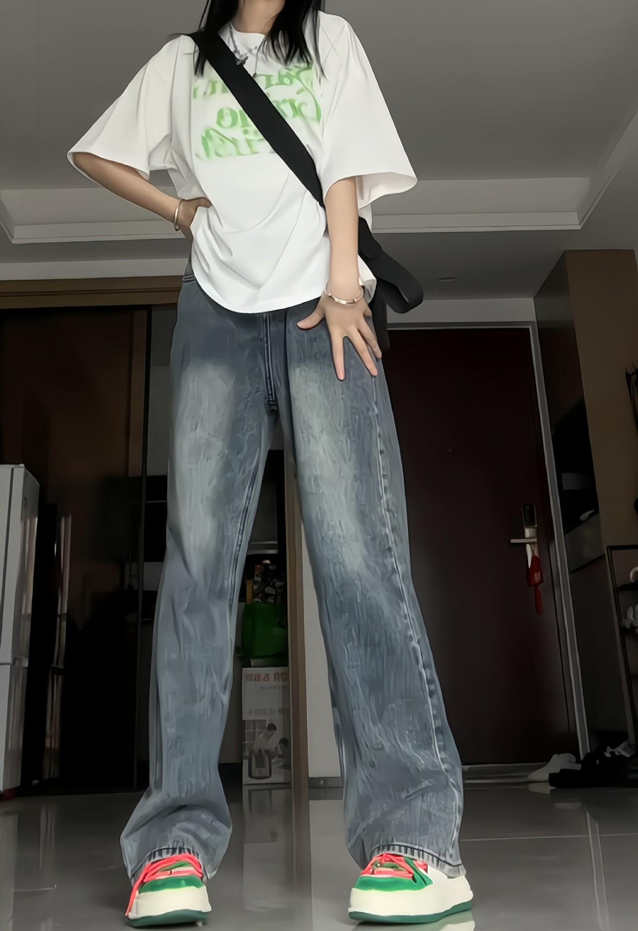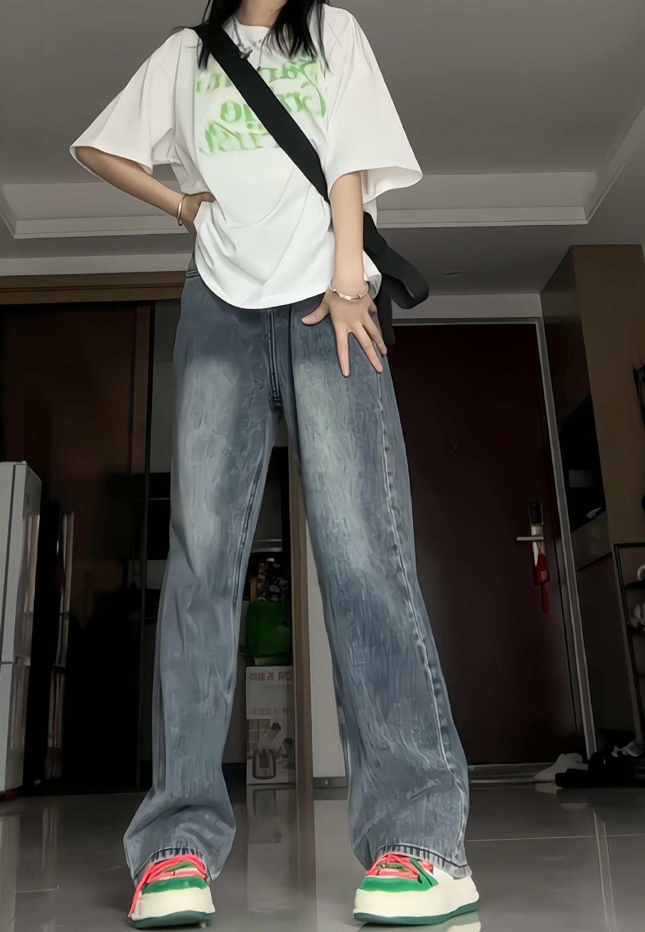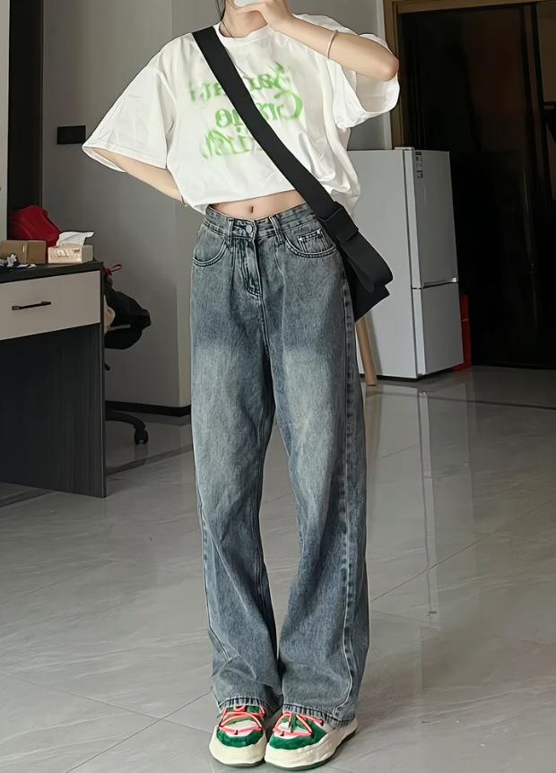 Pantalones vaqueros de estilo retro americano para mujer, de estilo urbano, de otoño, con un nuevo diseño pequeño y un estilo nicho, de cintura alta, rectos y con pierna ancha.