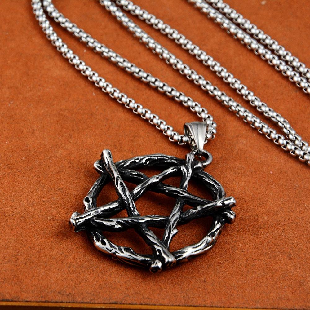 Collar con colgante de árbol de estrella de cinco puntas, personalidad, moda casual, joyería de acero de titanio, suministro transfronterizo