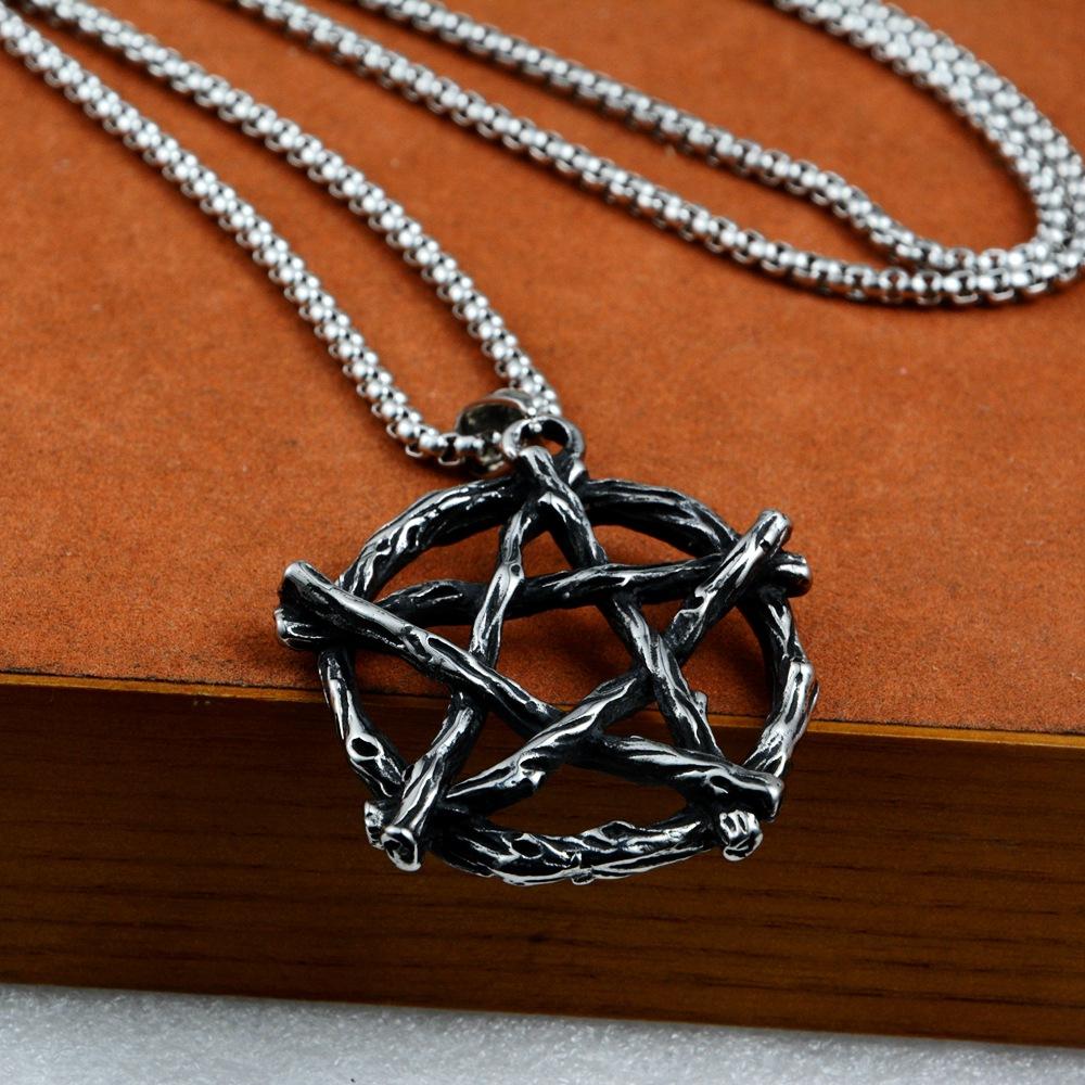 Five-pointed star tree-shaped silver single pendant plus 60CM chain