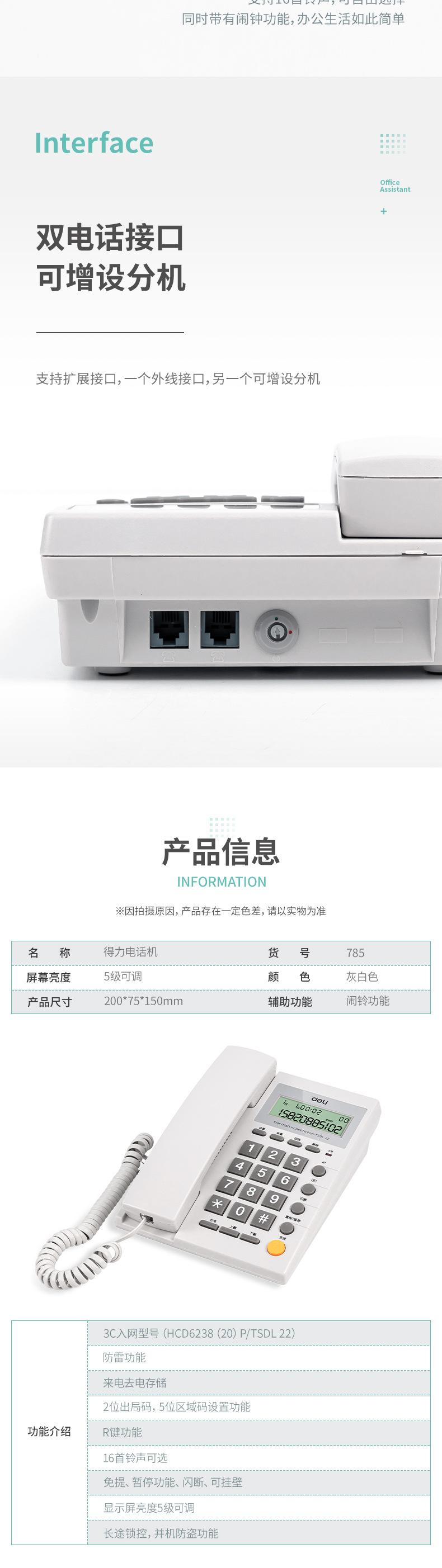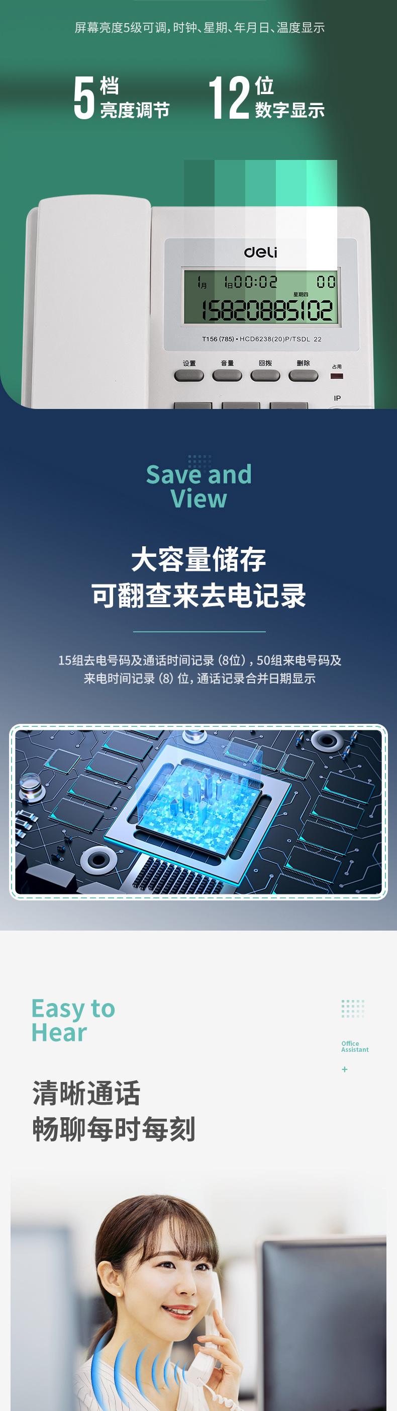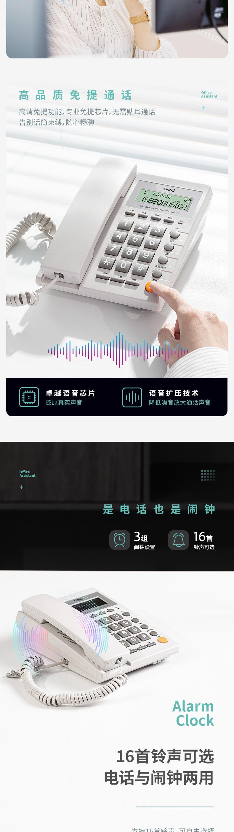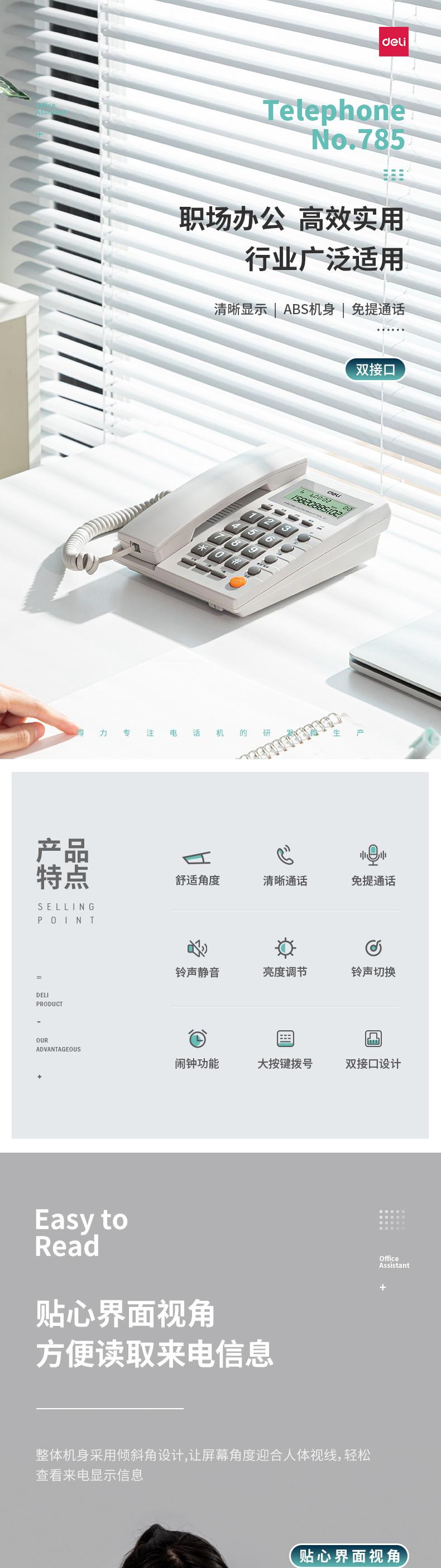 Teléfono Deli 785 Teléfono residencial ligero de lujo con pantalla de llamada, cableado, multifunción, marcación fija, para oficina