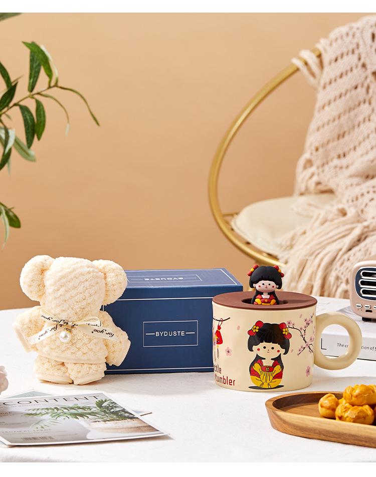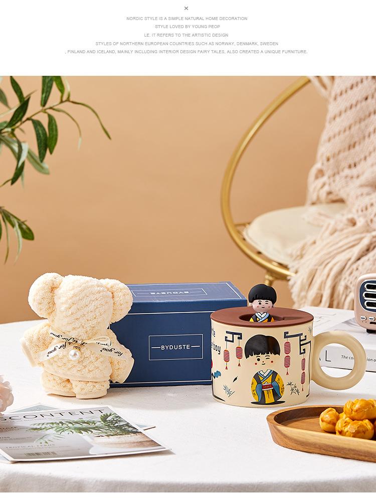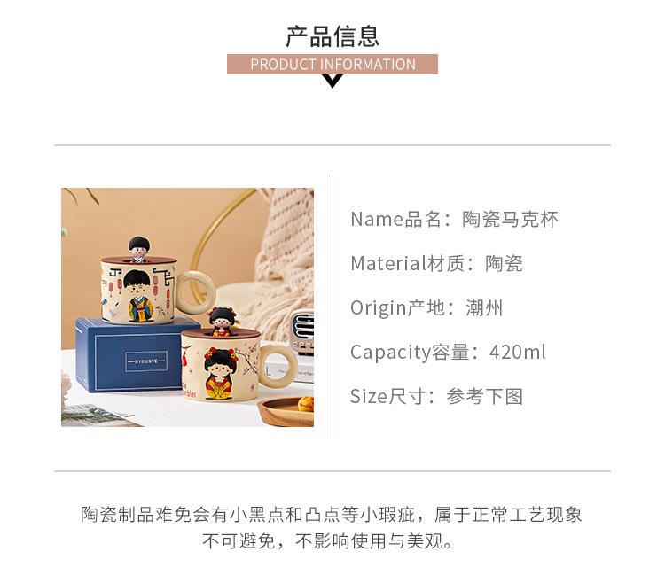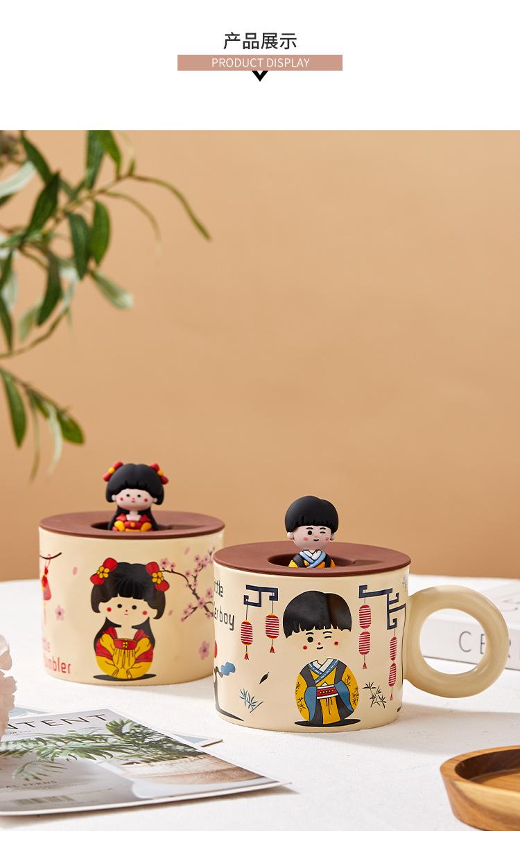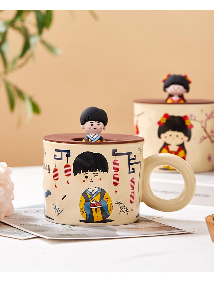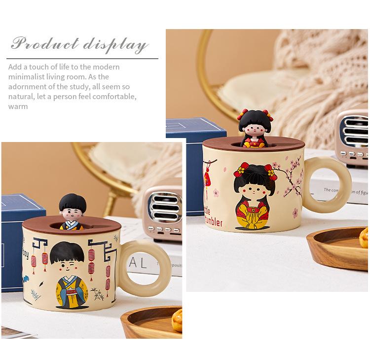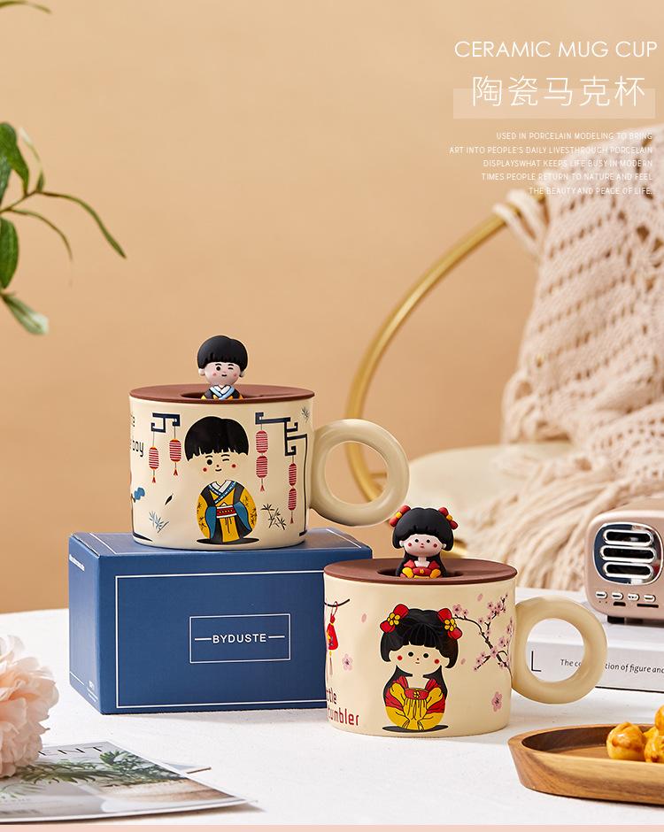 Taza vintage con tapa, taza creativa, taza de cerámica, taza de agua personalizada para pareja, taza de desayuno moderna para el hogar, taza de café