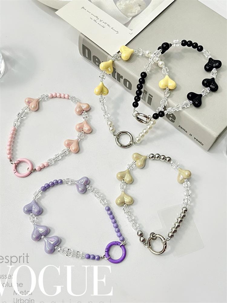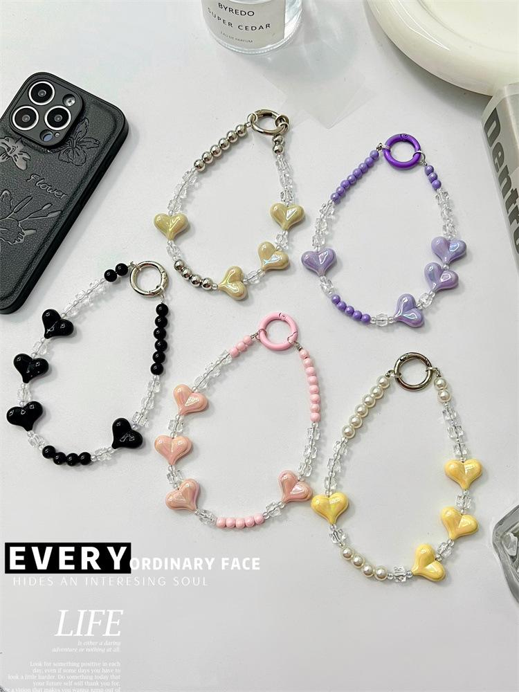 Cadena para teléfono móvil de amor fresco y simple, cordón corto para muñeca, cadena de cuentas, colgante de alta gama, cadena colgante, colgante para cámara