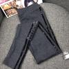Pantalones laterales brillantes y decorativos, leggings para mujer, de algodón, de cintura alta, elásticos, ajustados, verticales, una generación de cabello