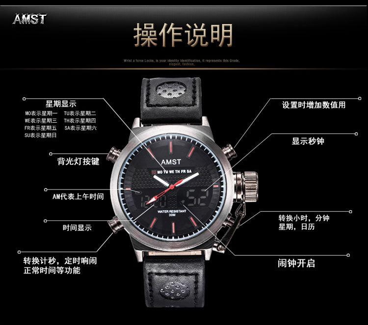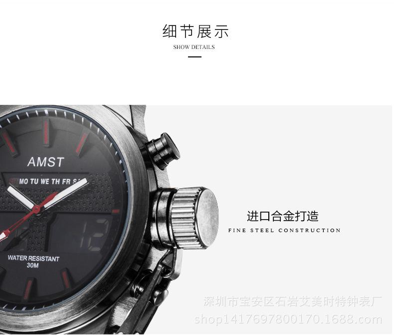 La Fábrica de Relojes Aimeishite de Shiyan, Distrito de Baoan, Shenzhen es el fabricante designado de la marca internacional: marca AMST Aimeishite. Produce principalmente relojes multifunción de doble pantalla AMST y Aimeishite, relojes resistentes al agua, relojes de cuarzo, relojes electrónicos y otros relojes multifunción a la moda internacional resistentes al agua. También cuenta con una fábrica de accesorios para producir: accesorios para relojes, relojes resistentes al agua, relojes de acero, agujas y esferas de reloj, agujas florales, agujas luminosas y otros accesorios para relojes. La empresa cuenta con un sistema de gestión de calidad completo y científico y una cadena de producción de suministro de apoyo. La Fábrica de Relojes Aimeishite de Shiyan, Distrito de Baoan, Shenzhen ha sido reconocida por la industria por su buena integridad, sólida fortaleza y excelente calidad de producto. Sus productos se venden a 186 países de todo el mundo, y todas las plataformas en línea conocidas del mundo tienen distribuidores autorizados. Se invita a internautas de todos los ámbitos de la vida de todo el mundo a realizar pedidos en línea o a visitar el Departamento de Ventas de China de Mong Kok International Watch City en Guangzhou, provincia de Guangdong, China, para discutir compras. Reloj AMST Aimeishite multifunción con cuenta regresiva, electrónico, de cuarzo, para estudiantes, deportivo, entrega 3025
