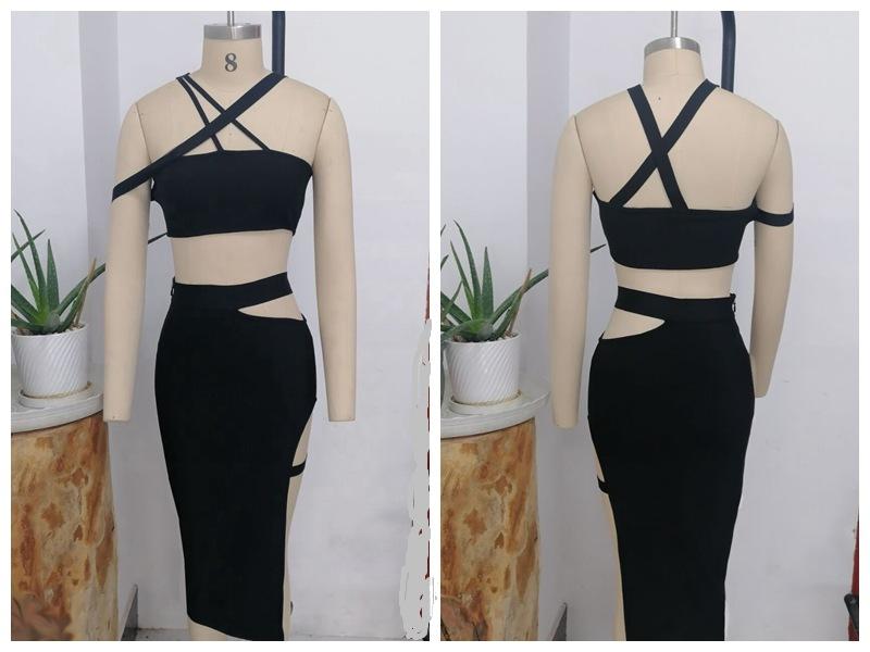 Traje de dos piezas con tirantes cruzados, estilo europeo y americano, ajustado, negro, sin mangas, con vendaje, comercio exterior, entrega transfronteriza, 2023