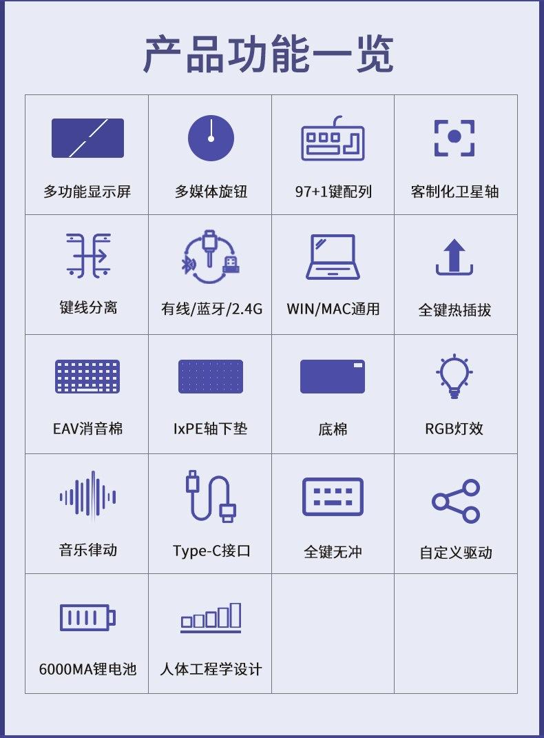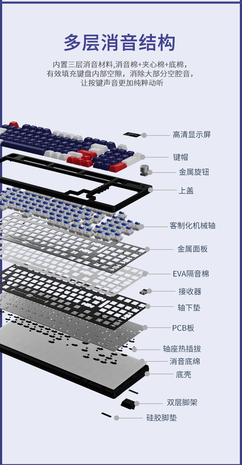 Teclado mecánico inalámbrico Bluetooth de 98 teclas con tres modos de funcionamiento, kit personalizado para armar uno mismo, perilla de pantalla RGB intercambiable en caliente