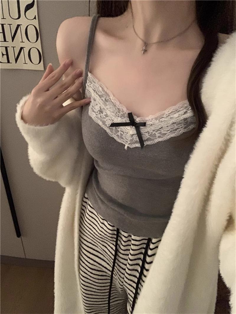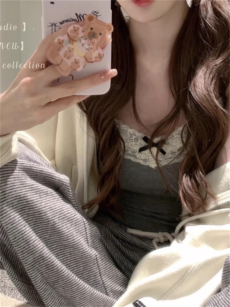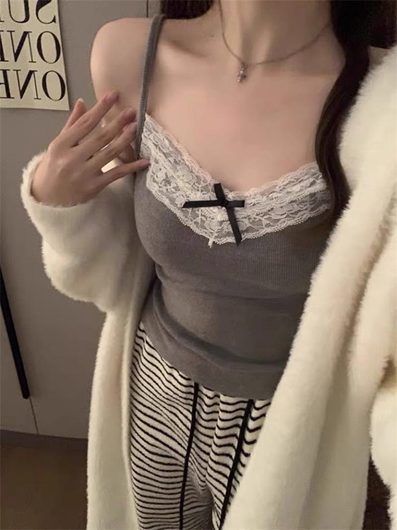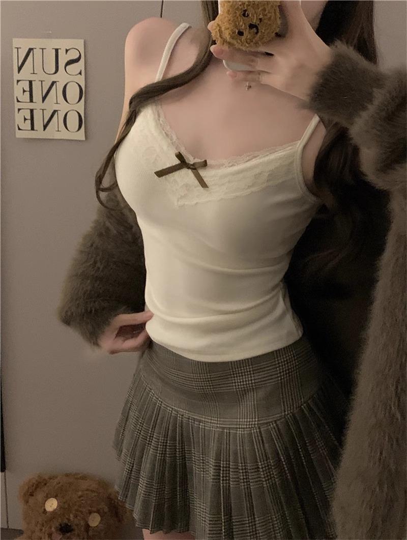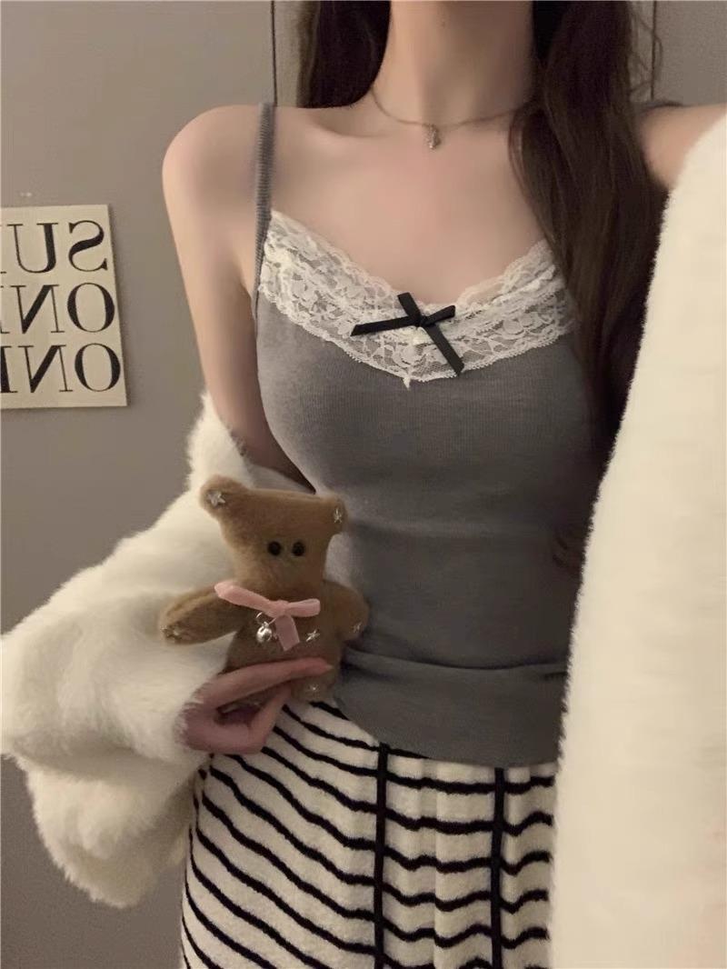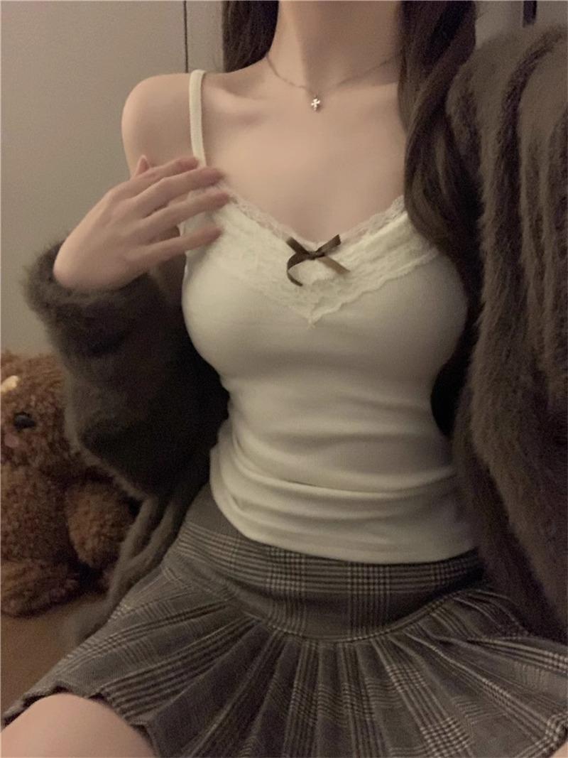 Camisola con almohadilla para el pecho para mujer, con lazo de encaje, para uso interior y exterior, estilo Spice Girl, top corto de verano que adelgaza la espalda.
