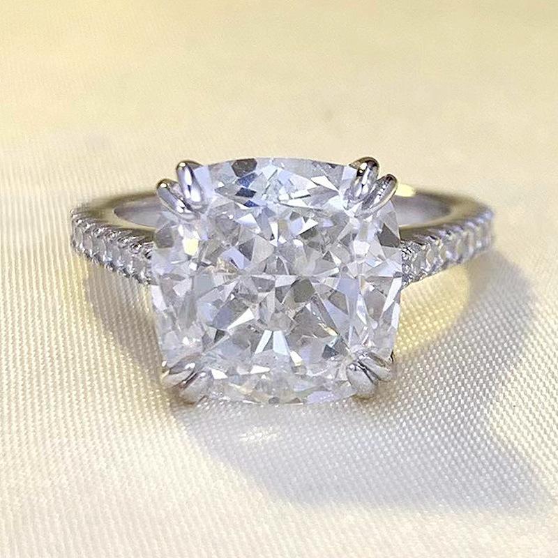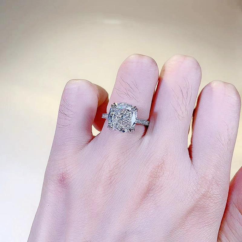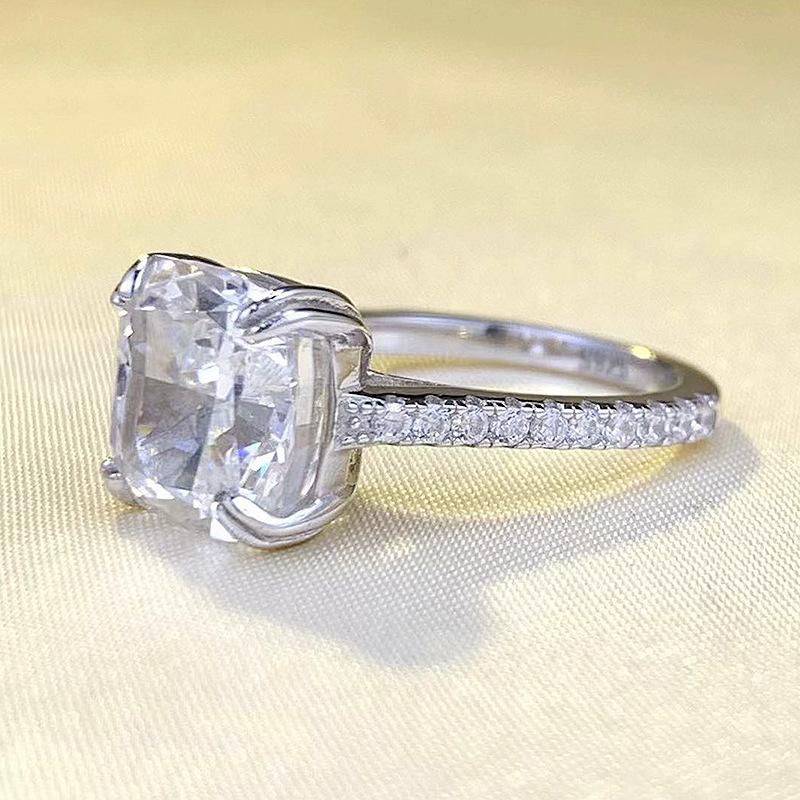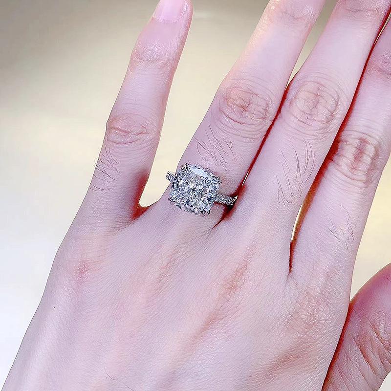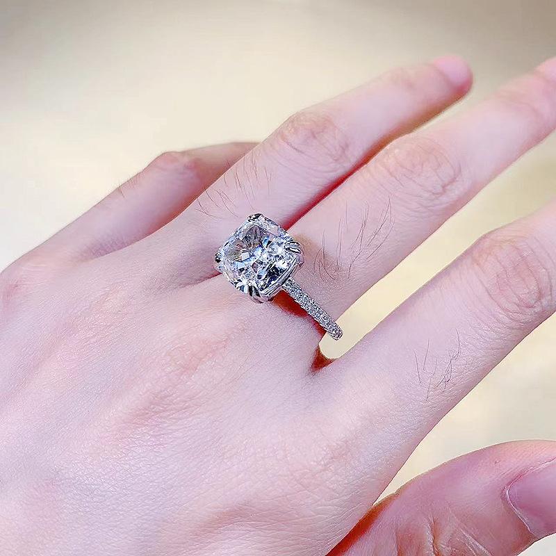 Zhuo Zhifan 2023 nuevo S925 plata importada diamante de alto carbono 10 * 10 mm anillo cuadrado de grasa moda femenina todo a juego