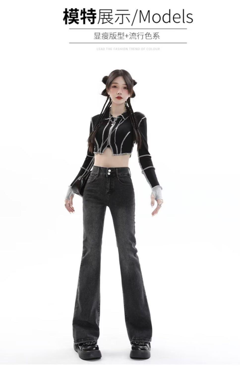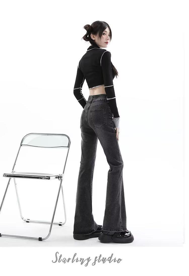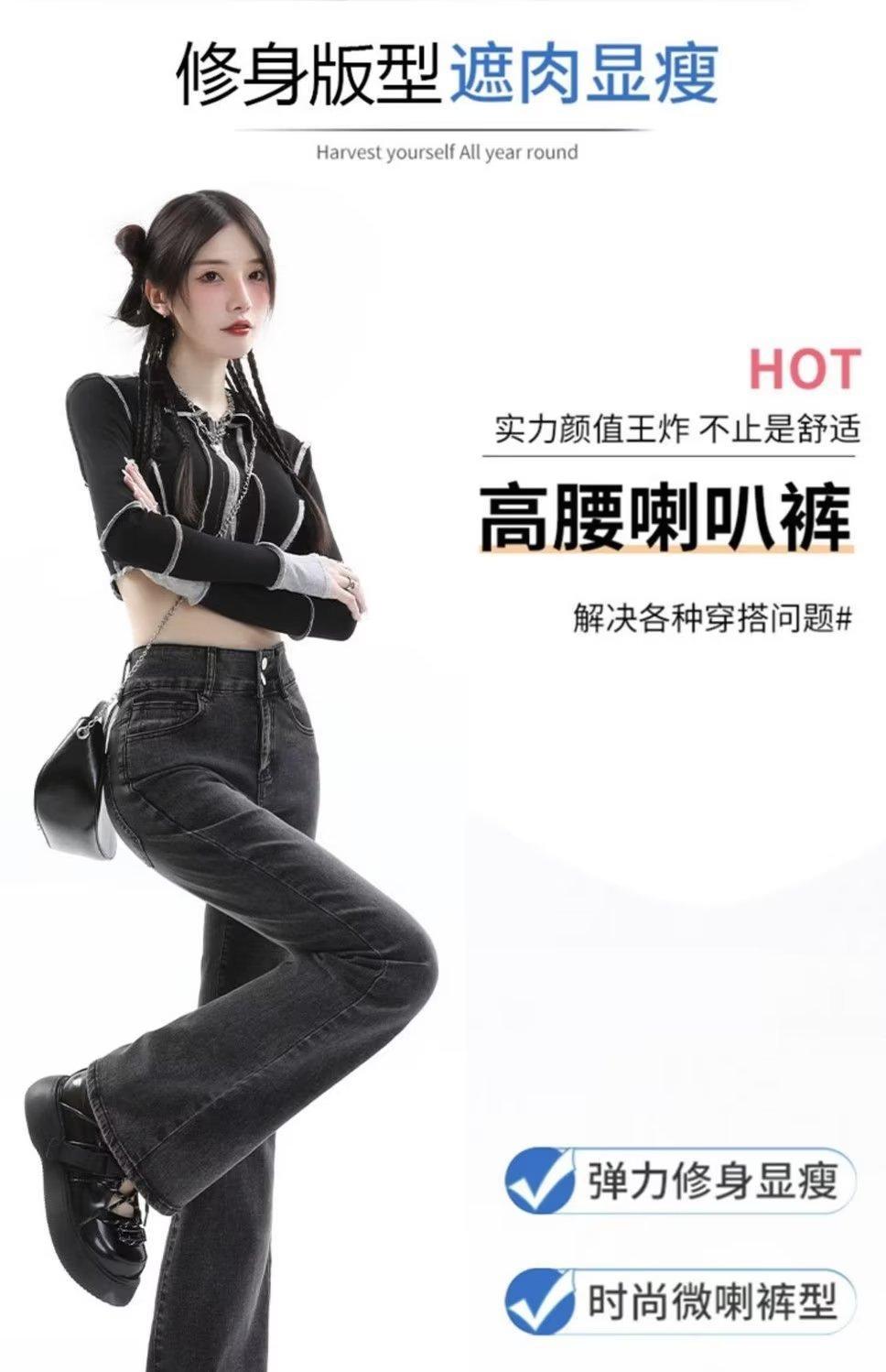 Spice Girls Weila Jeans Mujer Otoño 2024 Nuevo Popular en Línea Ajustado Cintura Alta Retro Adelgazante Combinable Pantalones Oscuros