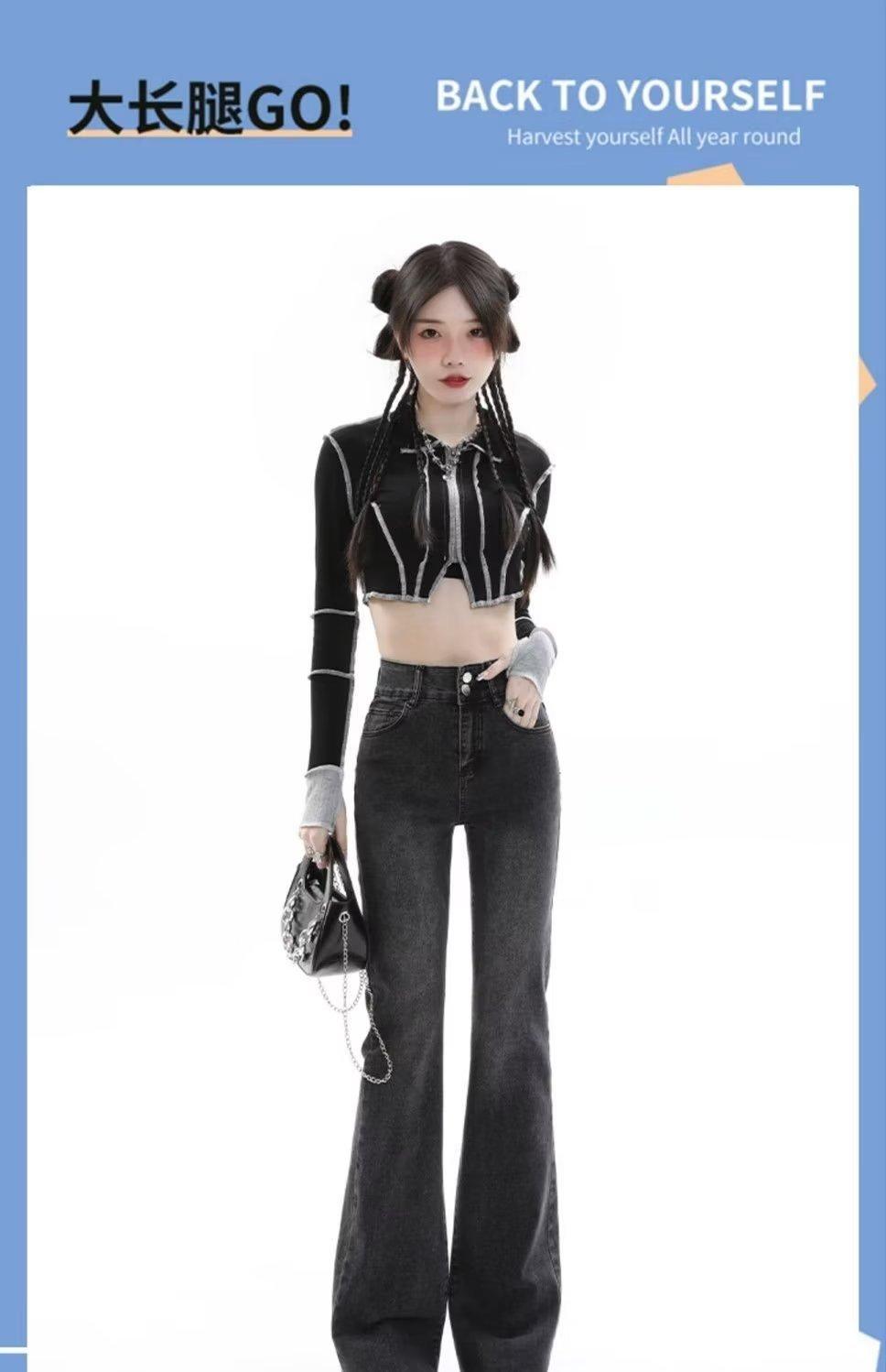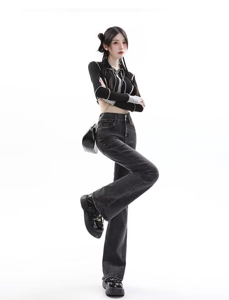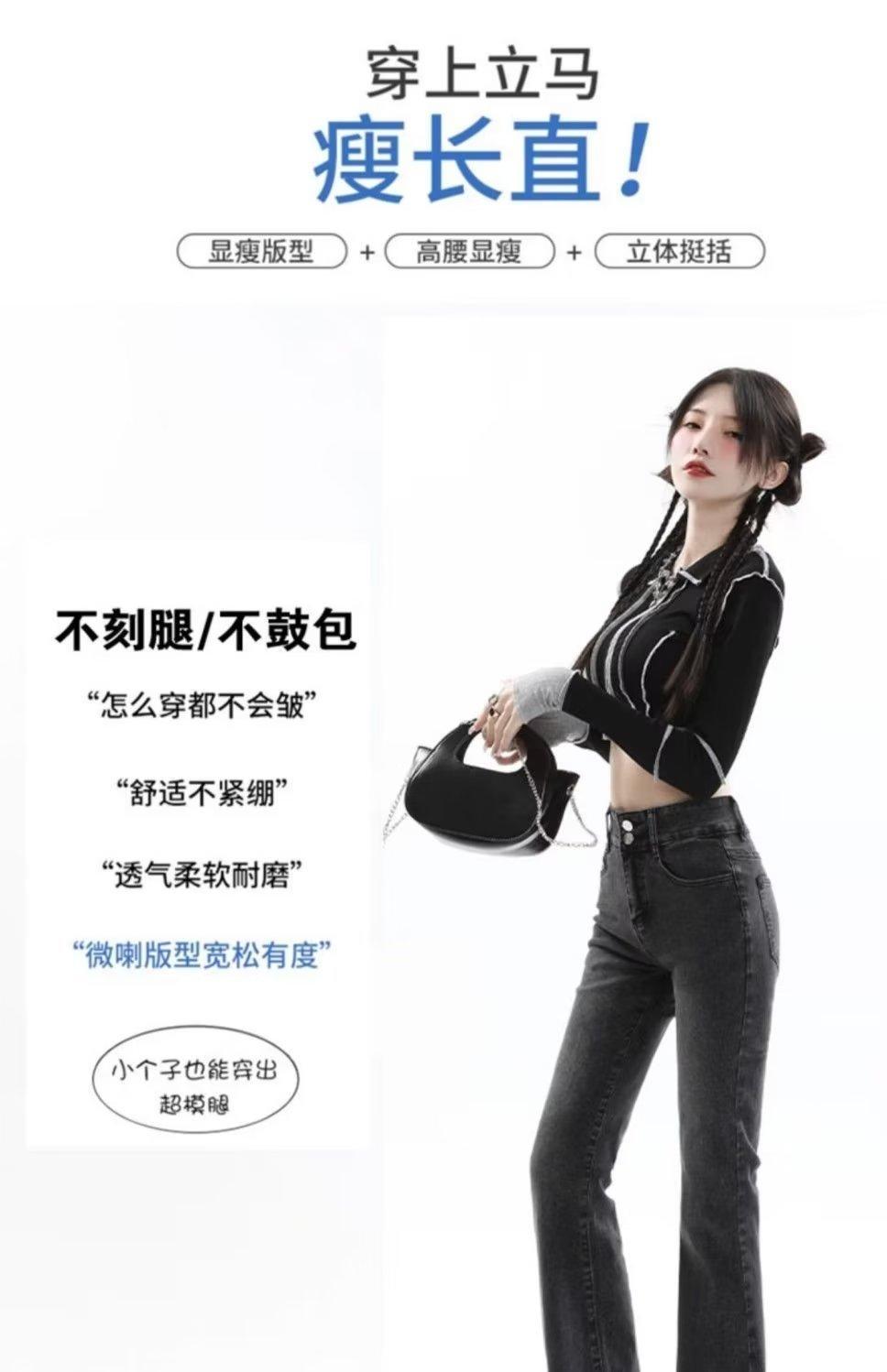 Spice Girls Weila Jeans Mujer Otoño 2024 Nuevo Popular en Línea Ajustado Cintura Alta Retro Adelgazante Combinable Pantalones Oscuros