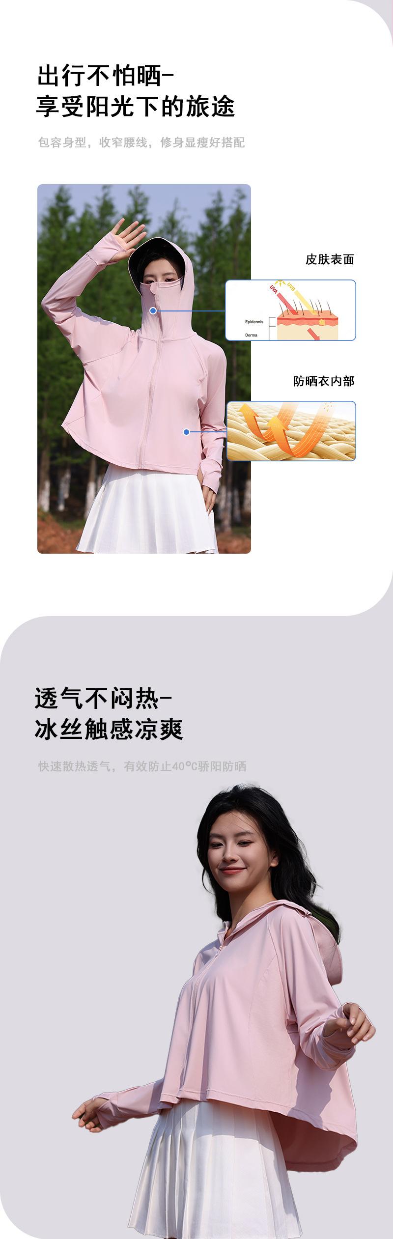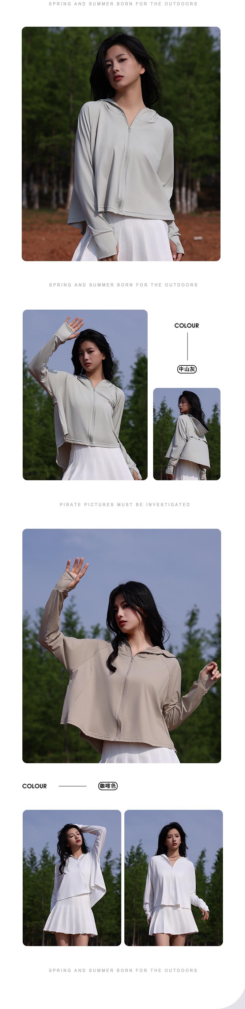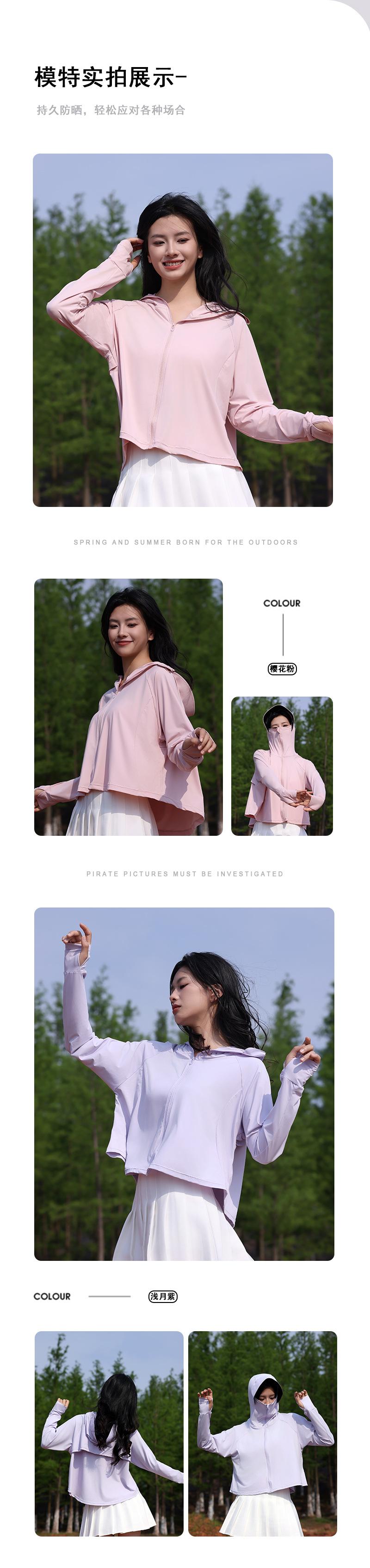 Marca Mismo Estilo Ropa de Protección Solar para Mujer Upf50 Seda de Hielo Anti-Uv Transpirable Ligera Ropa Corta de Protección Solar Capa de Pegamento Negro