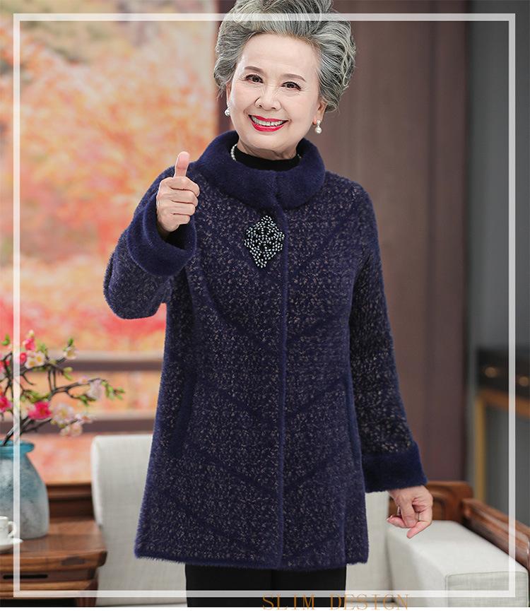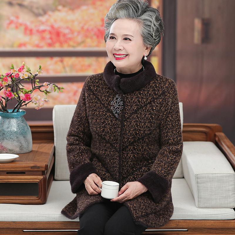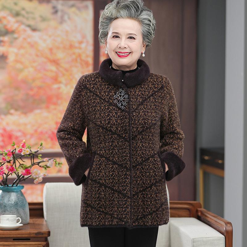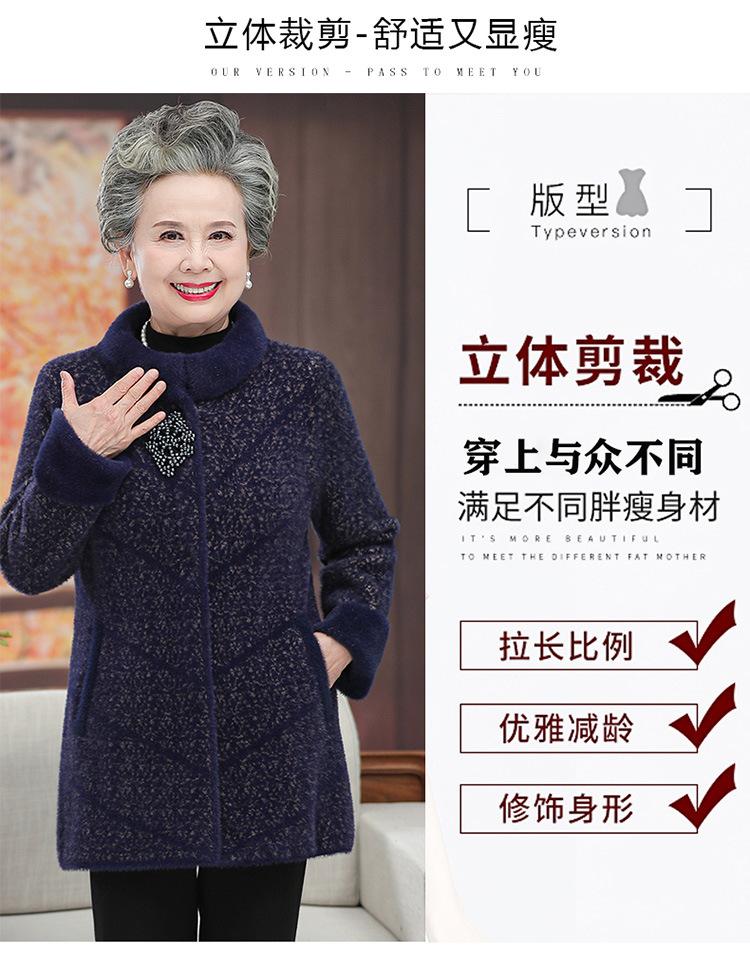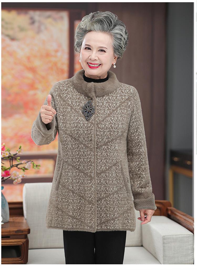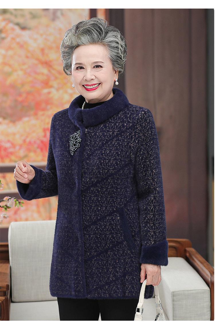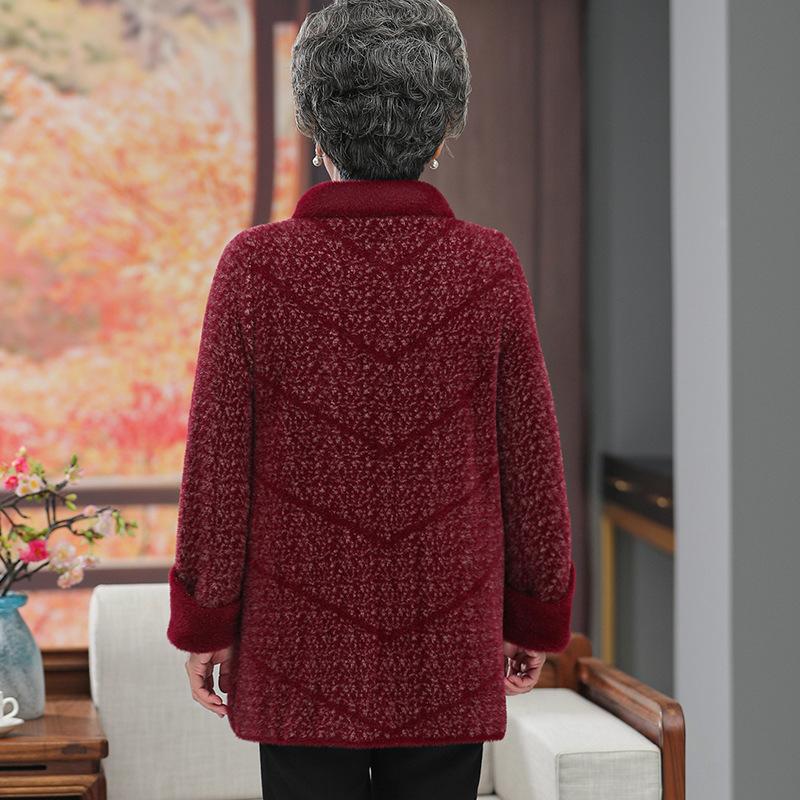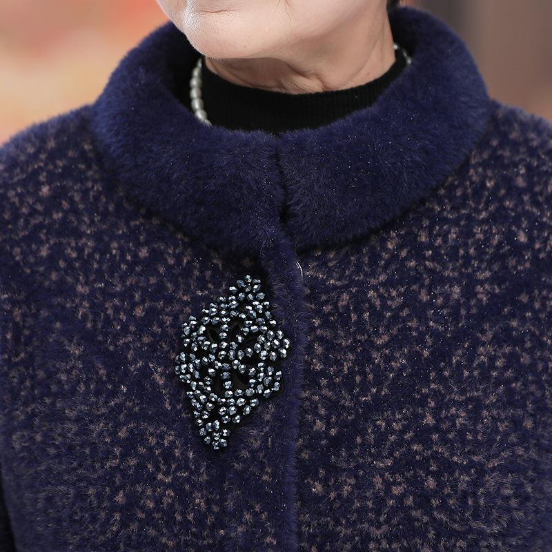 Abrigo de lana de visón estilo occidental para mamá, abrigo de lana de doble cara corto para mujeres de mediana edad y mayores de talla grande, otoño e invierno