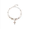 Traje de joyería de acero inoxidable de alta calidad, bañado en oro al vacío, resistente al agua, con colgante de cruz de diamantes, pulsera de perlas de doble fila