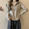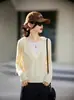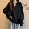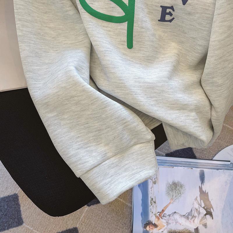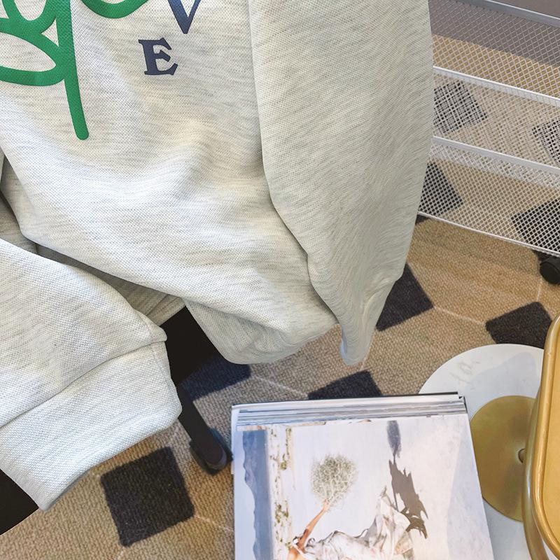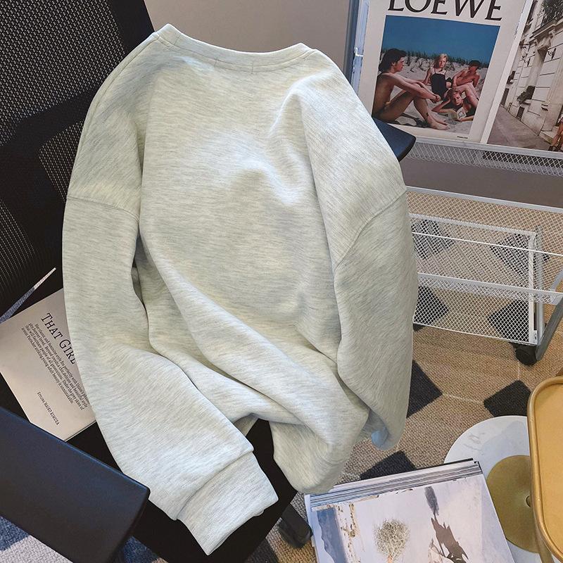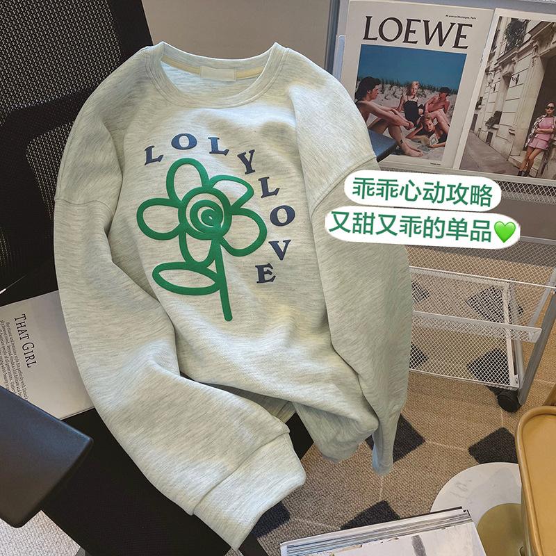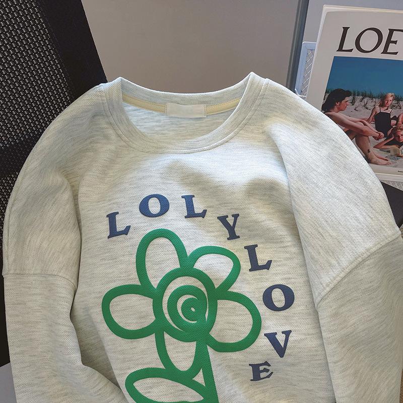 Suéter de manga larga con estampado de flor de algodón de 300 g para mujer, nuevo de primavera y otoño, holgado, de largo medio, cuello redondo, top versátil