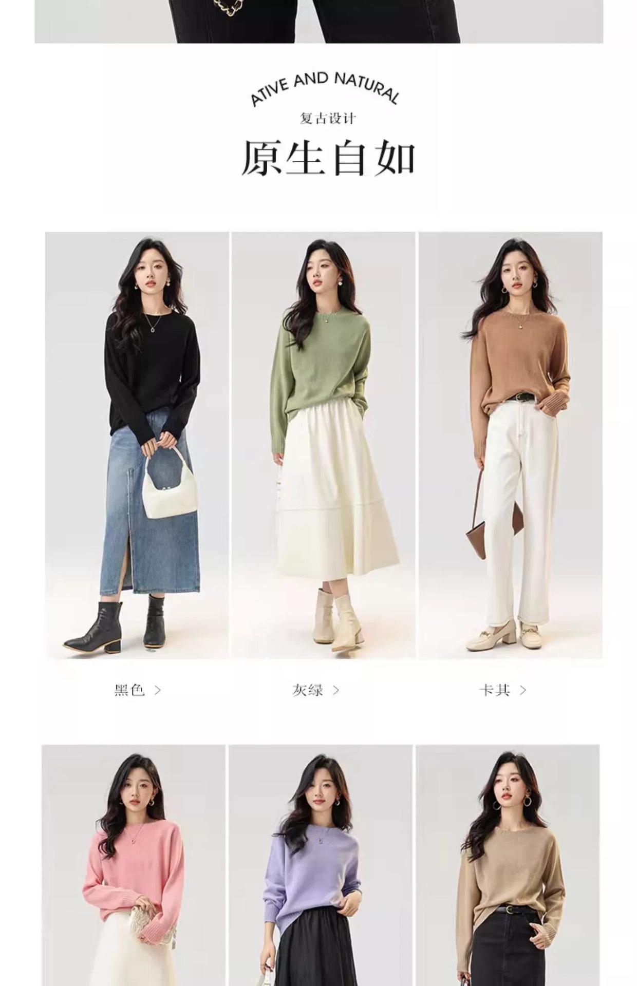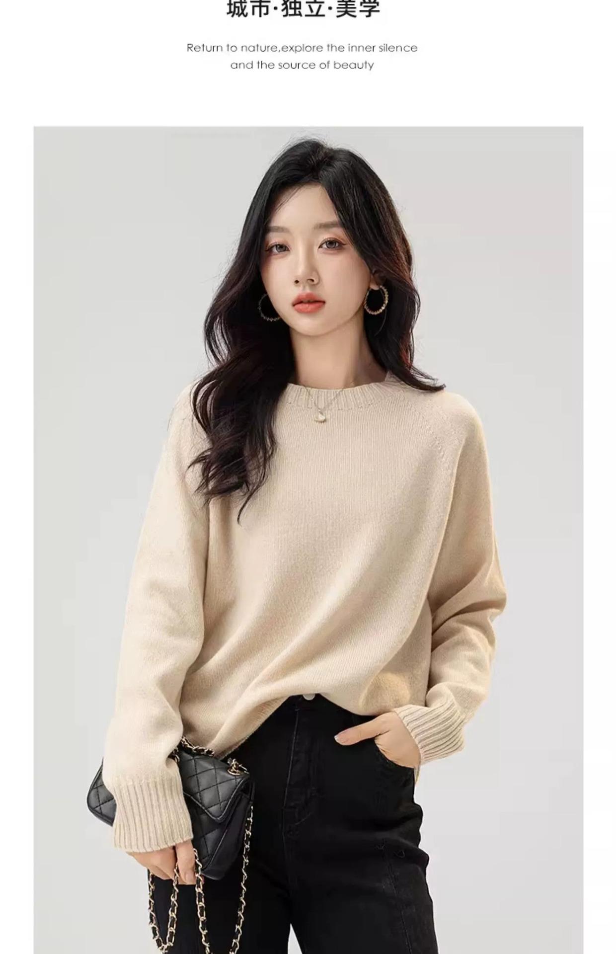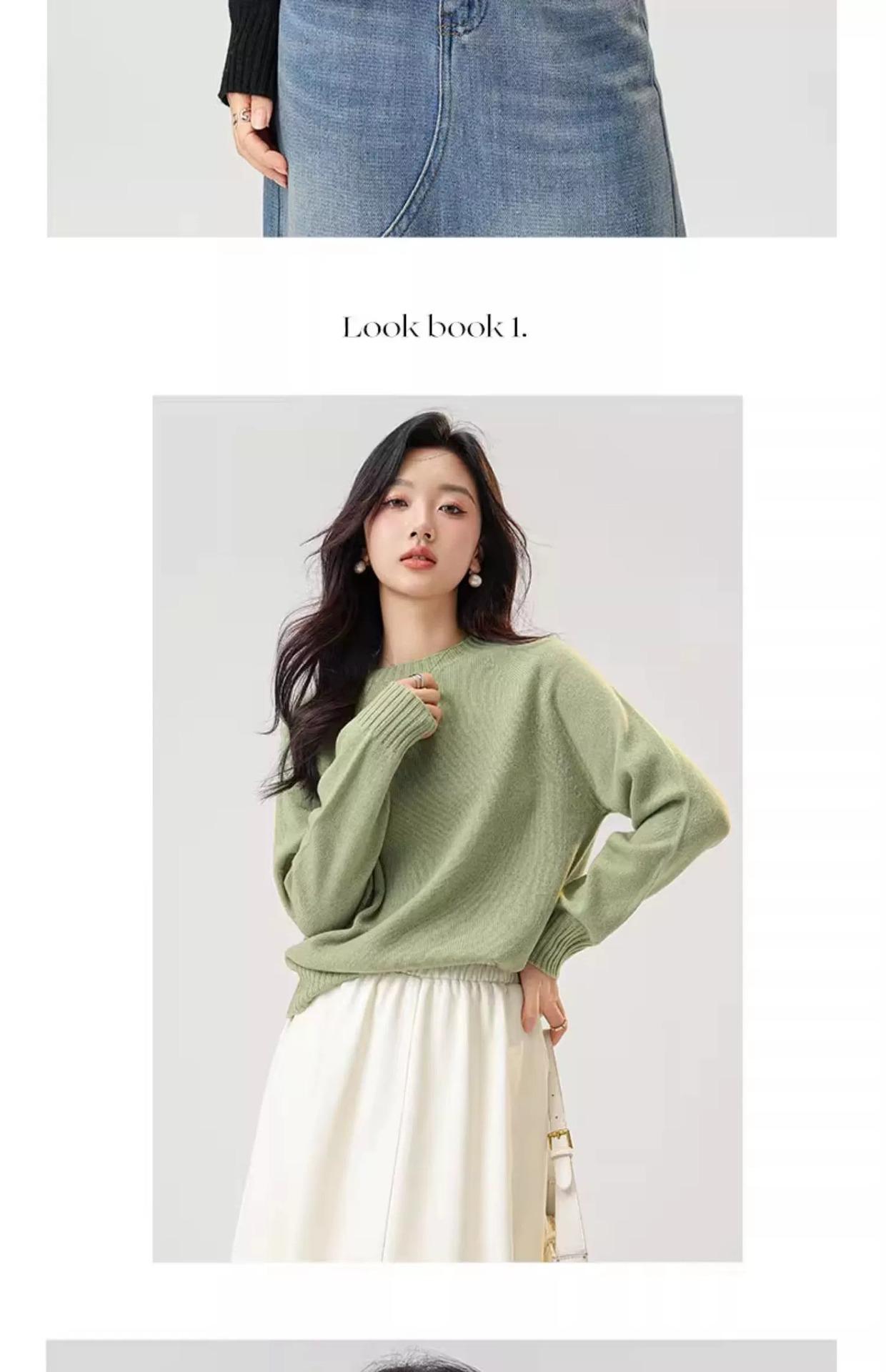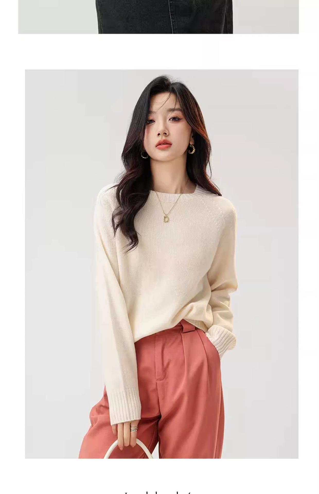 Camiseta básica de punto de manga larga para mujer, suéter de lana, cuello redondo, suéter casual versátil de color sólido, adelgazante, modelo nuevo 2025