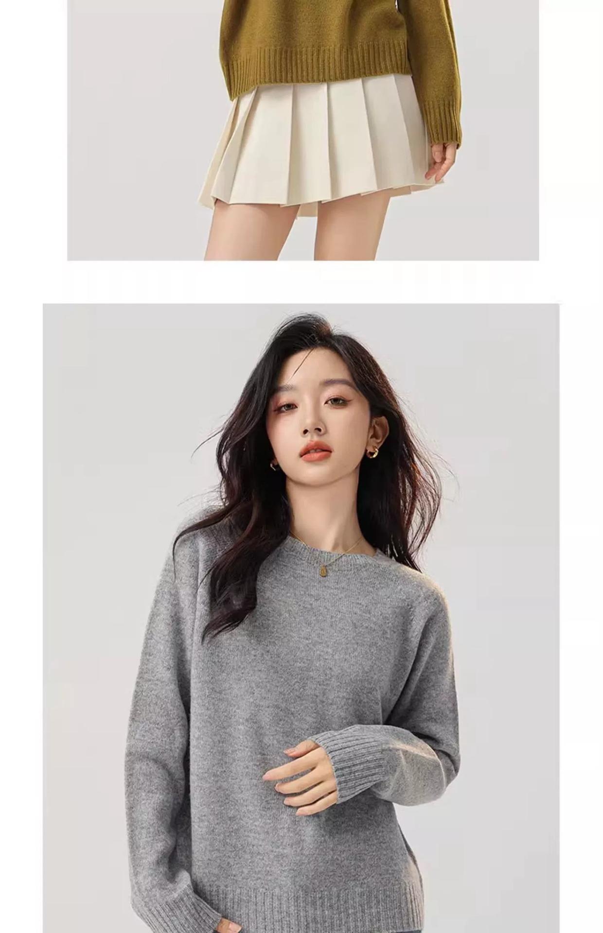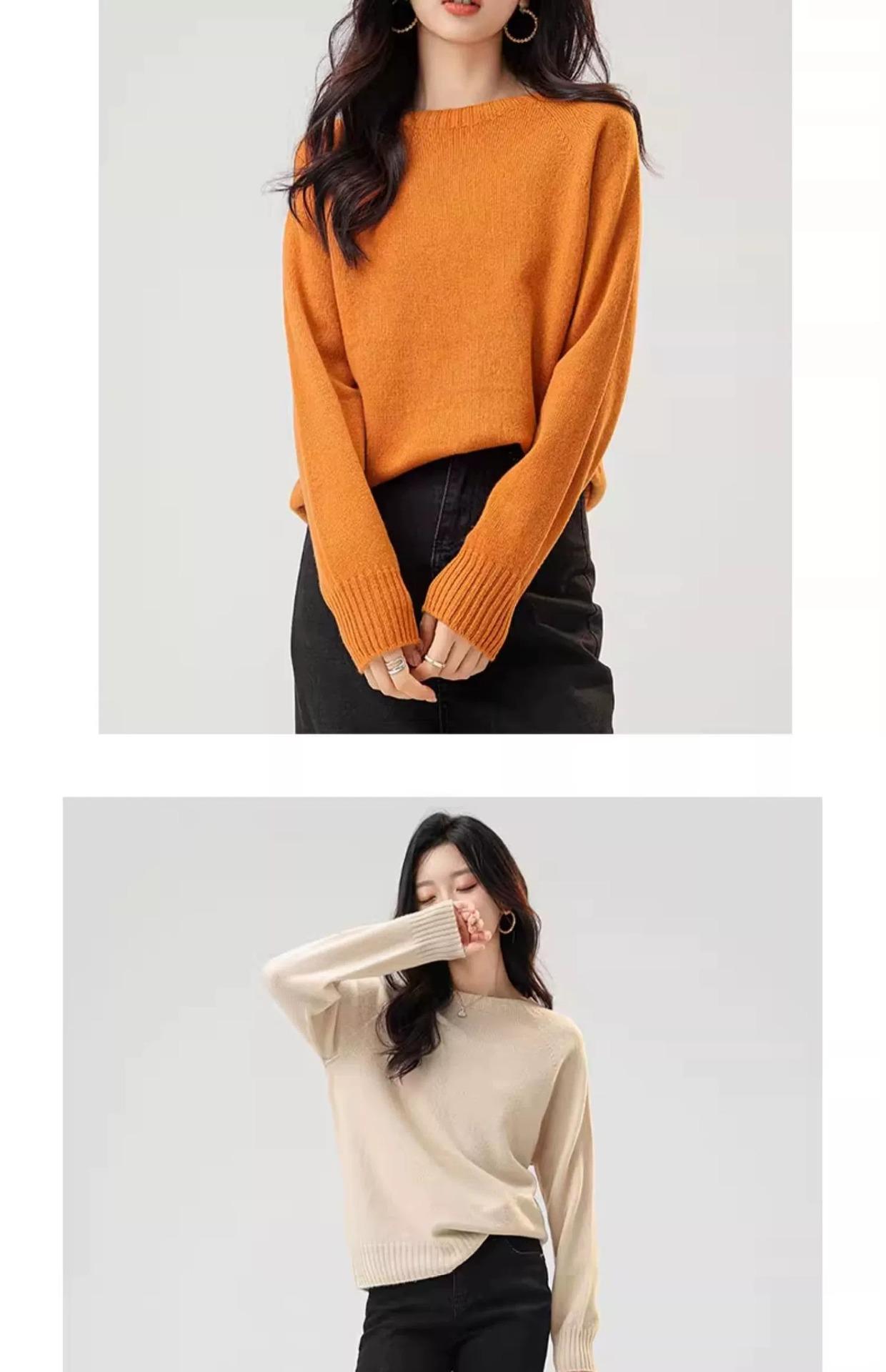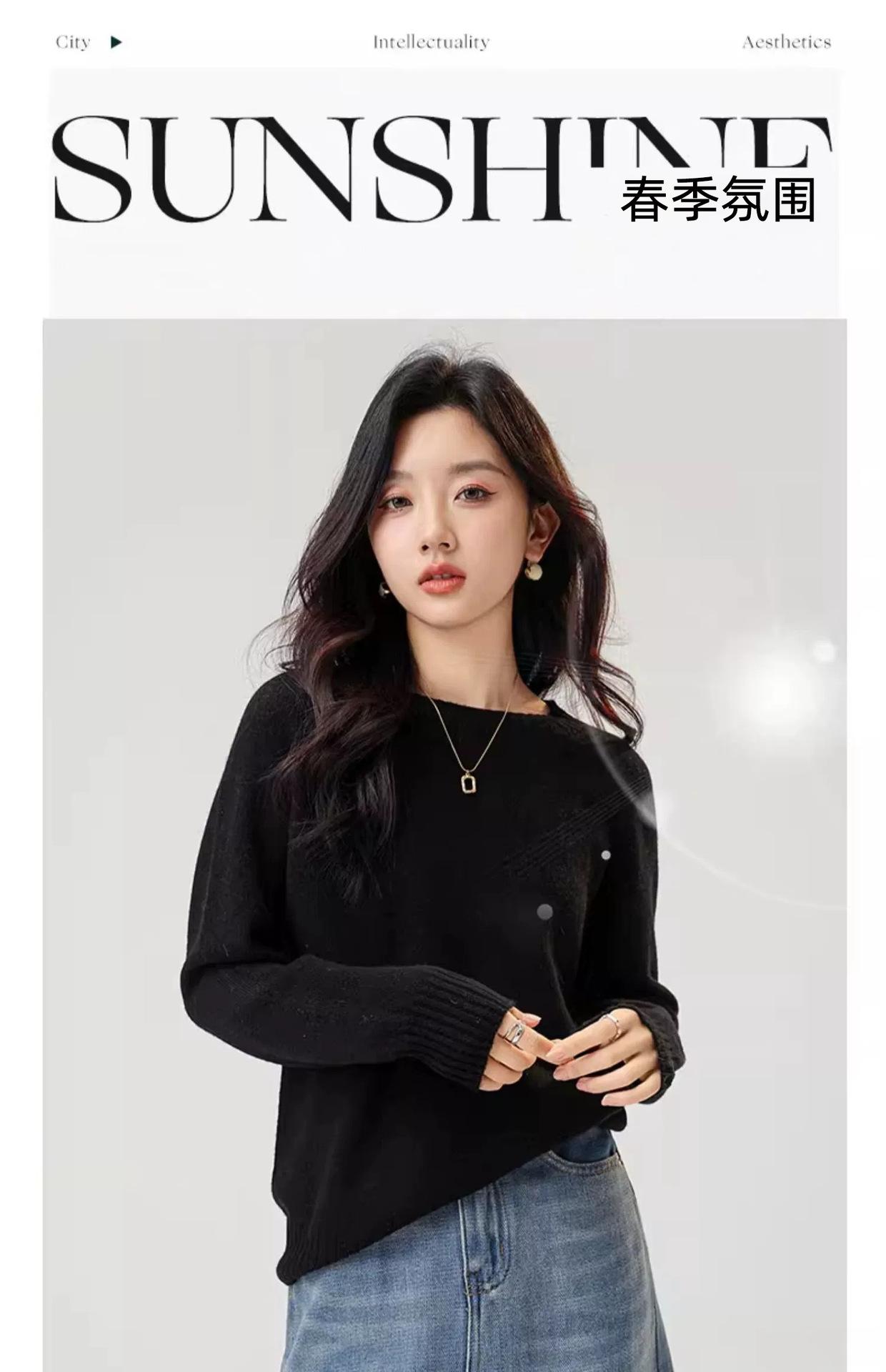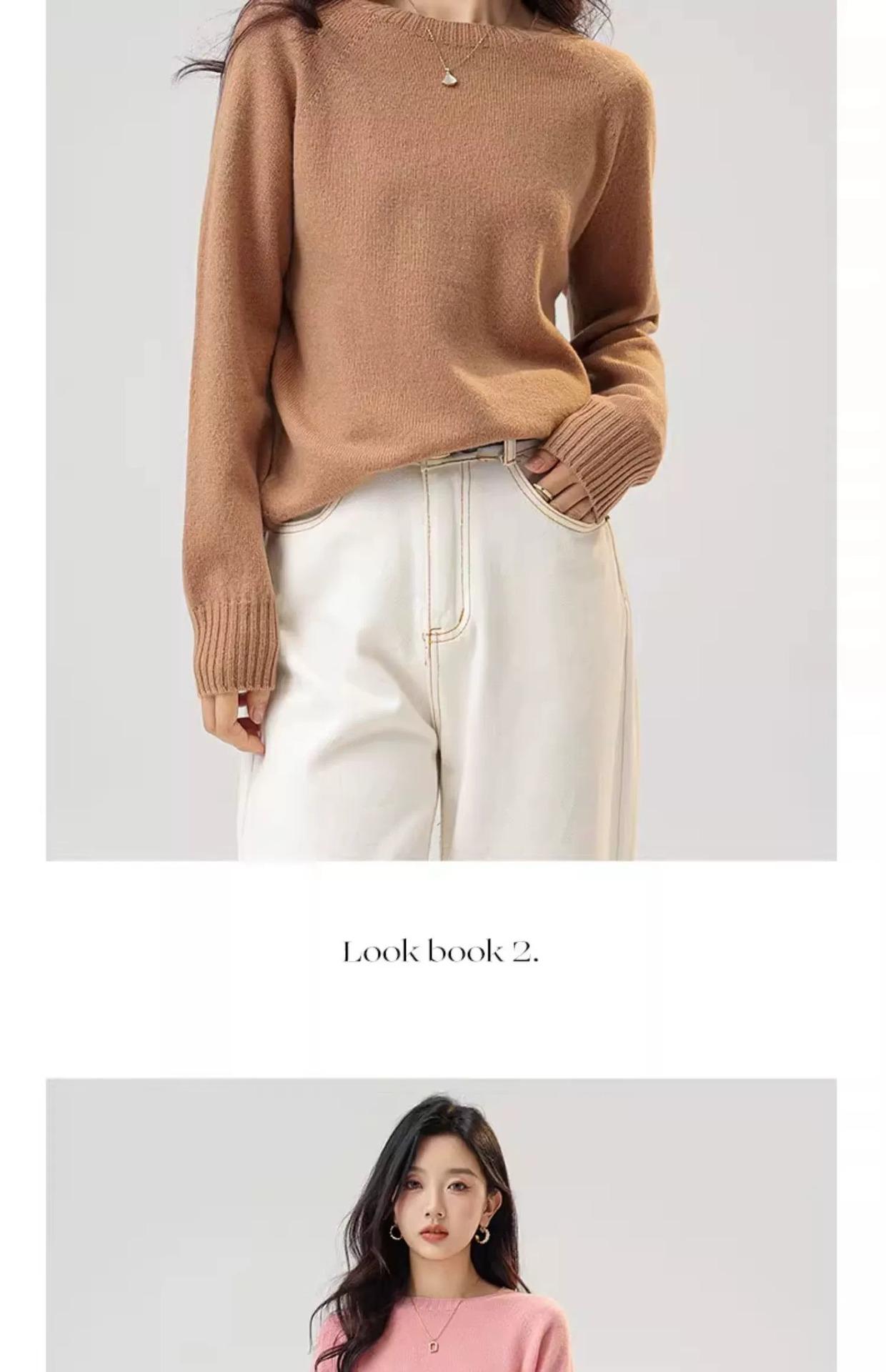 Camiseta básica de punto de manga larga para mujer, suéter de lana, cuello redondo, suéter casual versátil de color sólido, adelgazante, modelo nuevo 2025