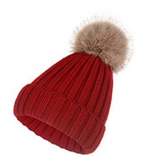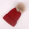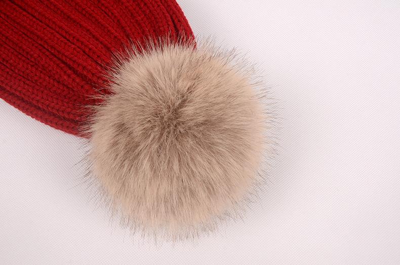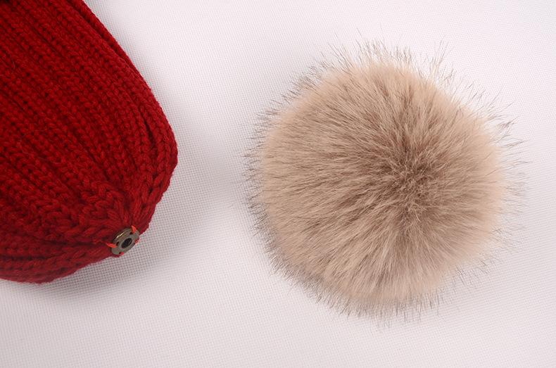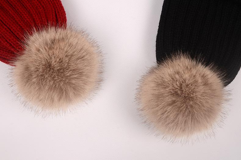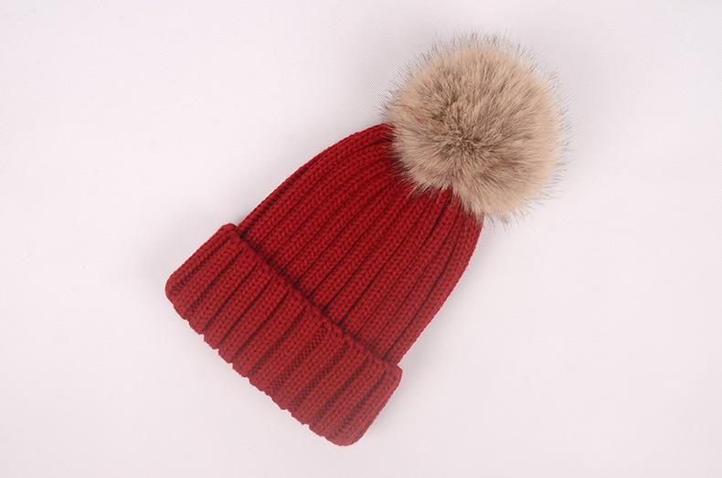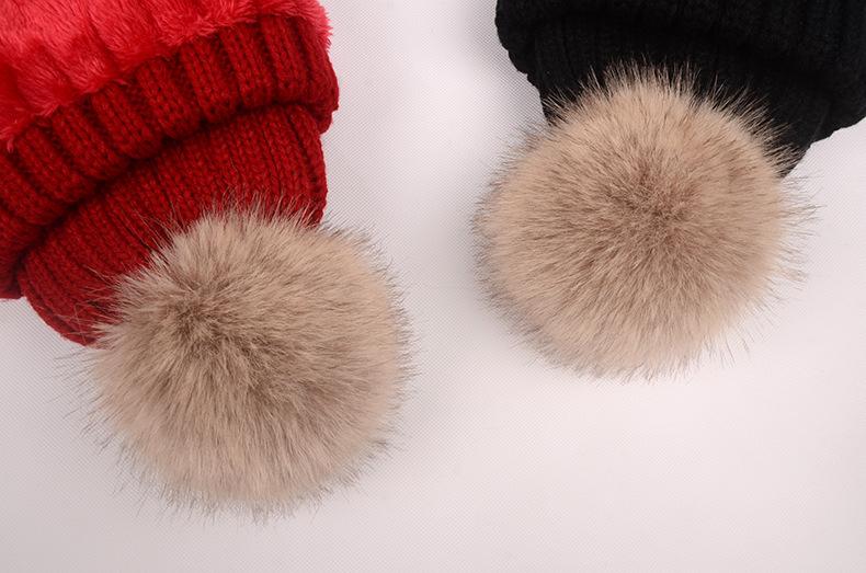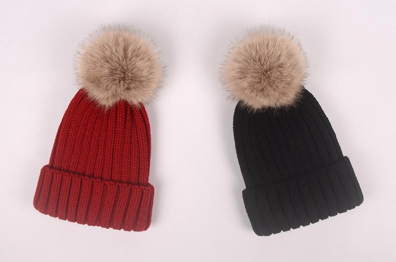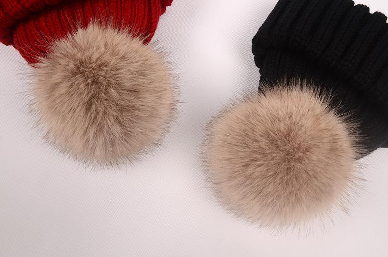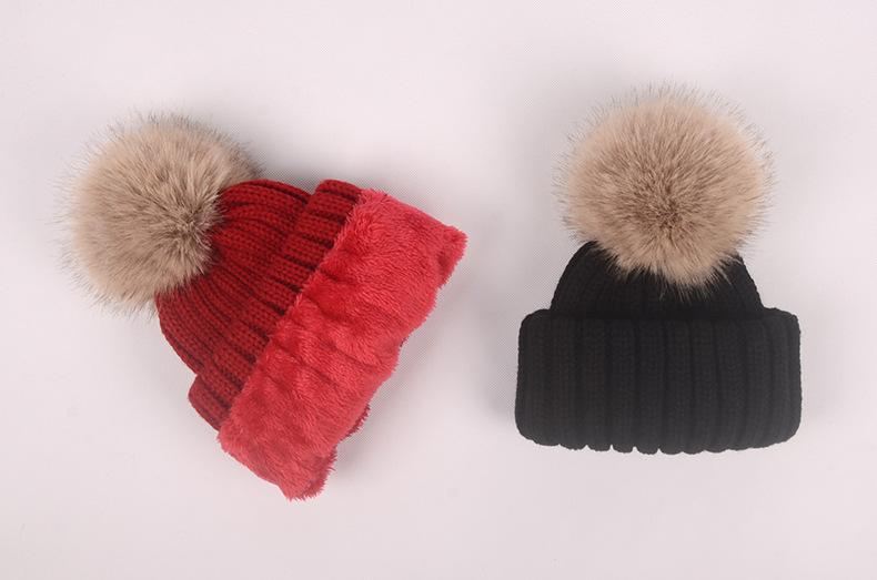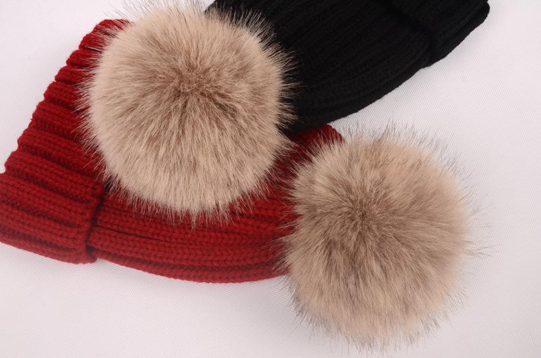 Gorro de otoño e invierno nuevo, gorro de punto con bola de pelo de mapache de imitación, gorro de lana gruesa con forro polar para mujer, gorro para padres e hijos que combina con todo.