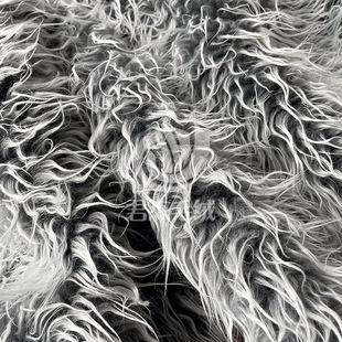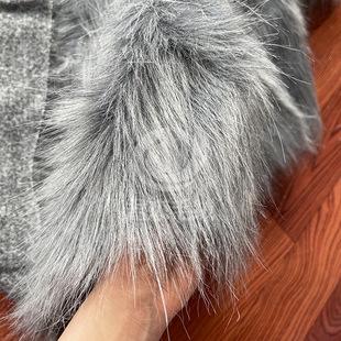 Manta de lana de estilo Shanghai de pelo largo gris de peluche, tela de felpa blanca y gris, artesanía, regalo para jugar