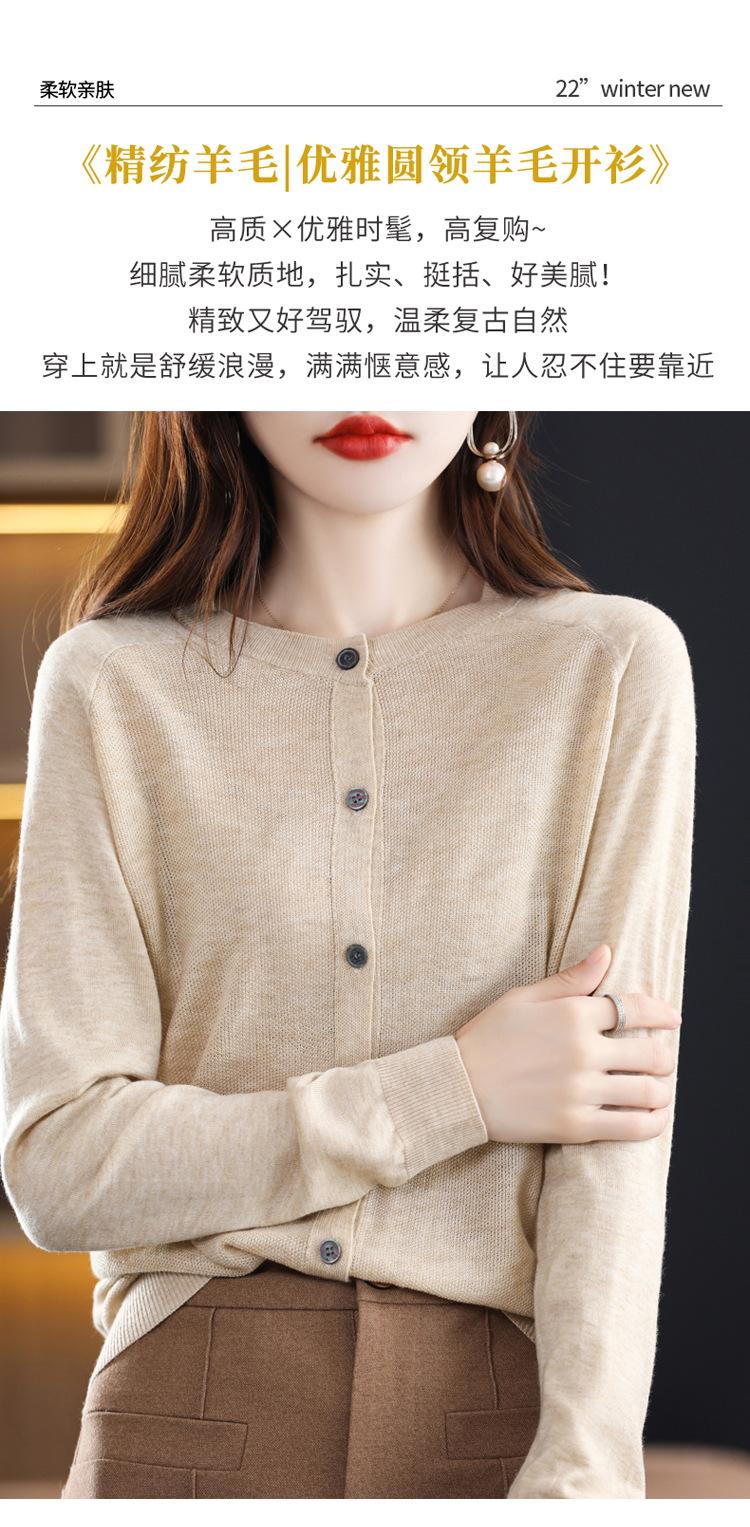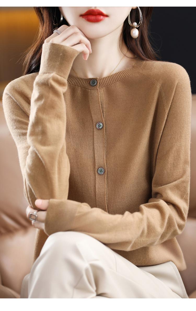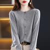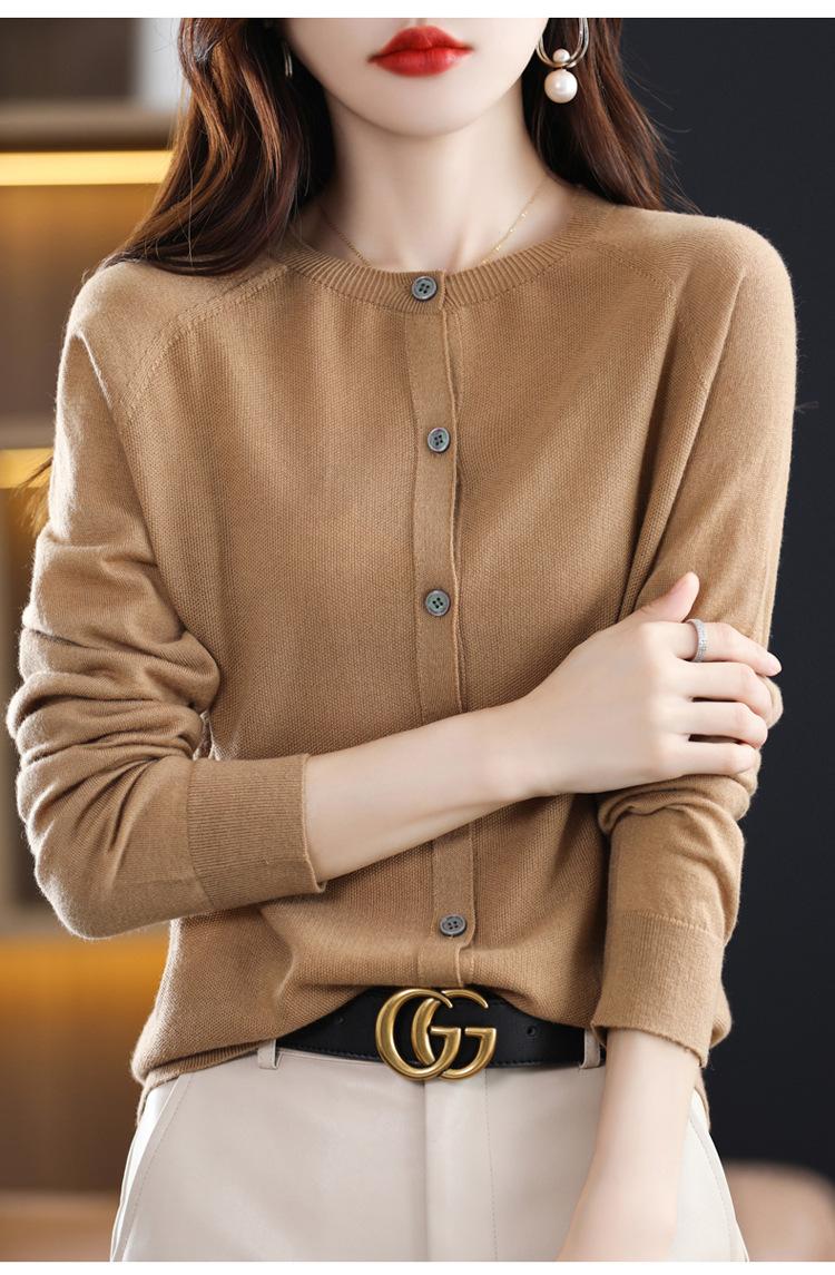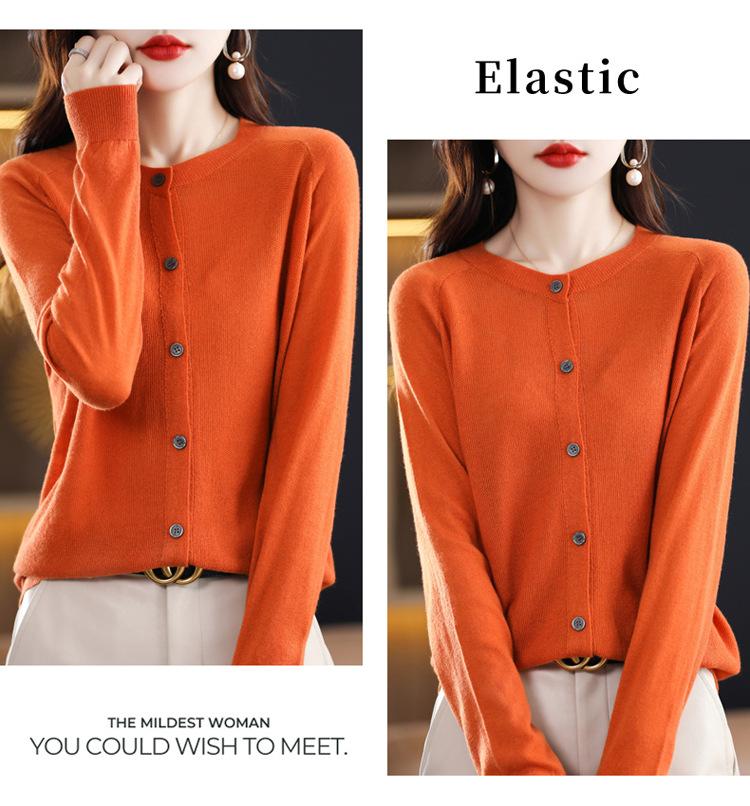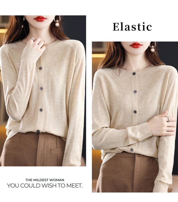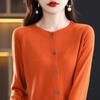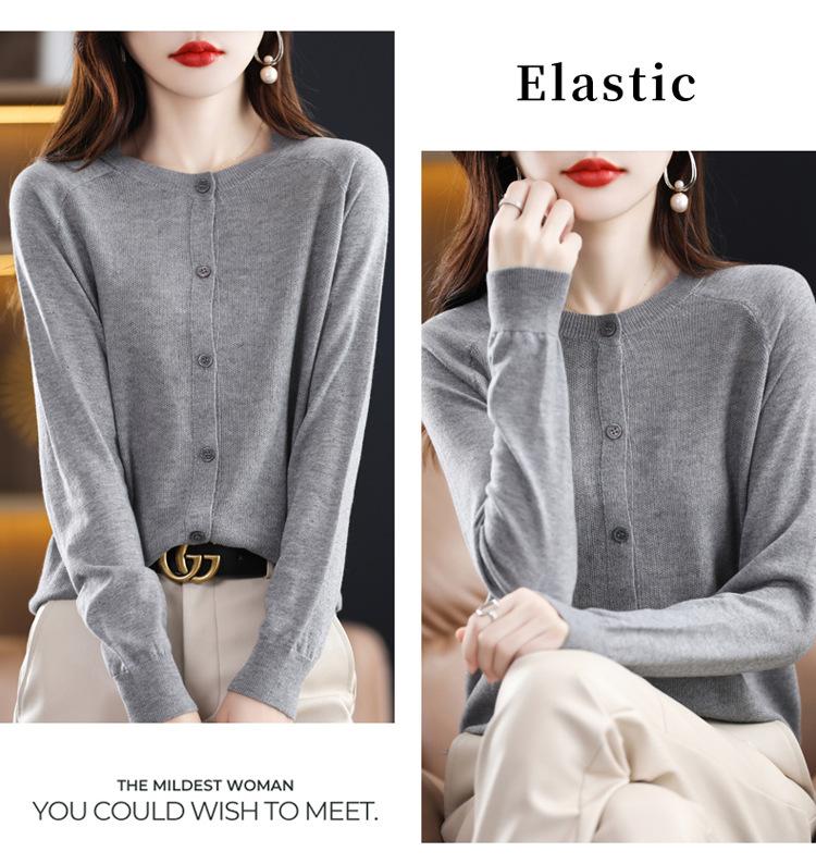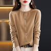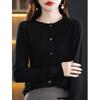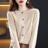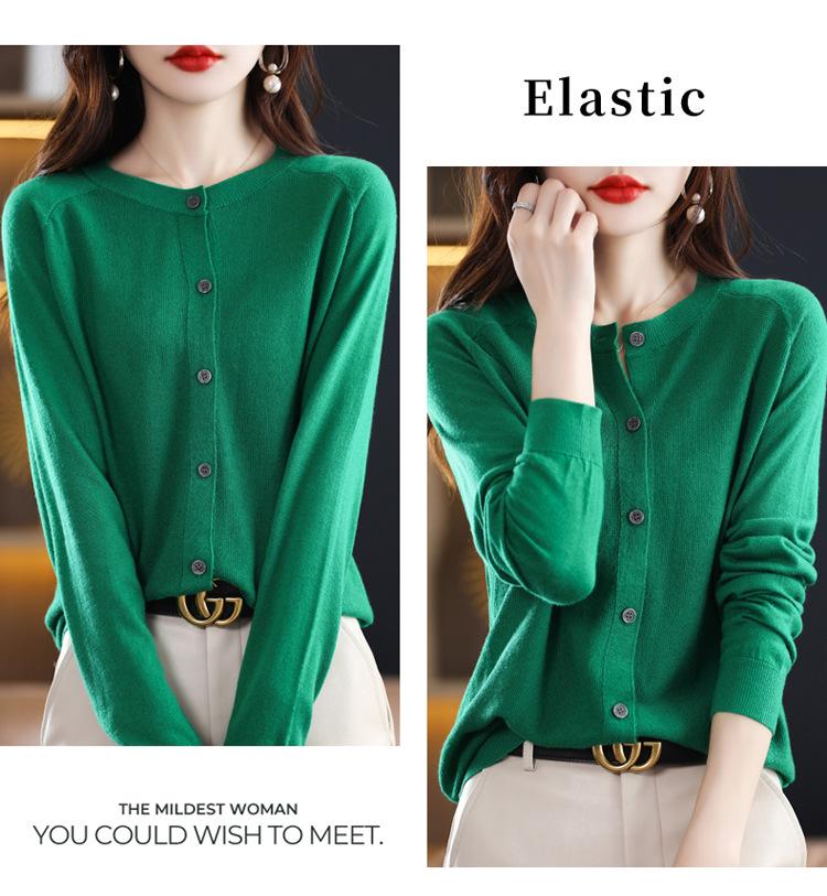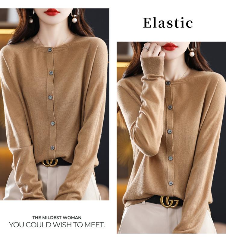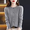 Suéter de lana confeccionado de primera línea, cárdigan de punto para mujer, chaqueta de suéter delgada, otoño e invierno, parte inferior de cuello redondo, manga larga, parte superior suelta