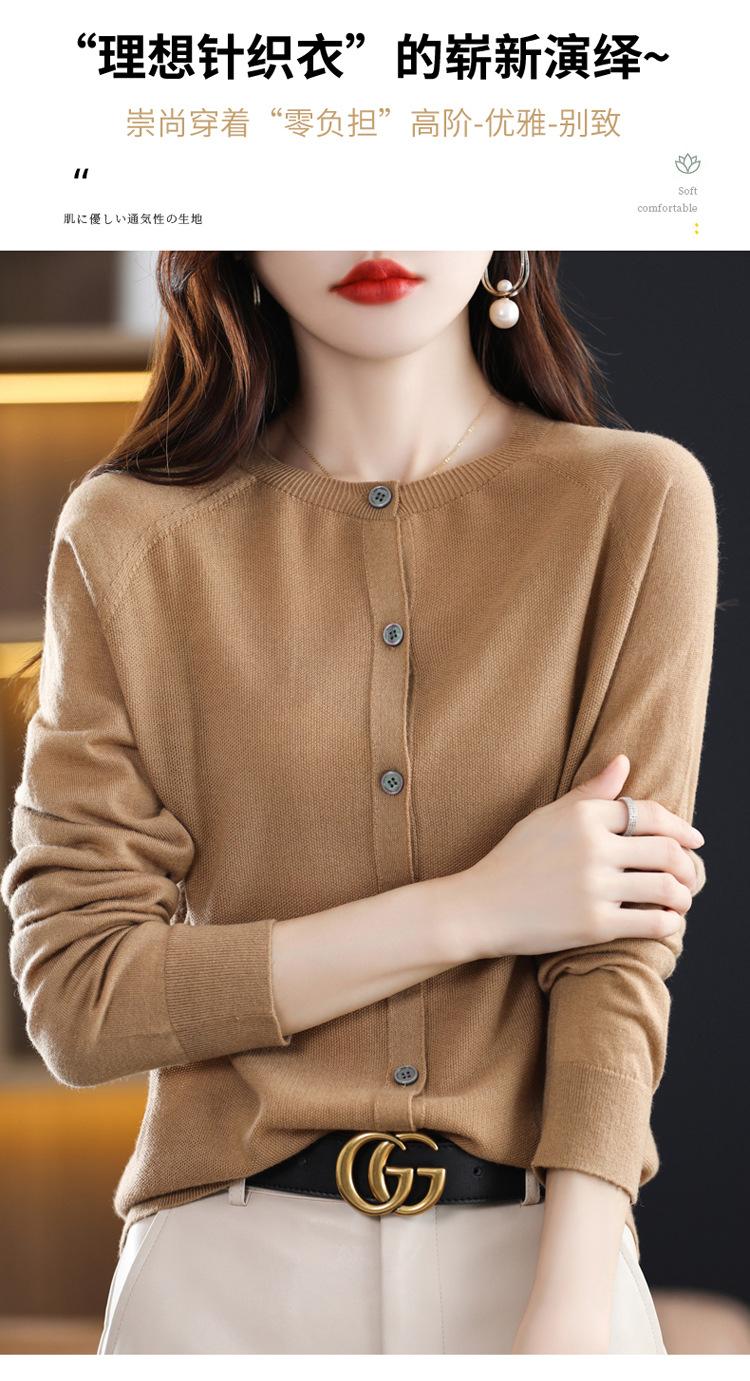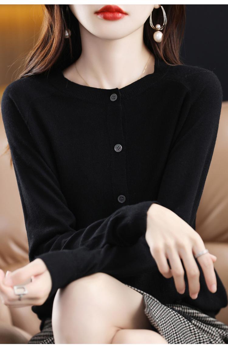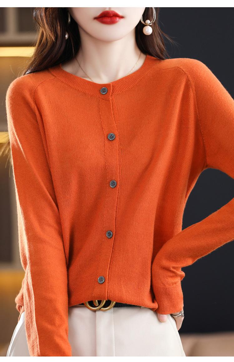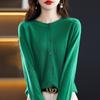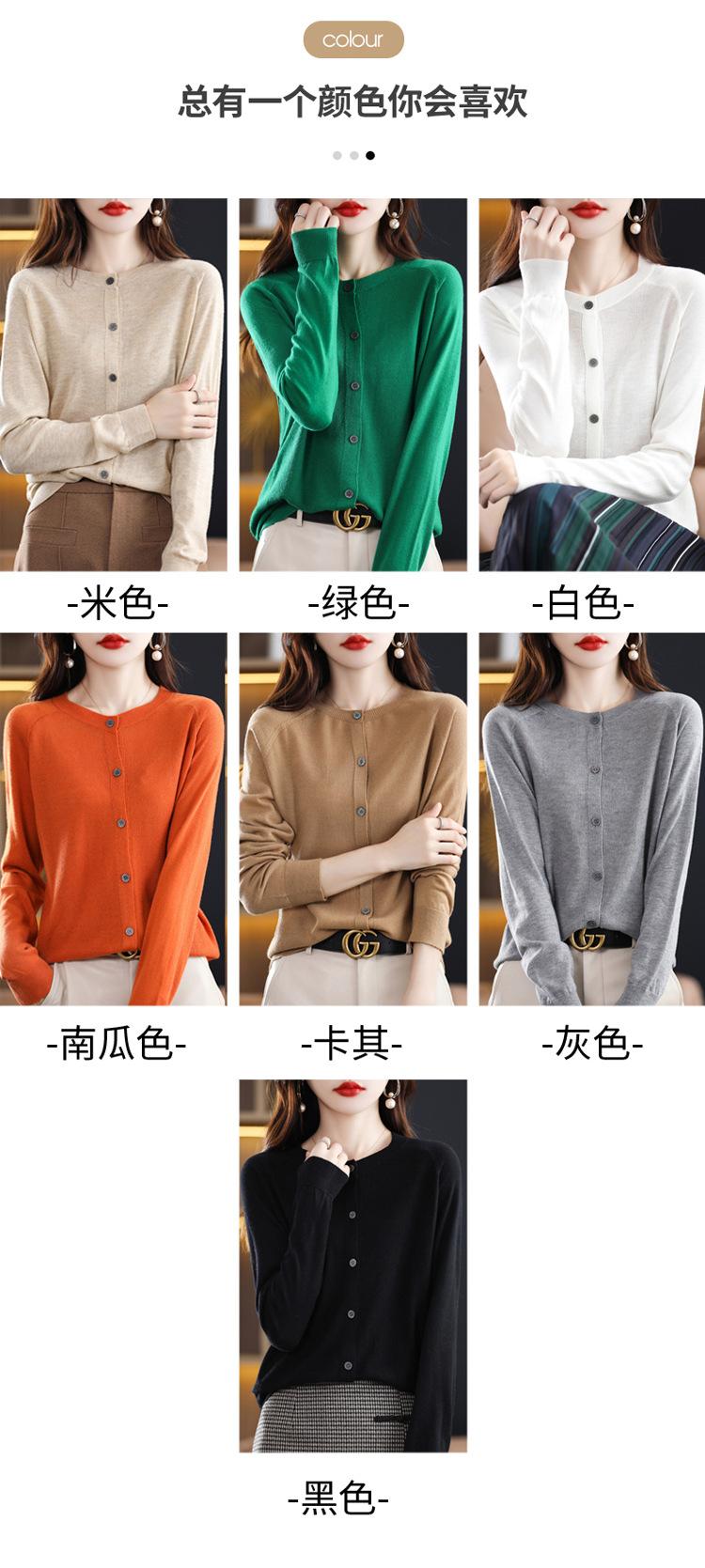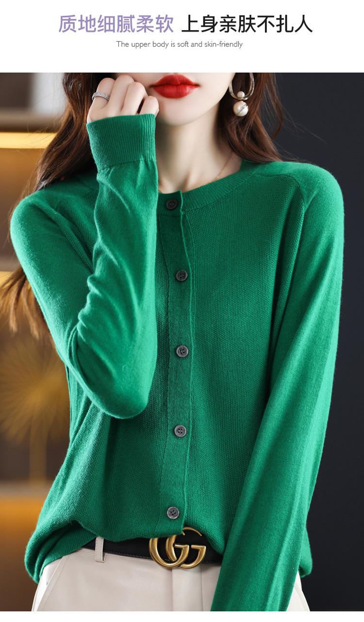 Suéter de lana confeccionado de primera línea, cárdigan de punto para mujer, chaqueta de suéter delgada, otoño e invierno, parte inferior de cuello redondo, manga larga, parte superior suelta