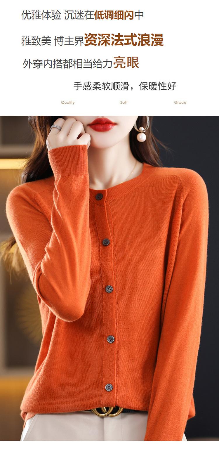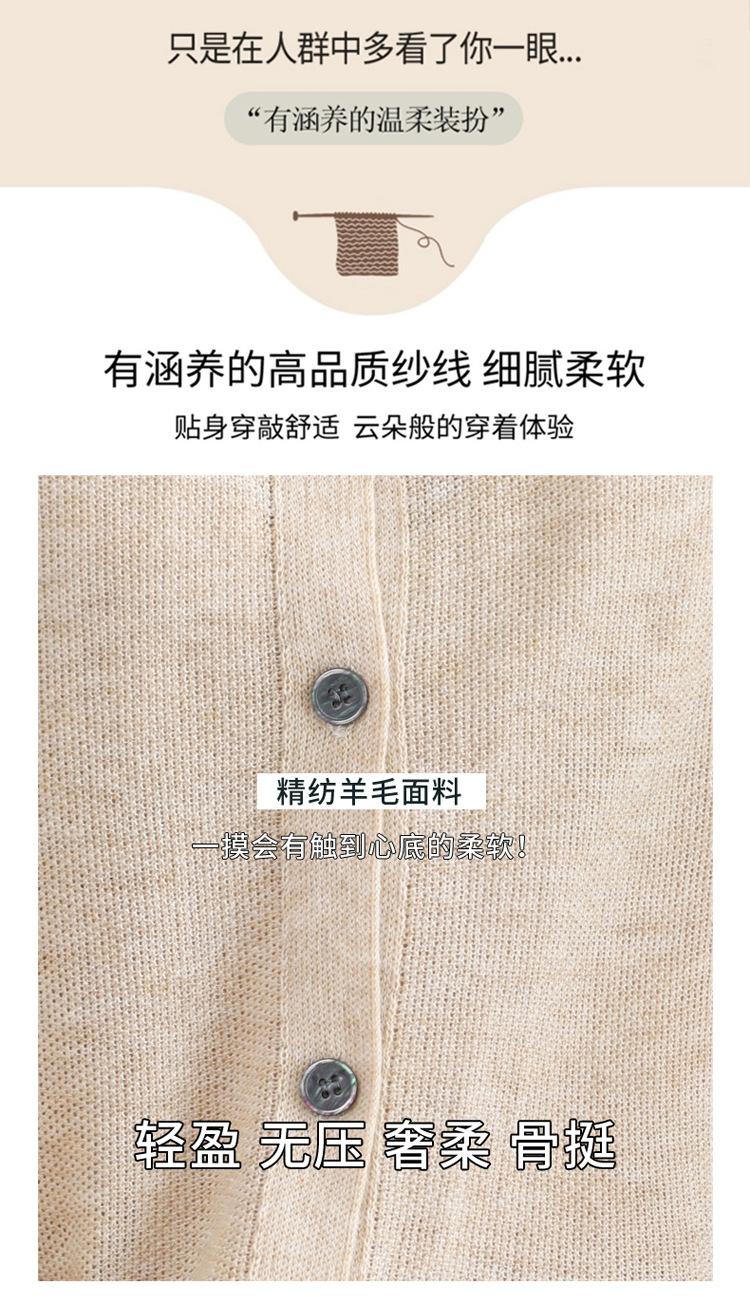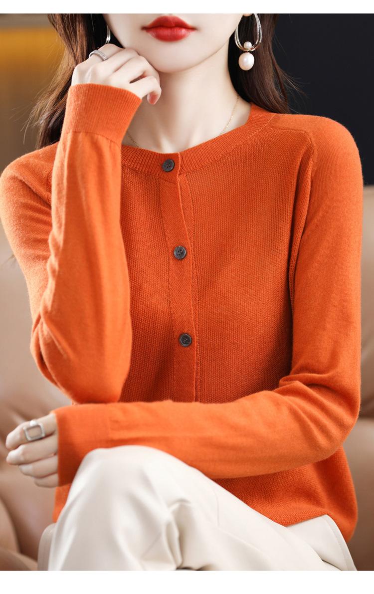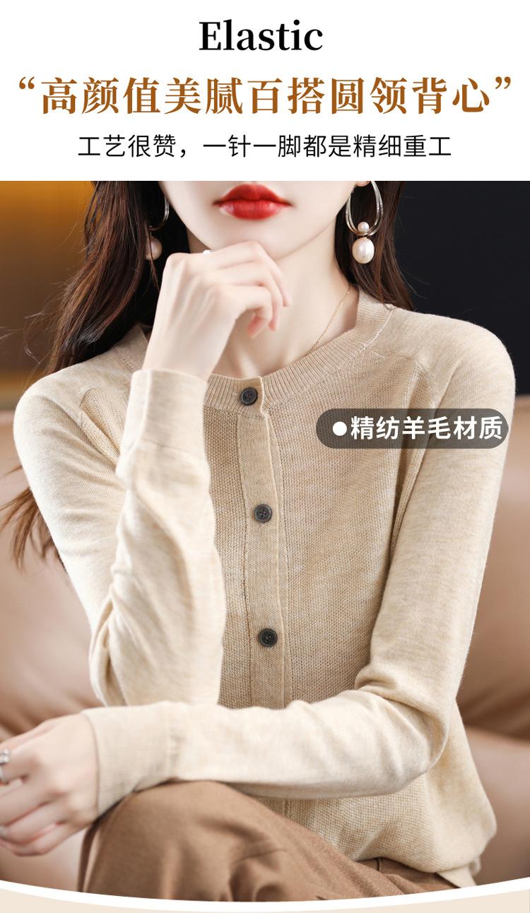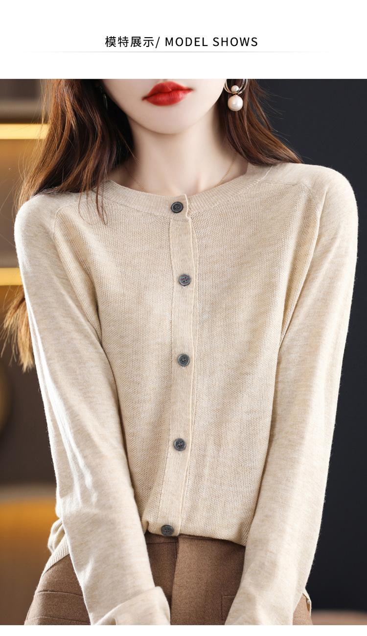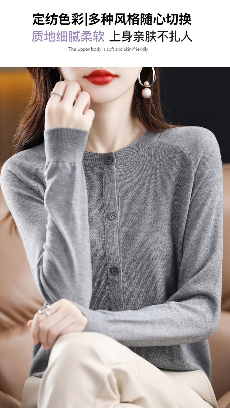 Suéter de lana confeccionado de primera línea, cárdigan de punto para mujer, chaqueta de suéter delgada, otoño e invierno, parte inferior de cuello redondo, manga larga, parte superior suelta