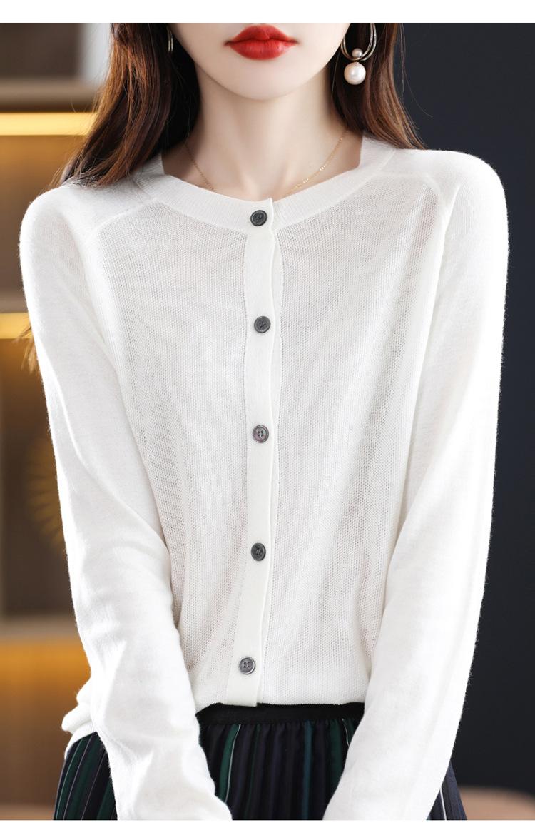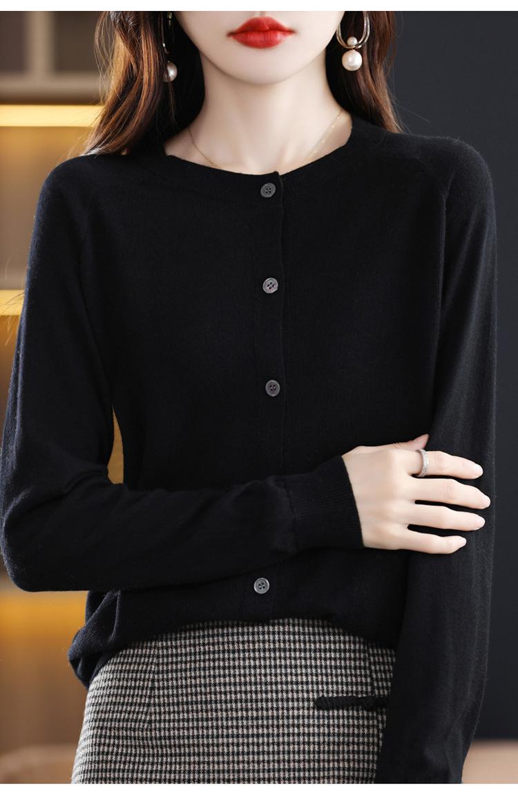 Cárdigan de lana de imitación fina para mujer, suéter fino, prenda exterior, cárdigan de punto con cuello redondo, abrigo de primavera y otoño, nuevo