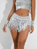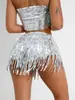 699 # Falda de Lentejuelas Falda con Flecos Falda de Baile Latino Ropa de Actuación Escénica Ds Ropa de Actuación de Bar con Shorts de Lentejuelas y Flecos para Mujer