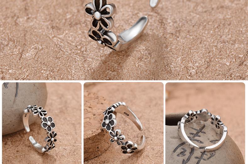 Estilo Coreano Nuevo Estilo Temperamento Personalizado Flor Anillo de Plata Tailandesa para Mujer Moda Creativa Retro Diseño Abierto Anillo Joyería