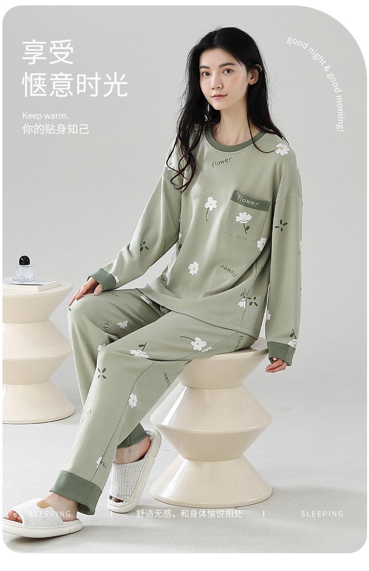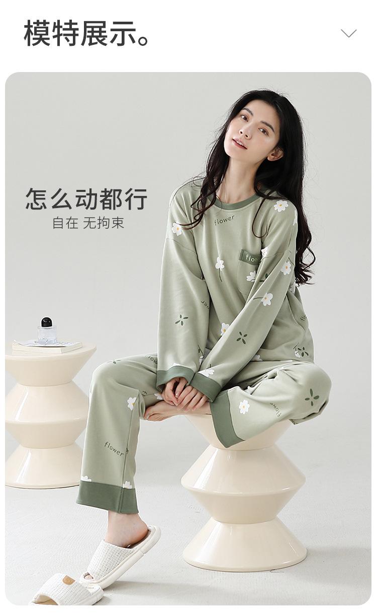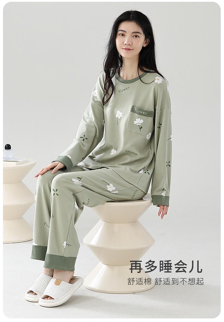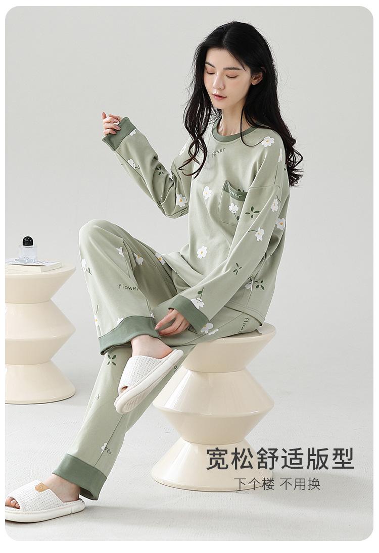 Pijamas de mujer de primavera y otoño, jersey de algodón de manga larga, holgado, de talla grande, nuevo traje de algodón para mujer para otoño e invierno, ropa de casa