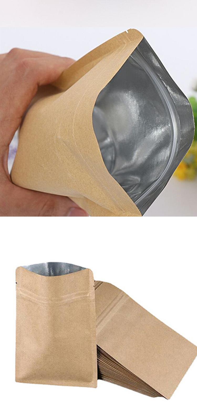 Bolsa de té de papel kraft aluminizado en stock bolsa de harina personalizada bolsa de medicina tradicional china bolsa sellada fondo plano bolsa de papel de aluminio personalizada