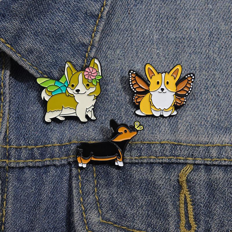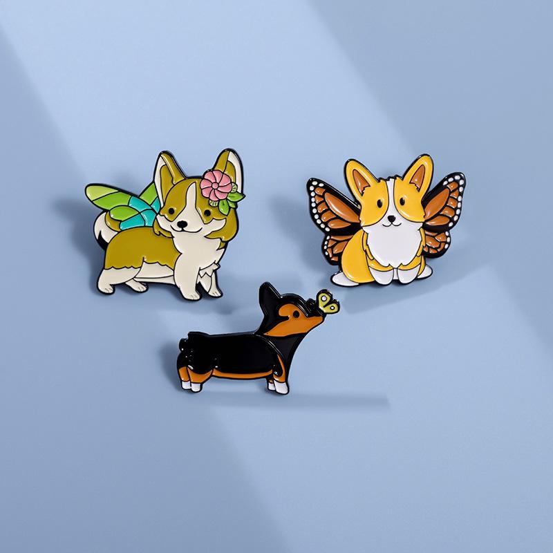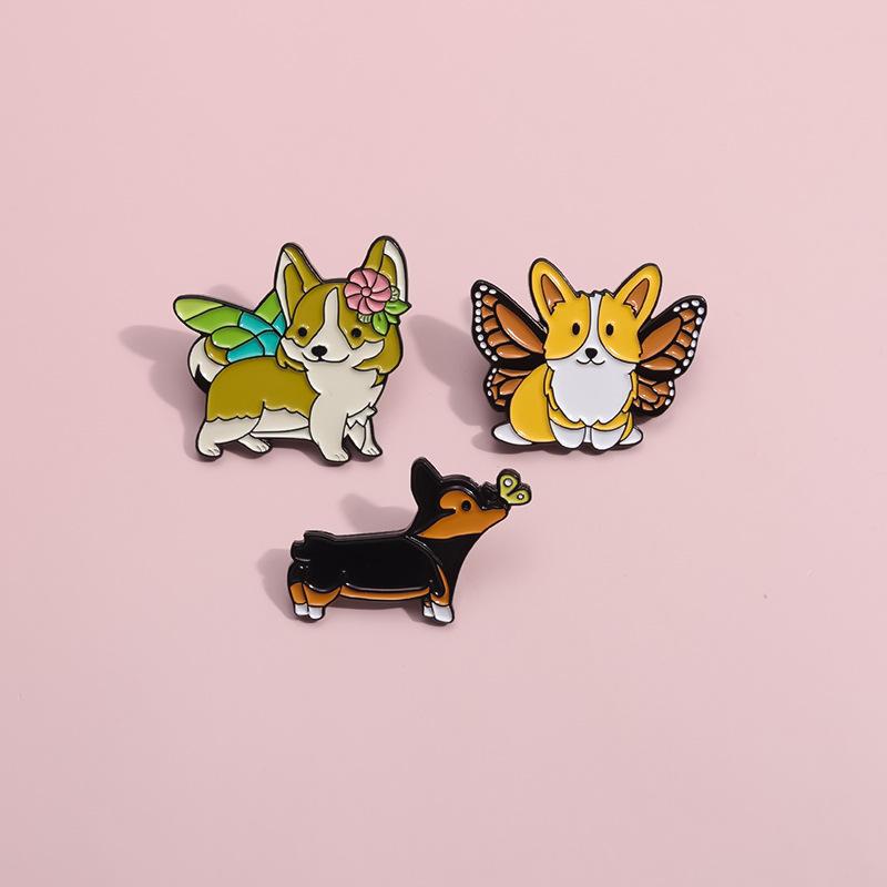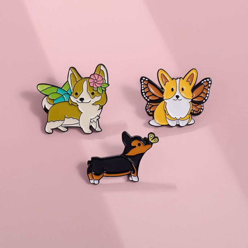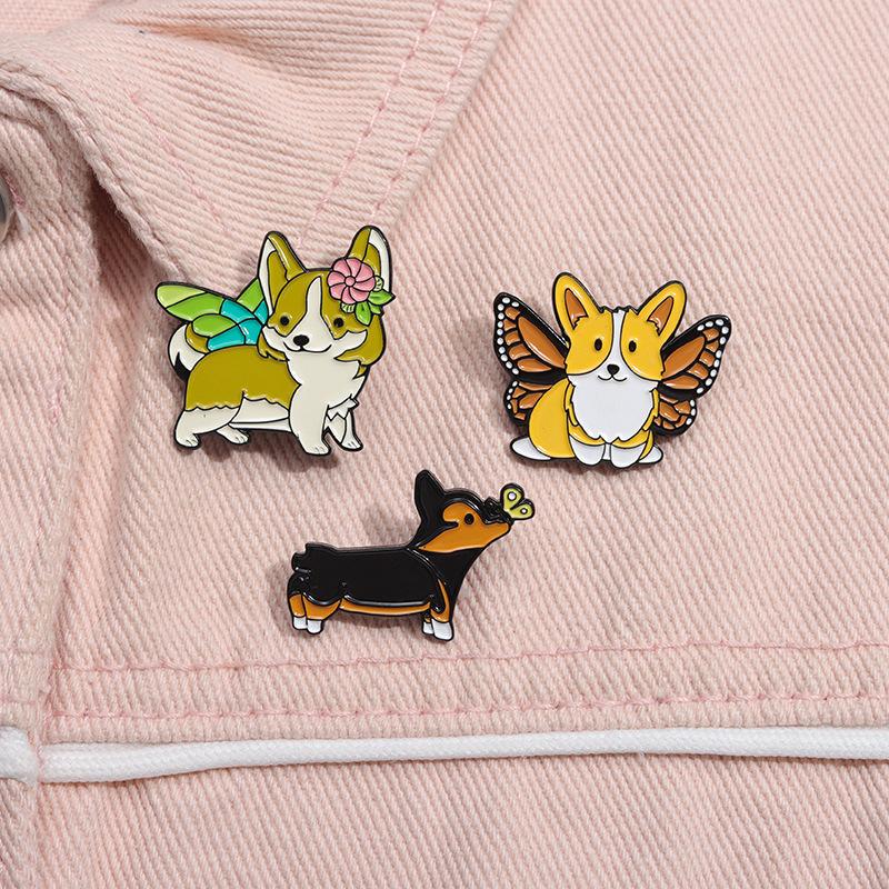 Insignia de aleación de animales de dibujos animados transfronterizos, accesorios de ropa, broche decorativo con alas de perro Corgi, alfiler para collar, venta al por mayor