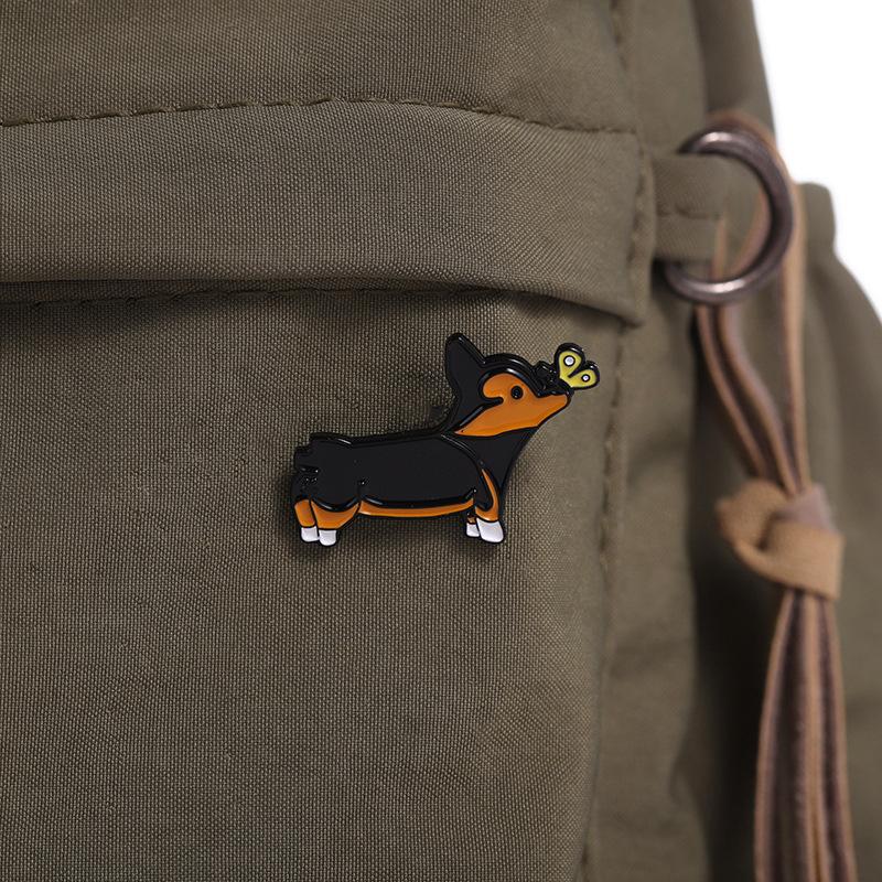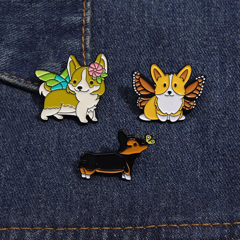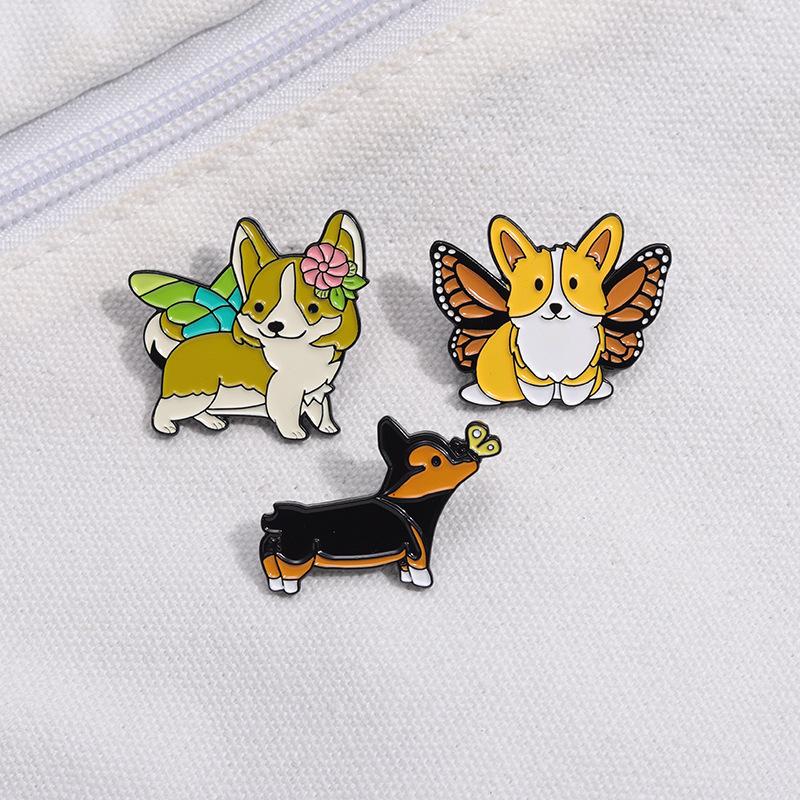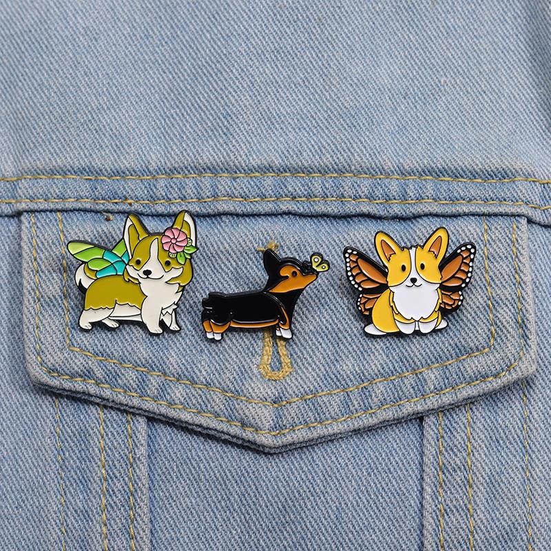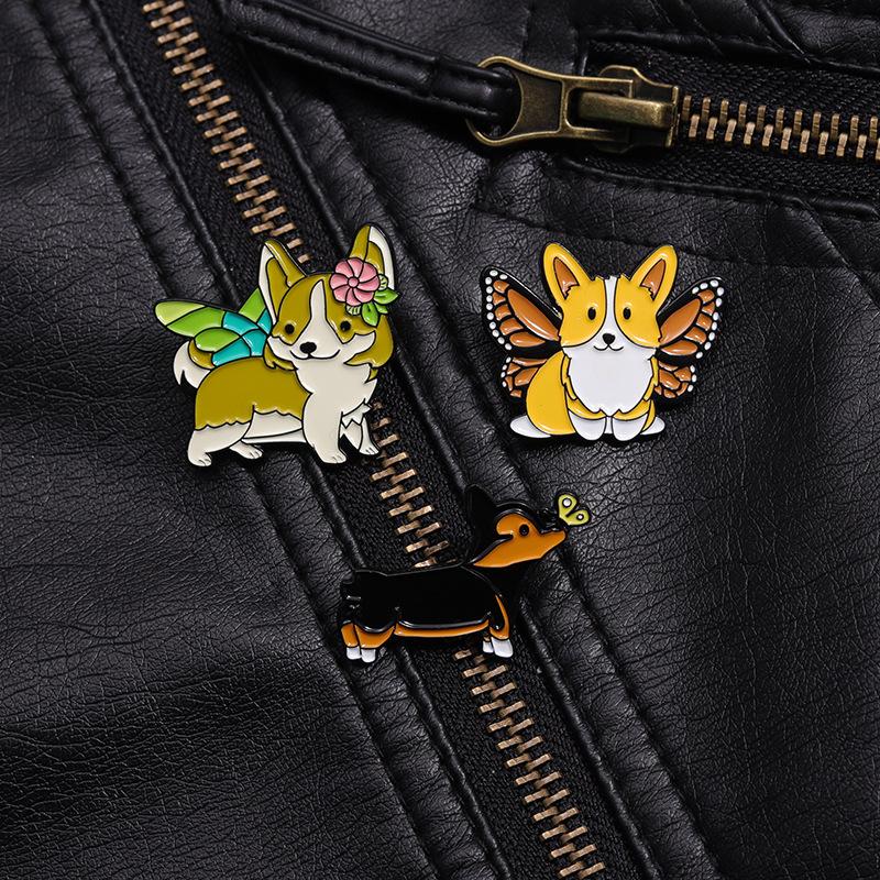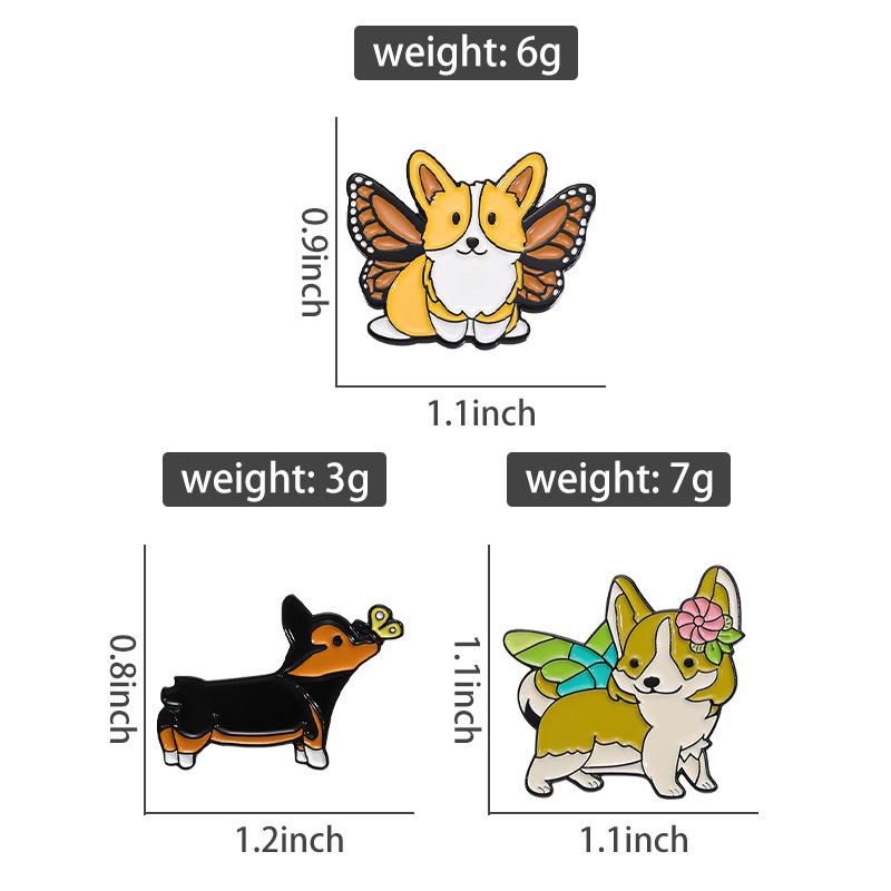 Insignia de aleación de animales de dibujos animados transfronterizos, accesorios de ropa, broche decorativo con alas de perro Corgi, alfiler para collar, venta al por mayor