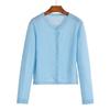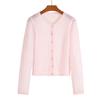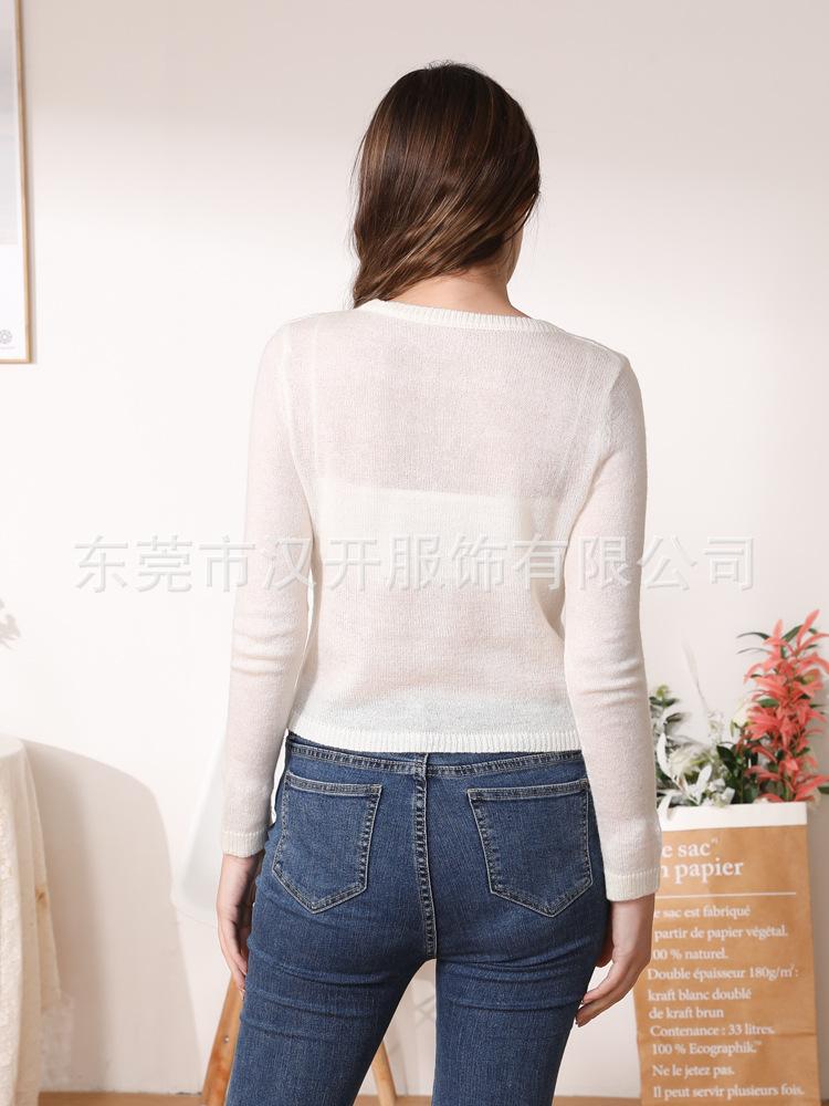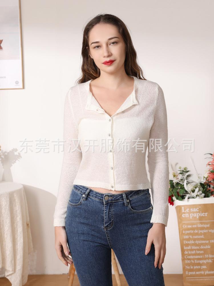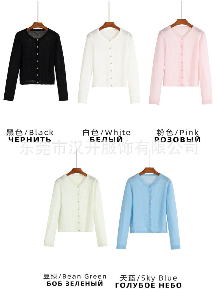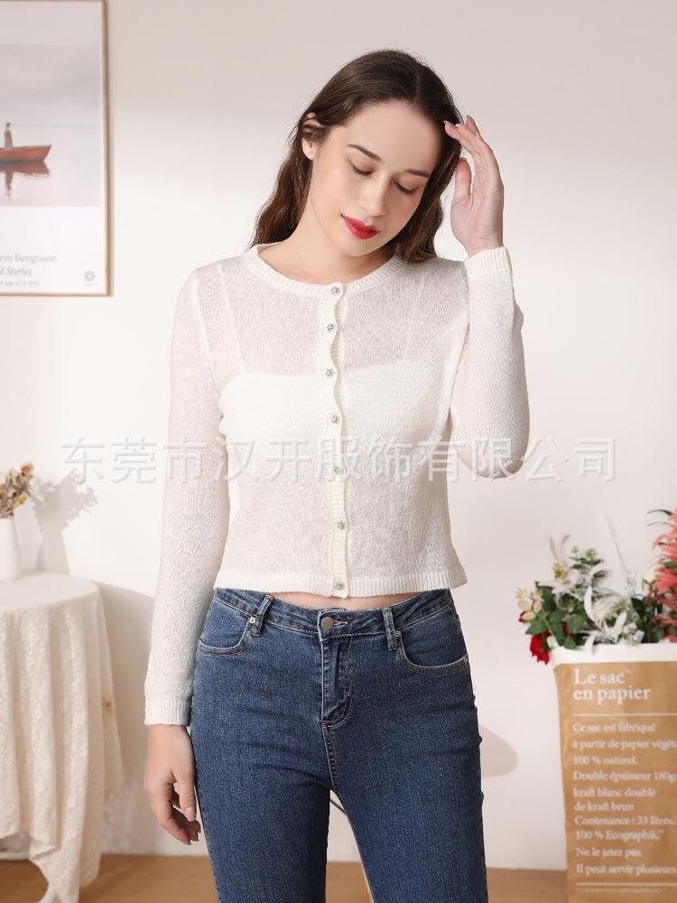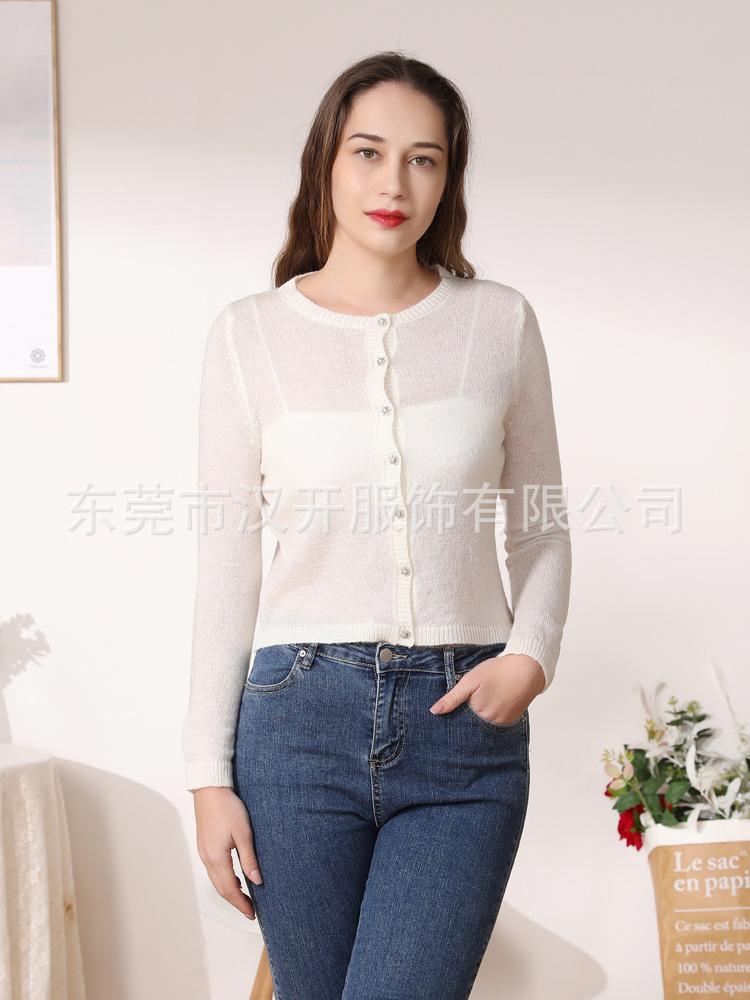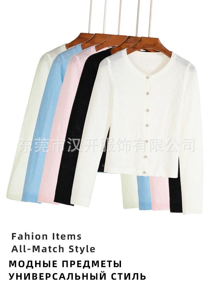 Suéter de mezcla de lana de alta calidad con protección solar y aire acondicionado, cárdigan de punto para mujer, cuello redondo, abrigo pequeño fino de verano