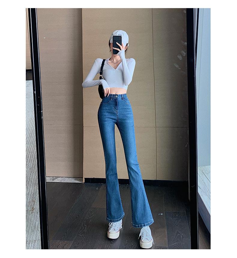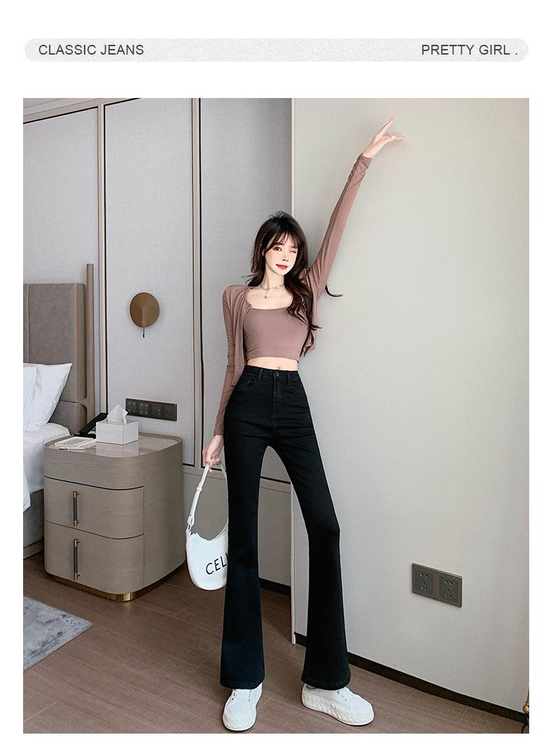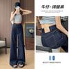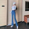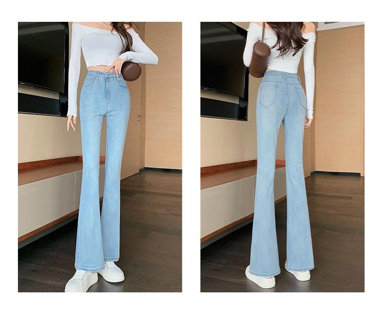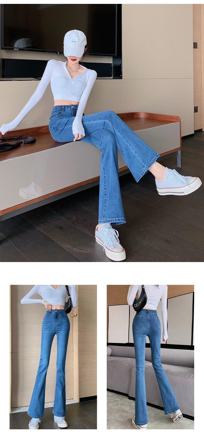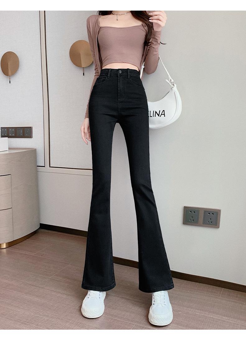 Pantalones acampanados de mezclilla retro estilo Hong Kong para mujer 2023 Otoño Nuevo Elásticos Adelgazantes Look Pantalones de pierna ancha Cintura alta Ligeramente acampanados