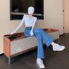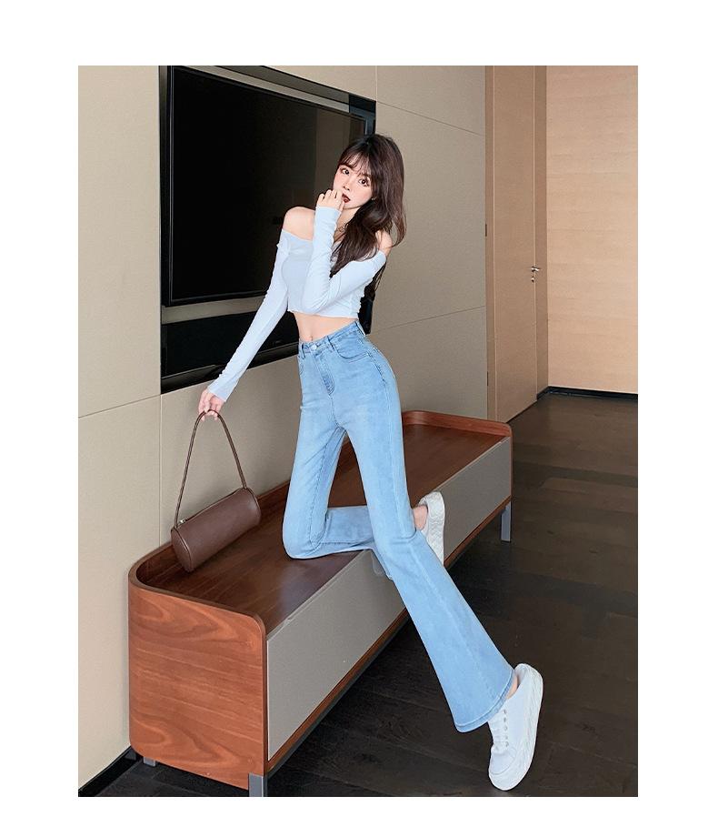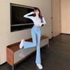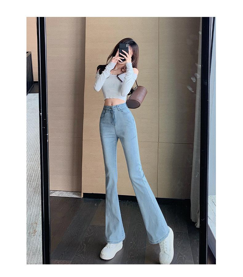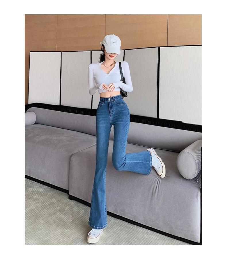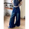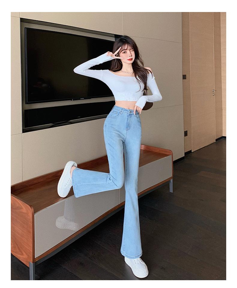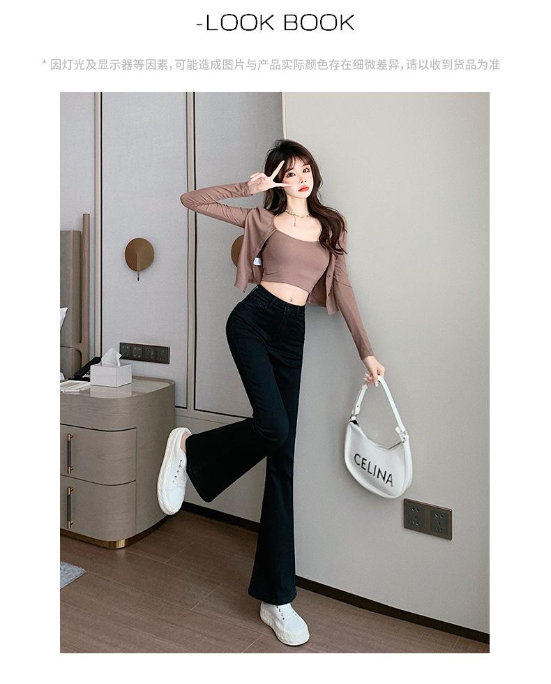 Pantalones acampanados de mezclilla retro estilo Hong Kong para mujer 2023 Otoño Nuevo Elásticos Adelgazantes Look Pantalones de pierna ancha Cintura alta Ligeramente acampanados