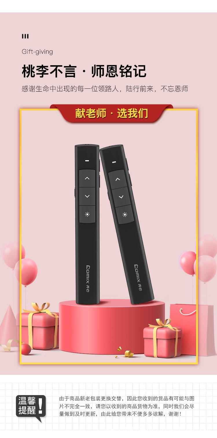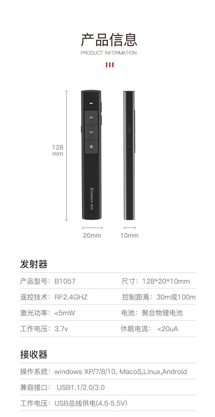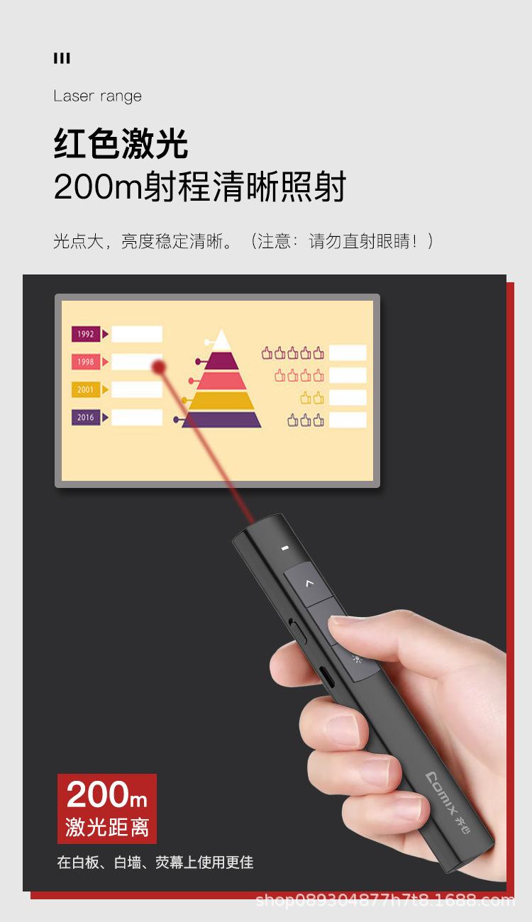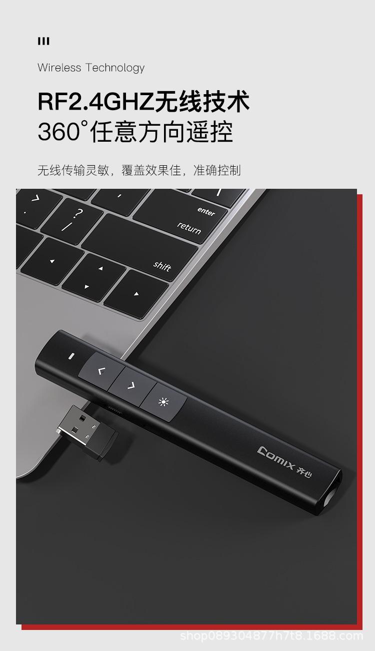 Lápiz láser Comix B1057 con carga de luz roja para presentaciones (PPT), color negro