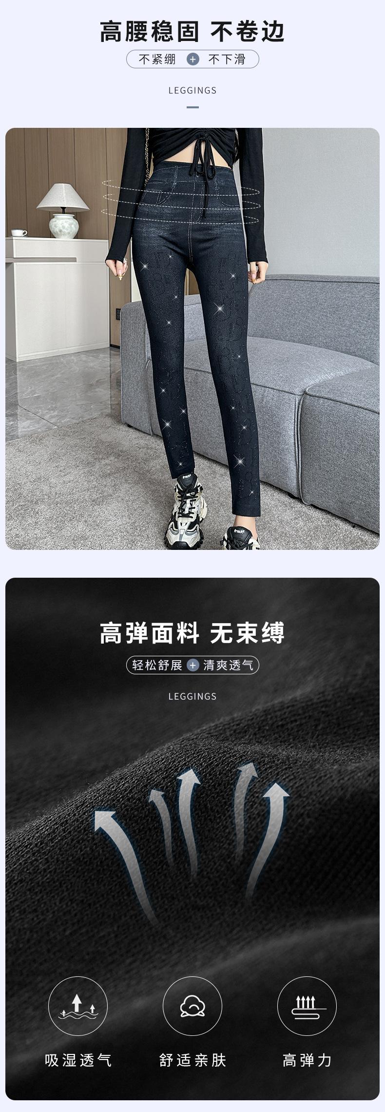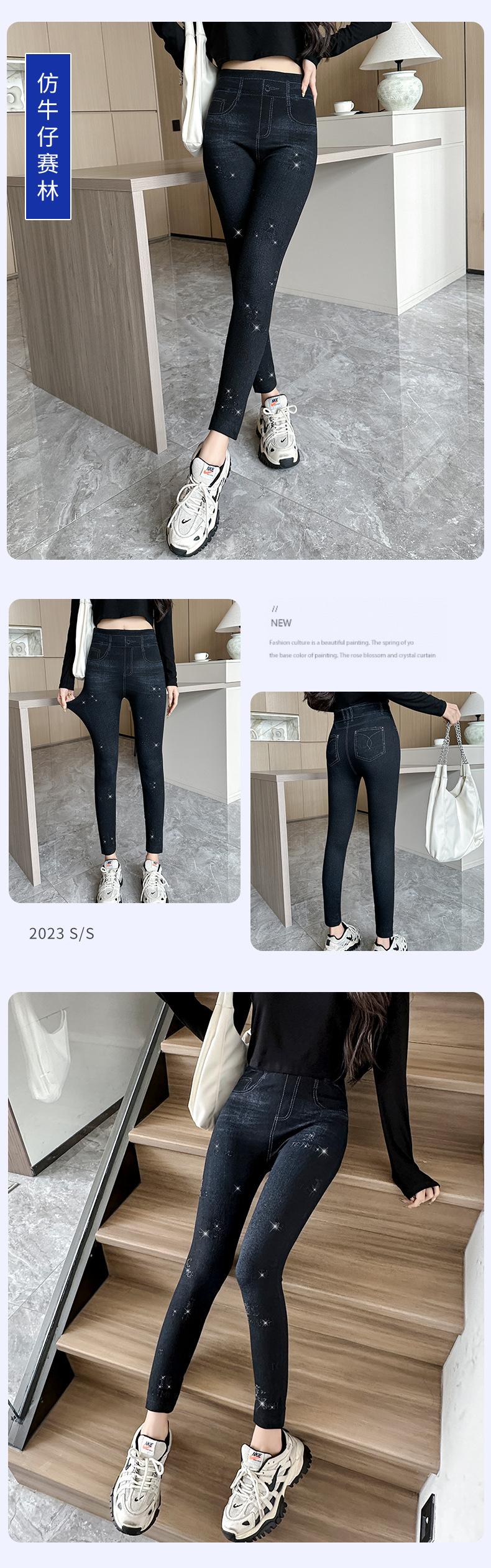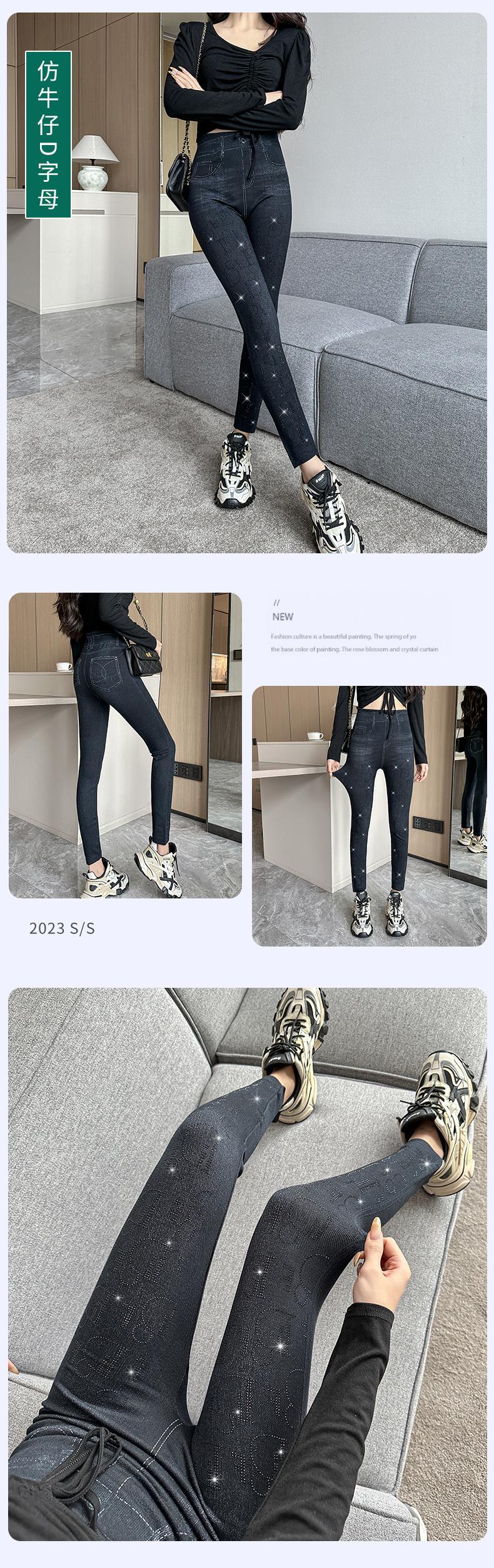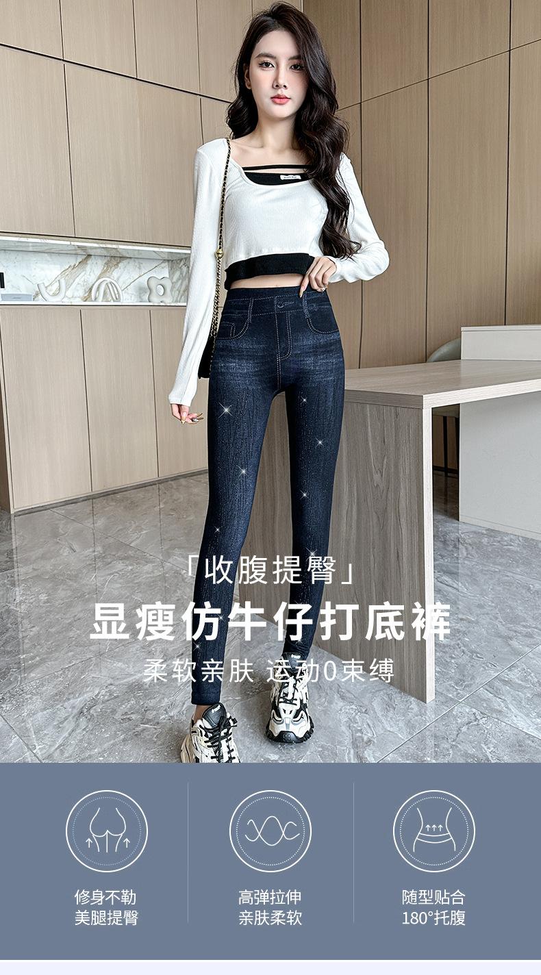Otoño 2025 Nuevo Delgado Cintura Alta Adelgazante Imitación Denim Ropa Exterior Leggings Pantalones Lápiz Leggings Modales