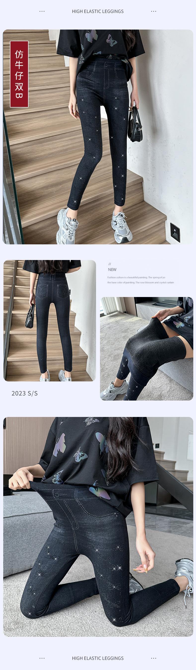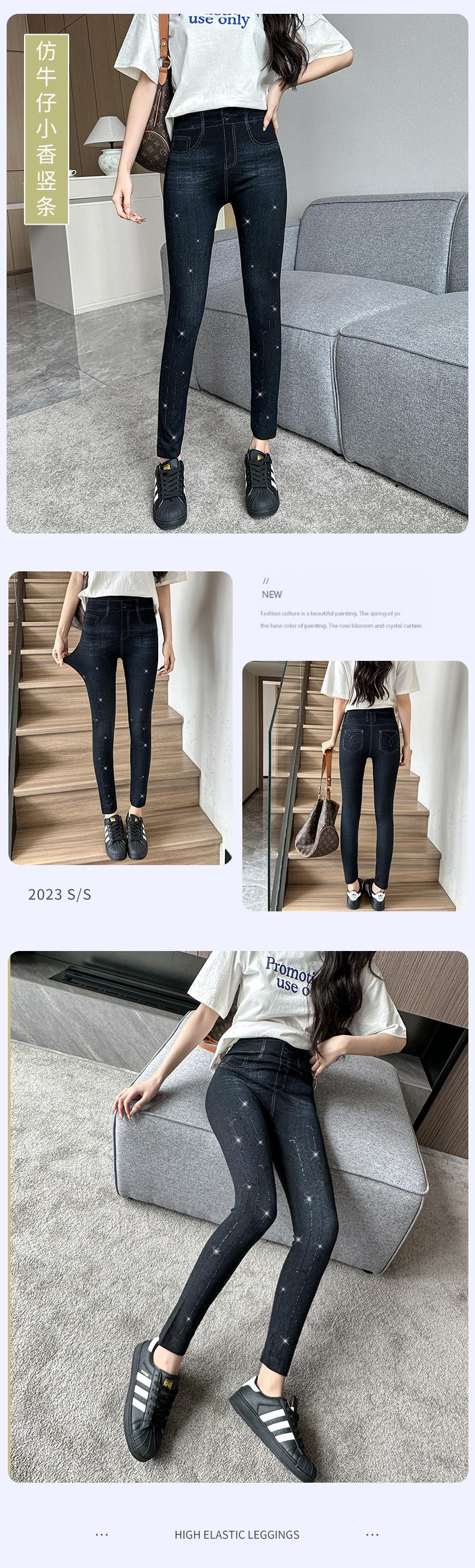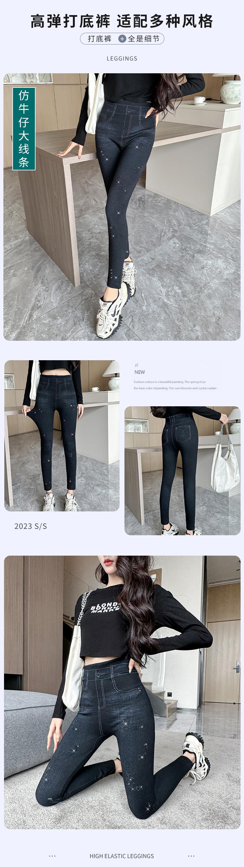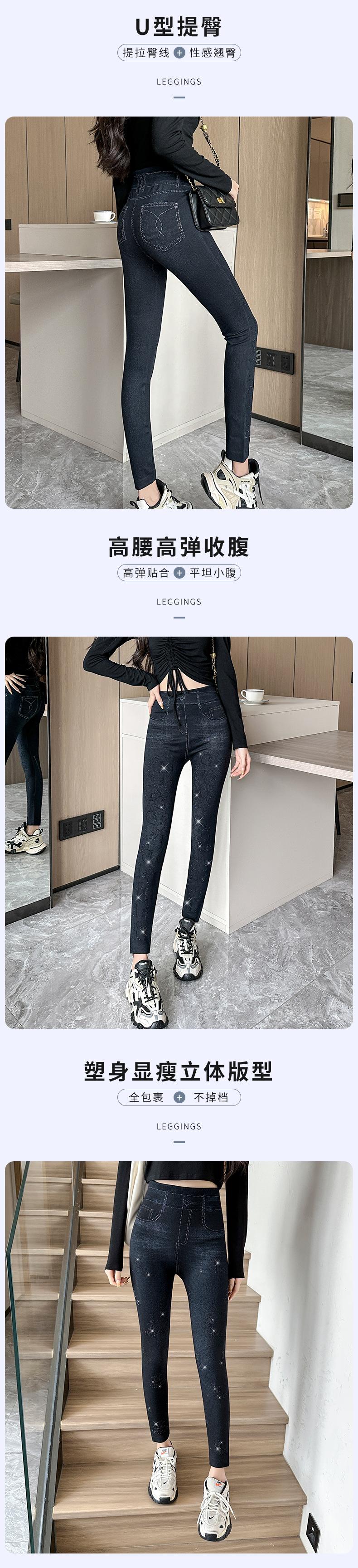 Otoño 2025 Nuevo Delgado Cintura Alta Adelgazante Imitación Denim Ropa Exterior Leggings Pantalones Lápiz Leggings Modales