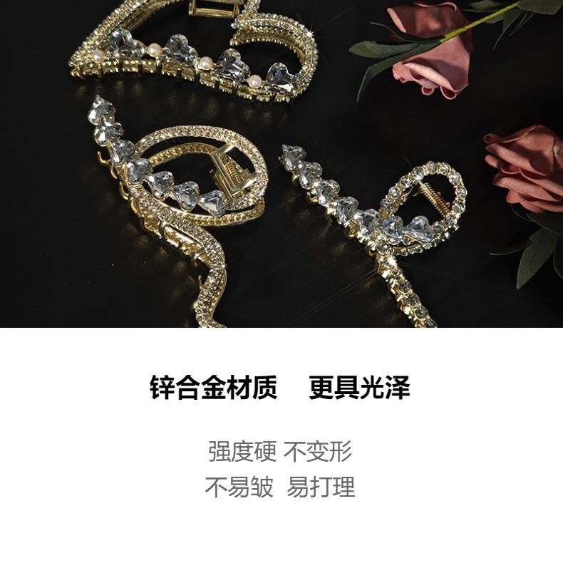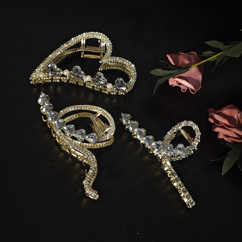 Aleación Amor Pinza Grande de Agarre Abalorios Incrustados Parte Posterior Clip de Tiburón Lujo Ligero Moda Elegante Clip de Tiburón Tocado Mujer