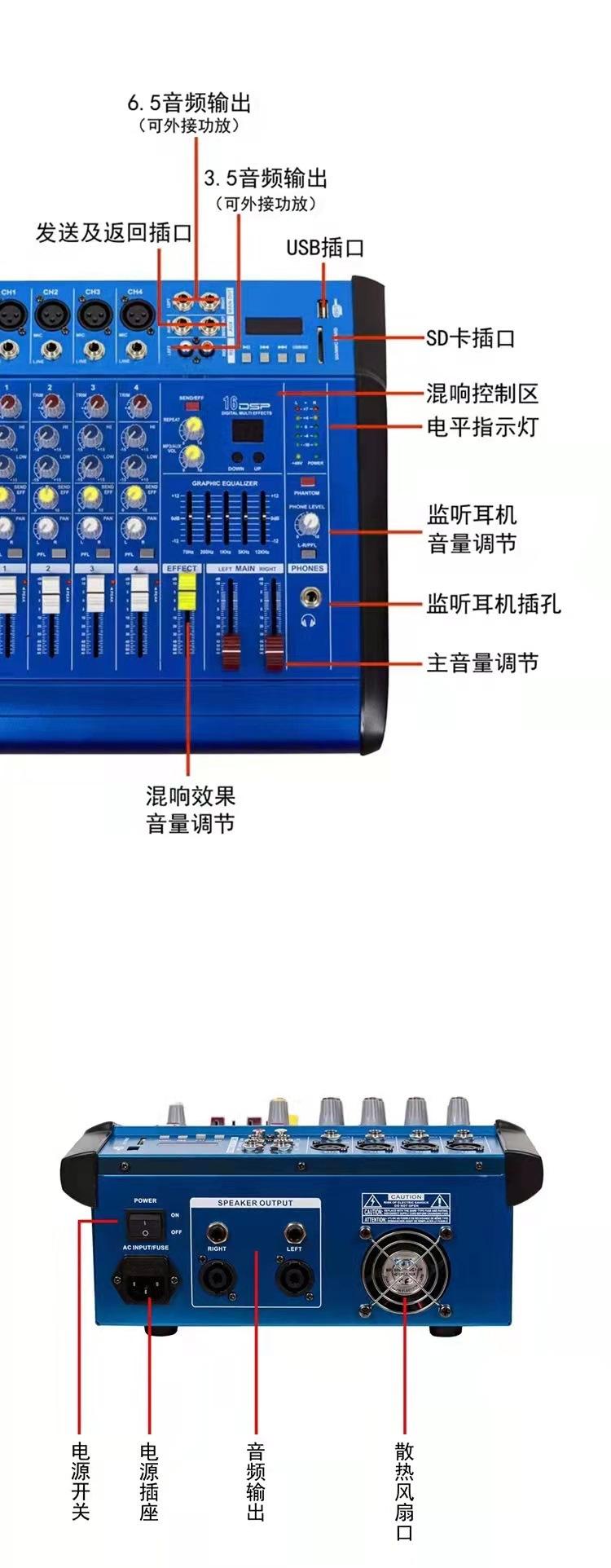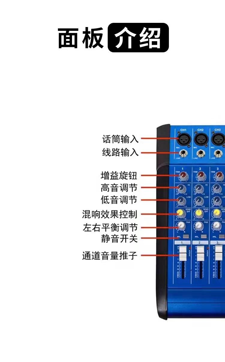 Mezclador con amplificador de potencia, máquina todo en uno con Bluetooth, USB, efecto familiar, KTV, conferencia, boda, actuación, conjunto de sonido